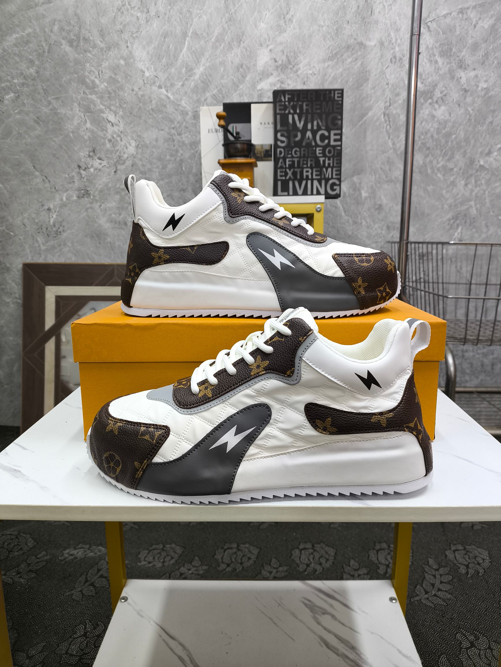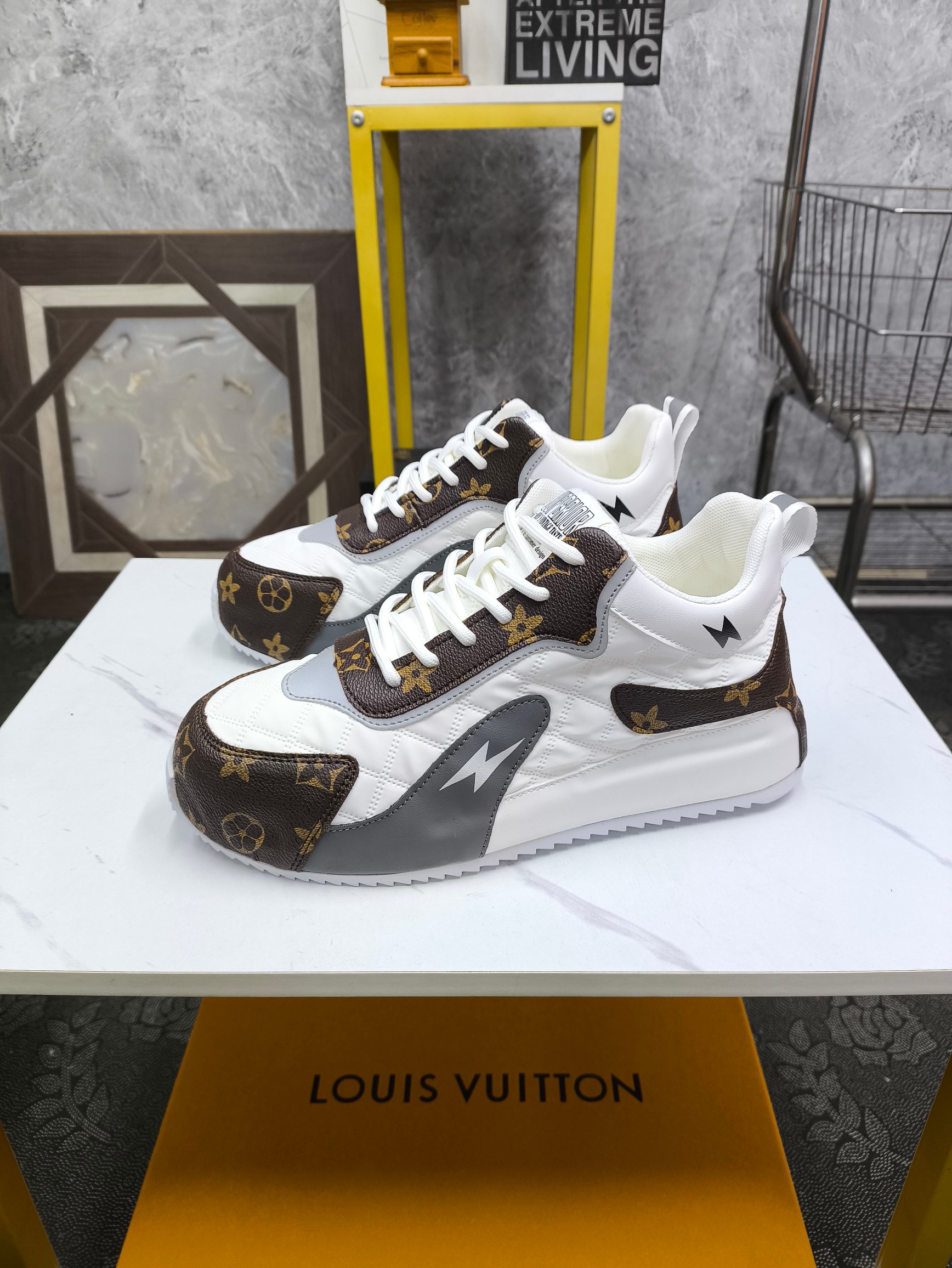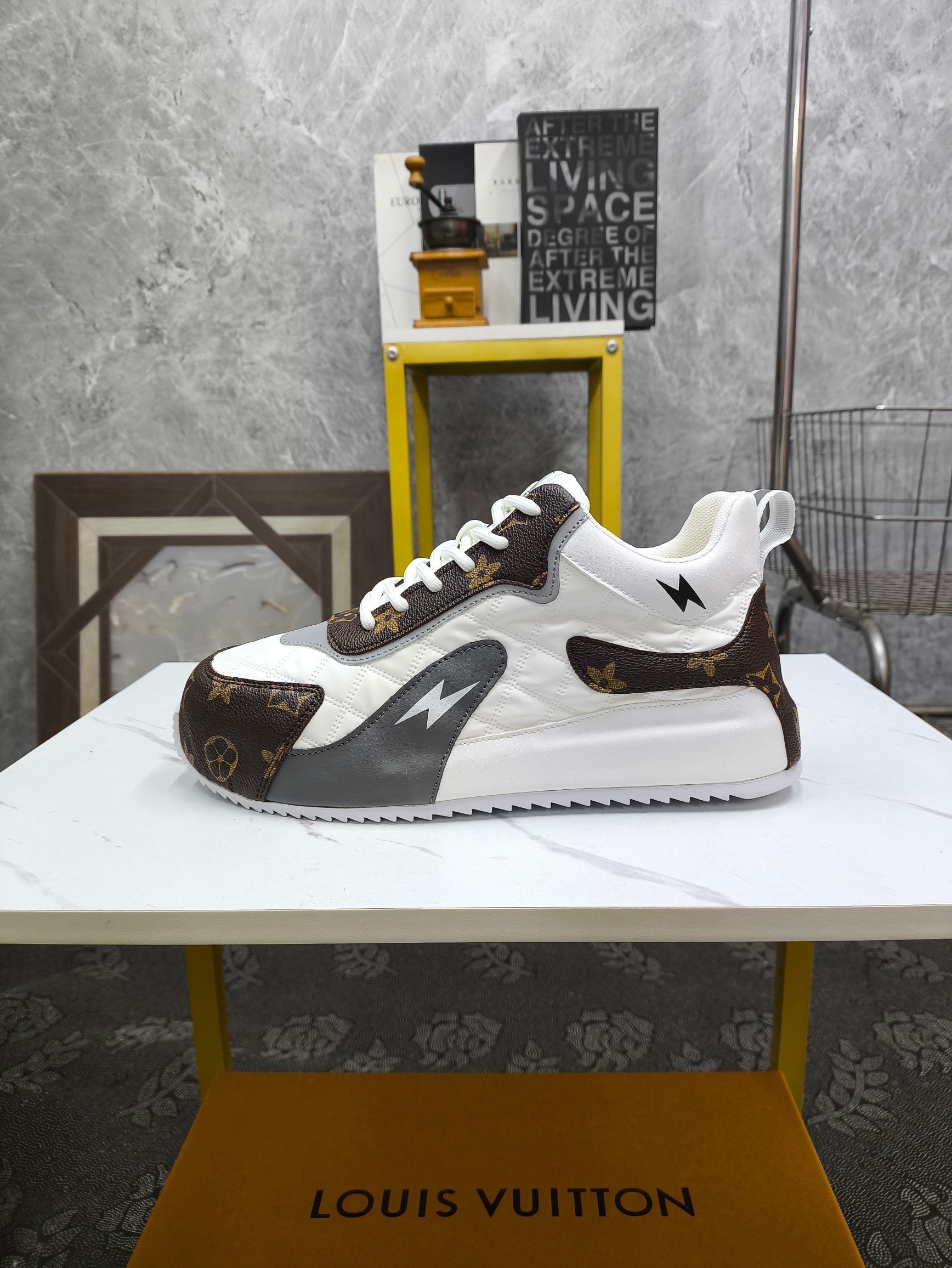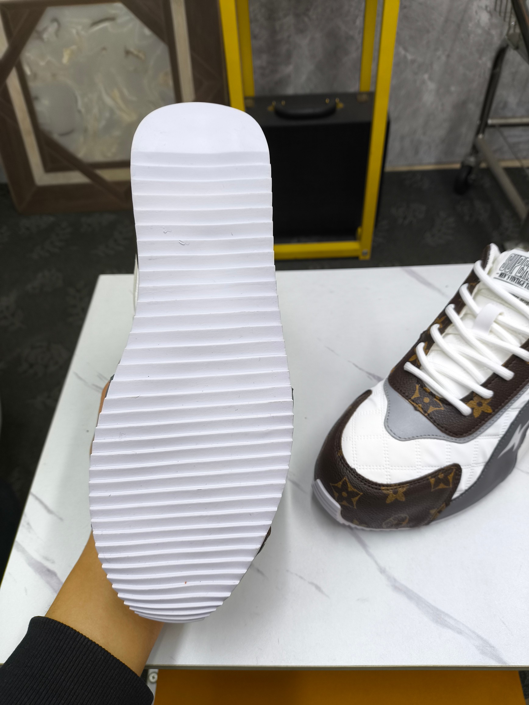 这款鞋子是AAAAA 1:1 质量 (非常棒). 使用了和原版一模一样的材料. 商标部分也保持了和路易威登/Louis Vuitton一样. 图片拍摄是实物鞋子拍摄, 您所收到的实物保证和我们图片一模一样.