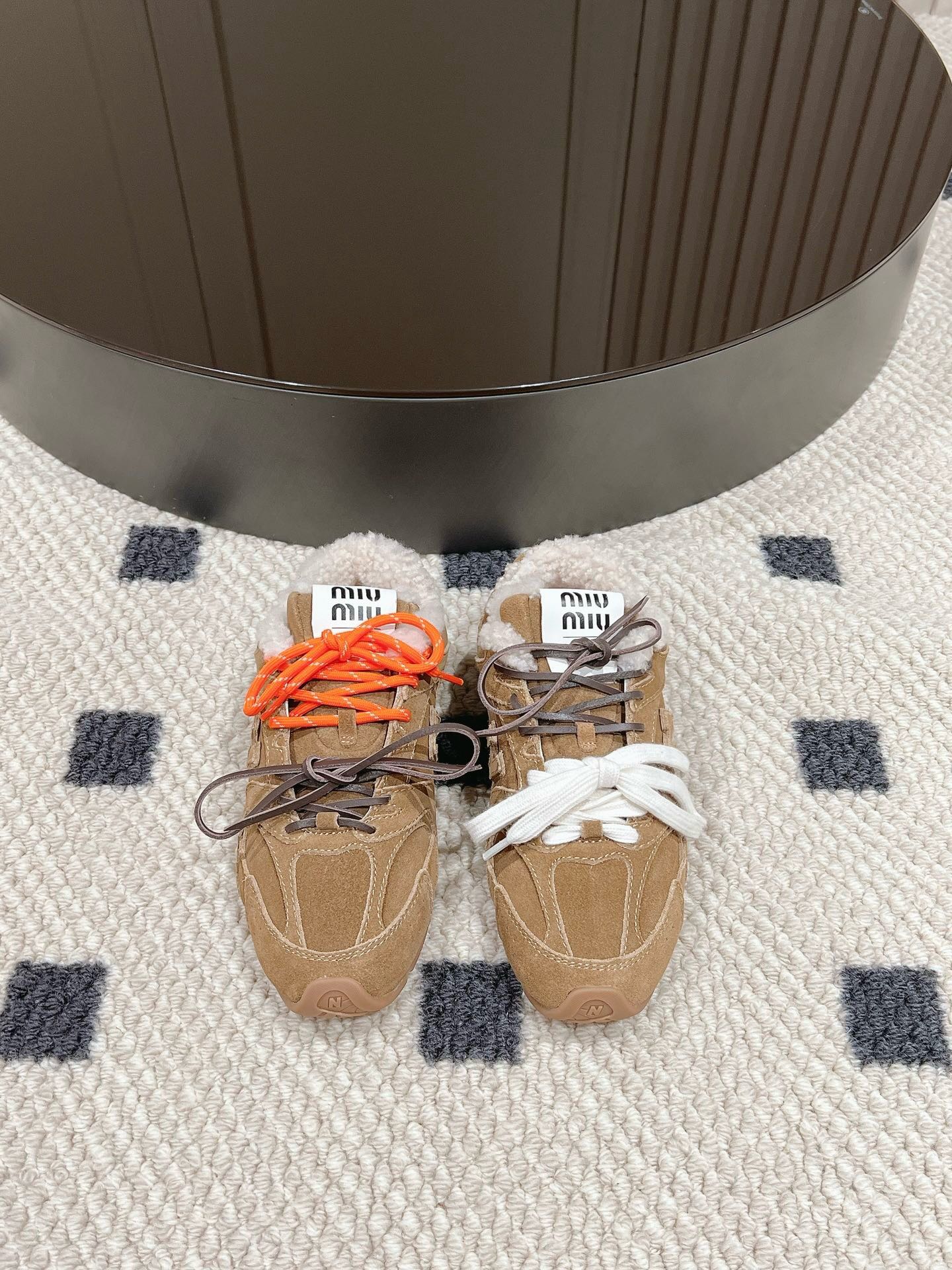 这款鞋子是AAAAA 1:1 质量 (非常棒). 使用了和原版一模一样的材料. 商标部分也保持了和缪缪/Miu Miu一样. 图片拍摄是实物鞋子拍摄, 您所收到的实物保证和我们图片一模一样.