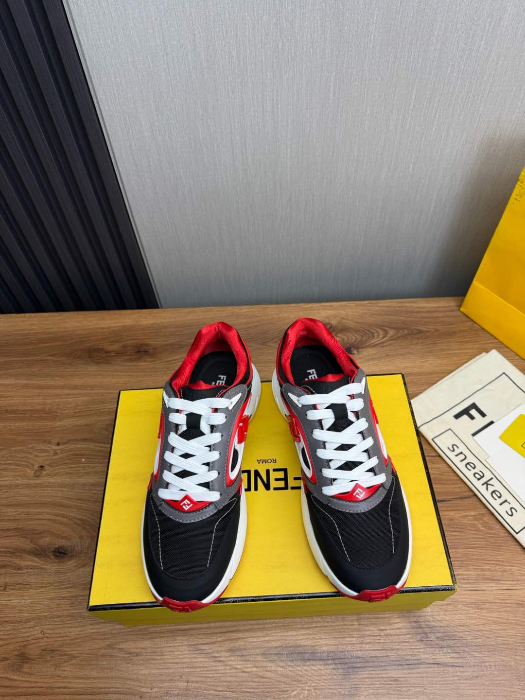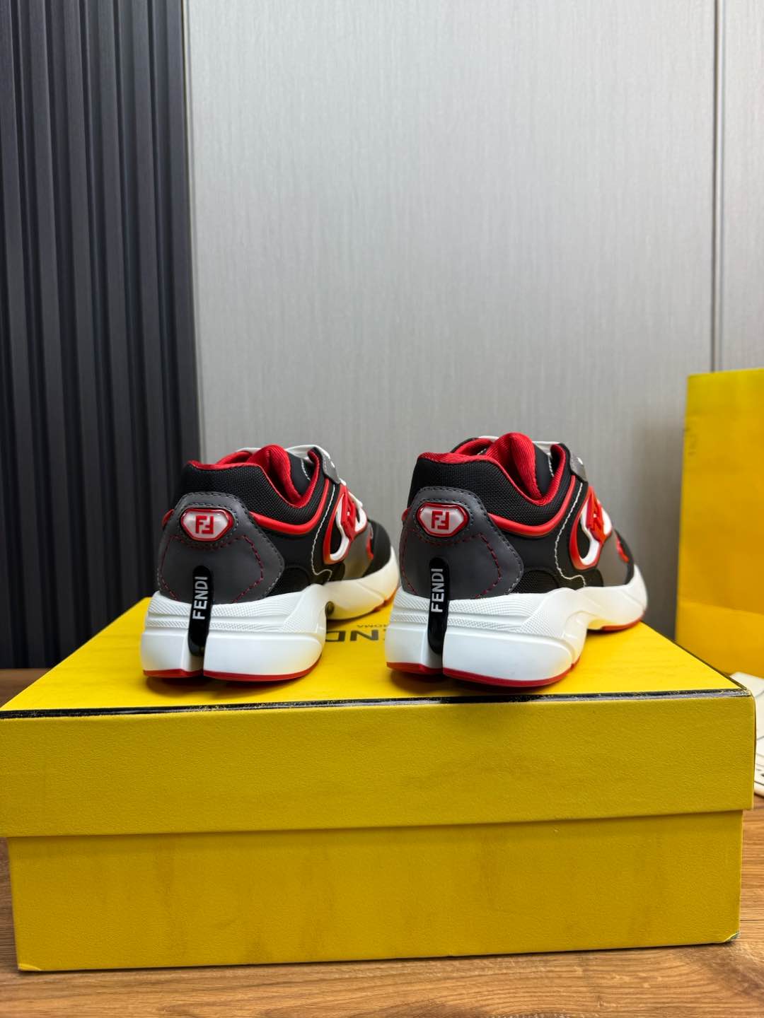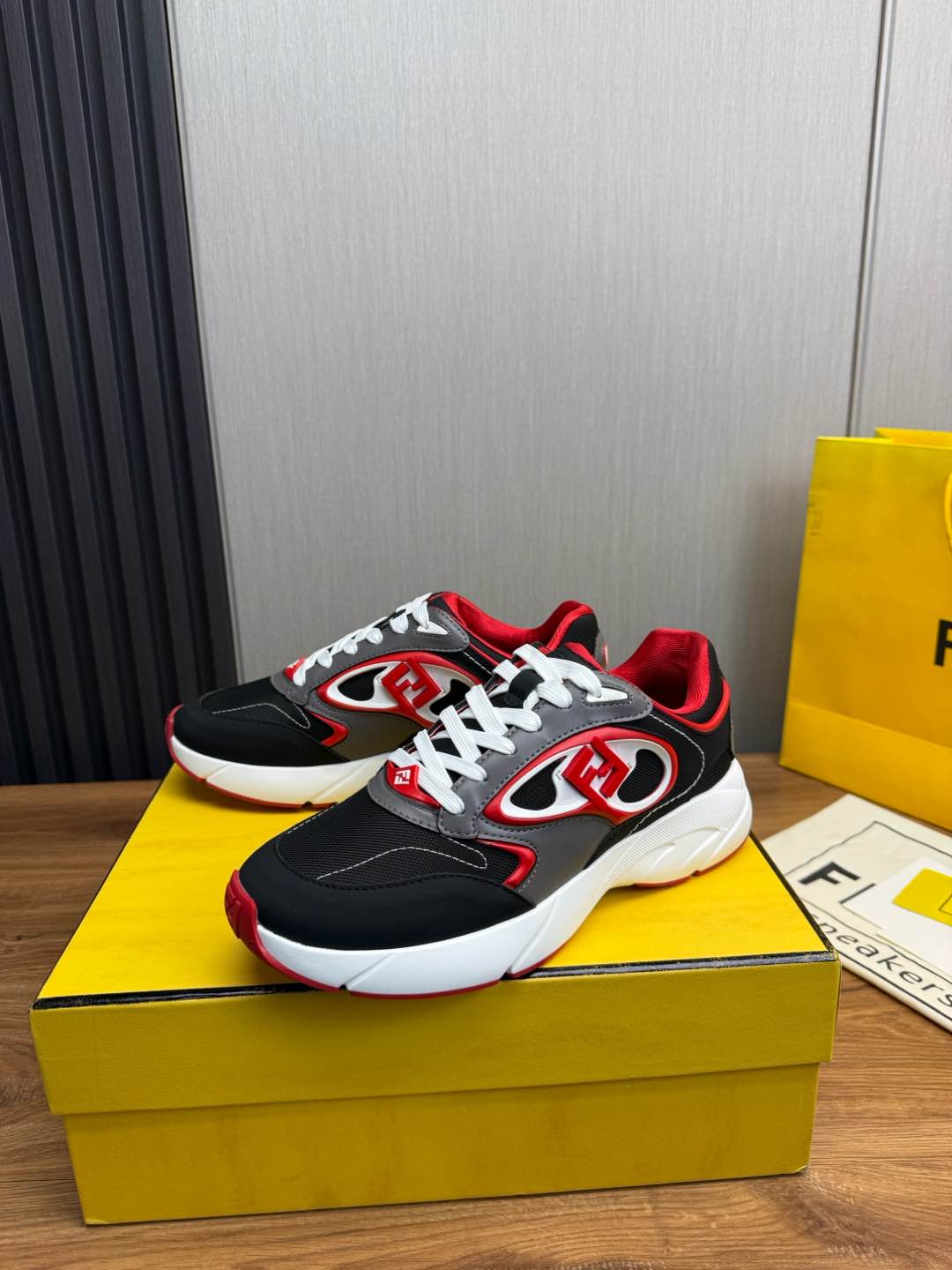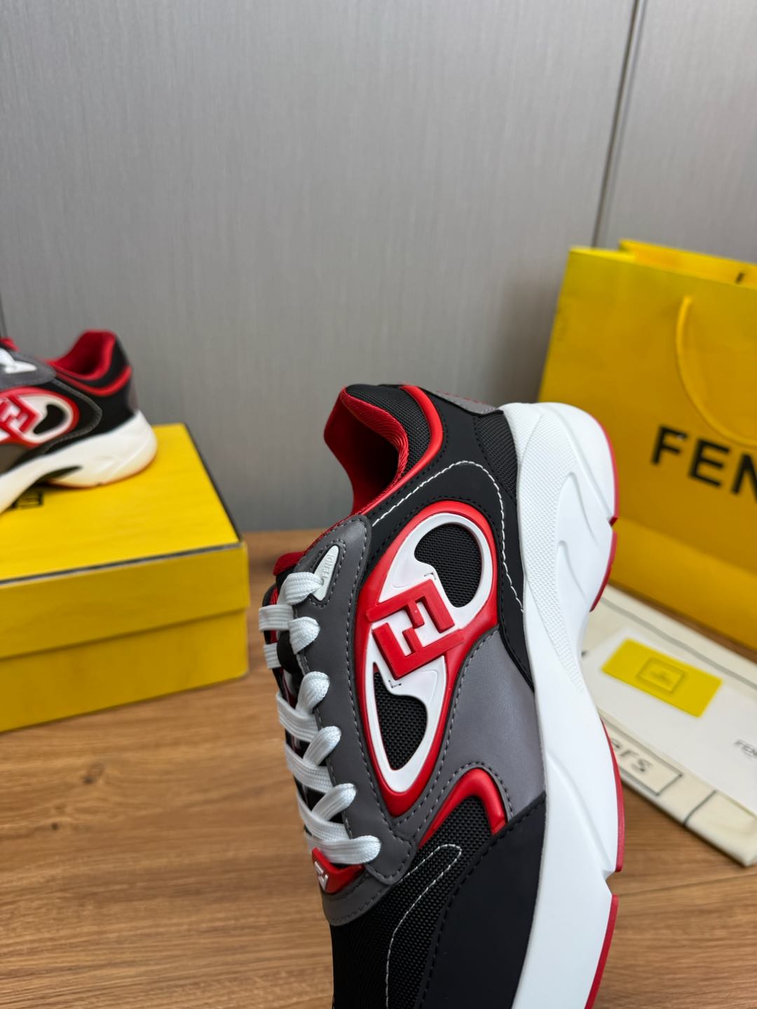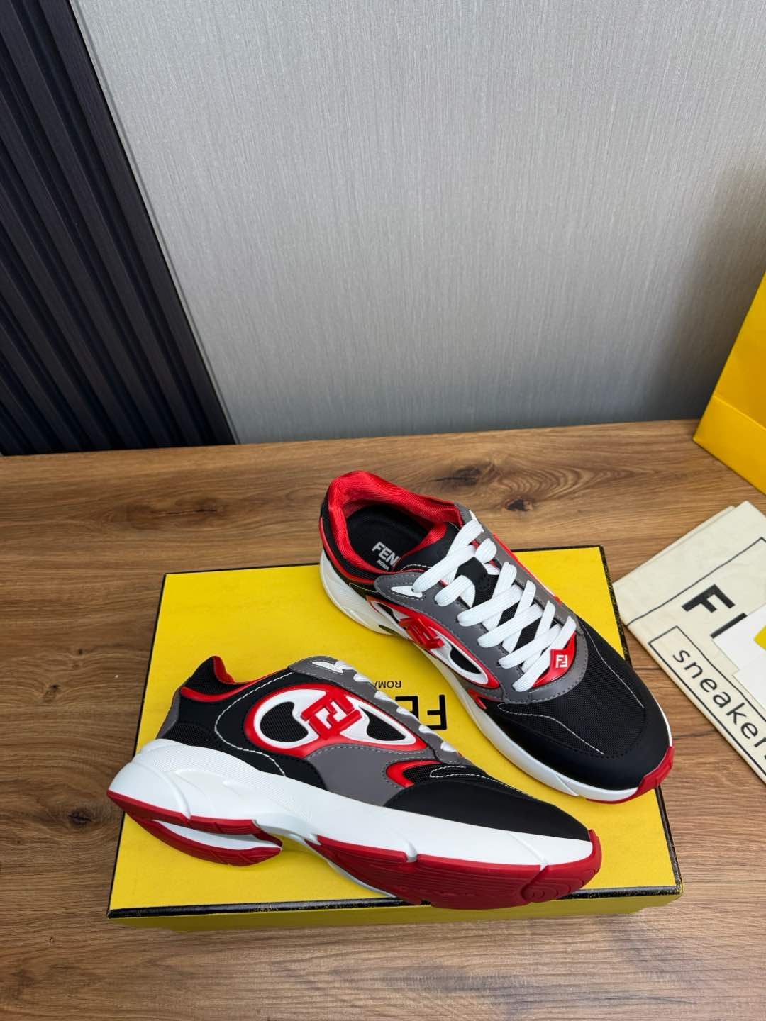 这款鞋子是AAAAA 1:1 质量 (非常棒). 使用了和原版一模一样的材料. 商标部分也保持了和芬迪/Fendi一样. 图片拍摄是实物鞋子拍摄, 您所收到的实物保证和我们图片一模一样.