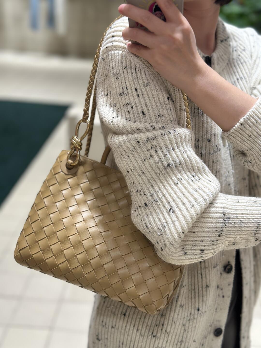 这款包包是AAAAA 1:1 质量 (非常棒). 使用了和原版一模一样的材料. 商标部分也保持了和葆蝶家/Bottega Veneta一样. 图片拍摄是实物包包拍摄, 您所收到的实物保证和我们图片一模一样.