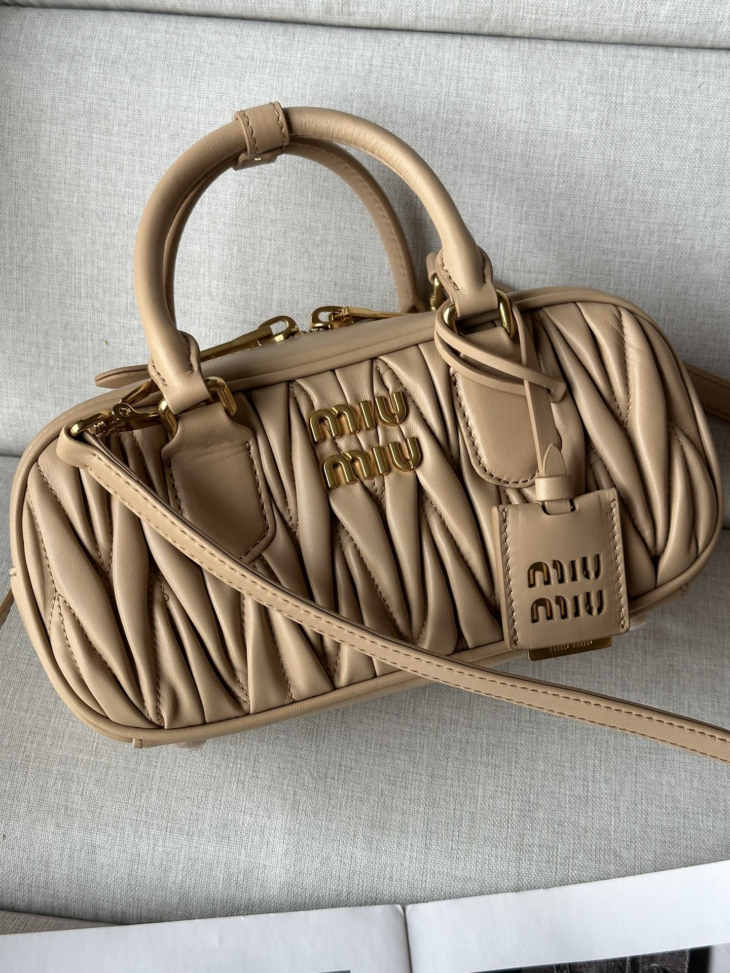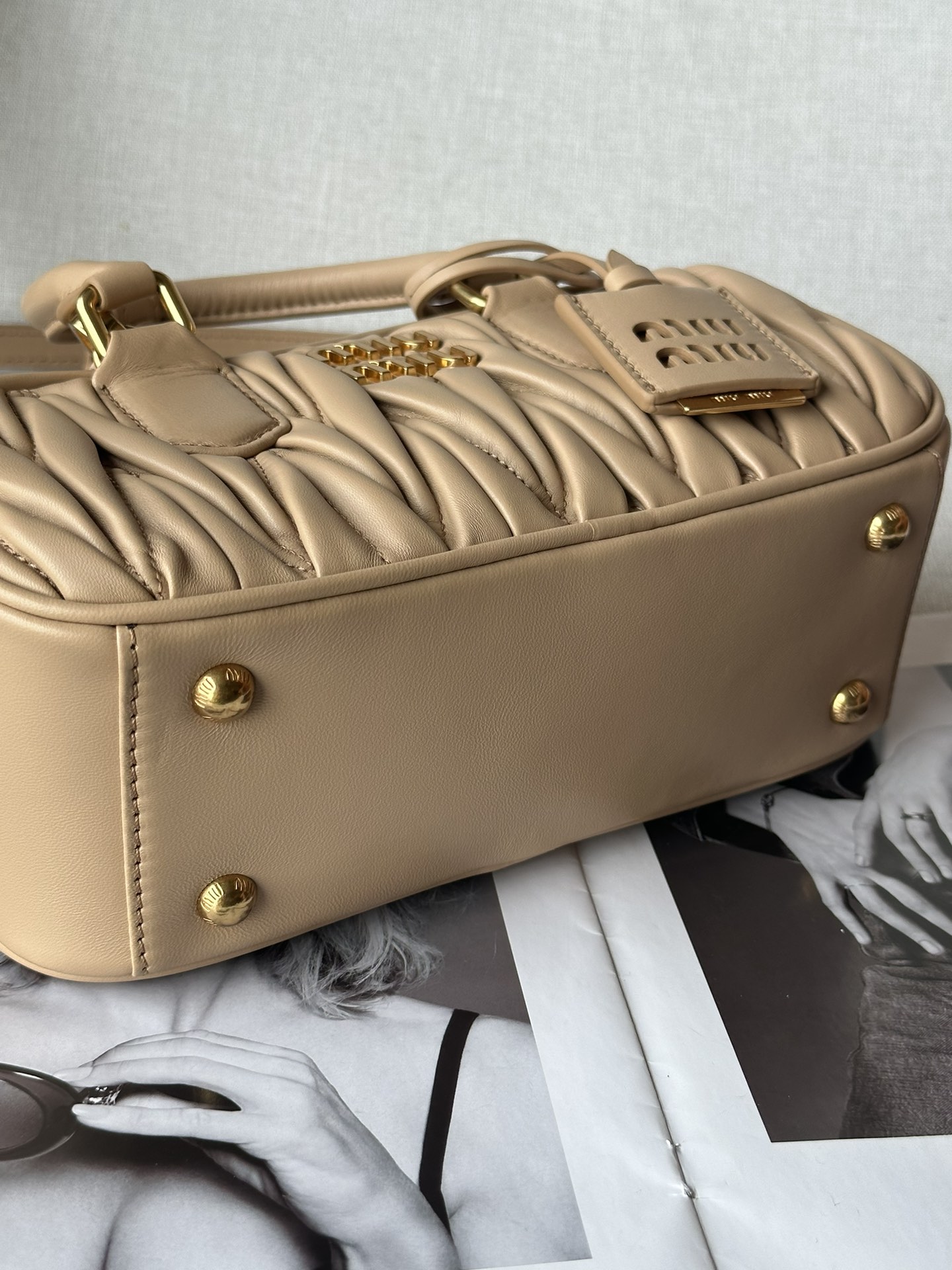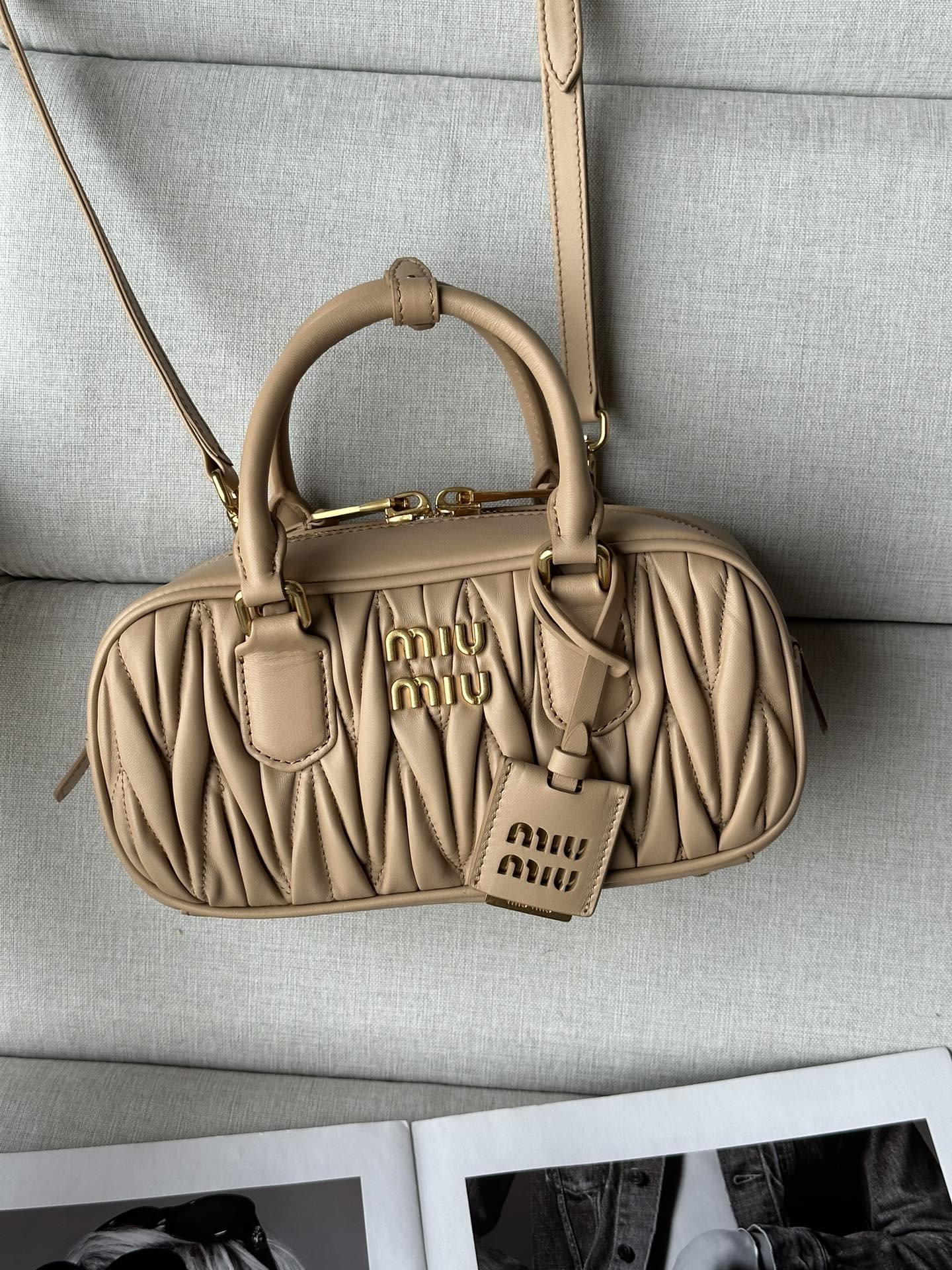 这款包包是AAAAA 1:1 质量 (非常棒). 使用了和原版一模一样的材料. 商标部分也保持了和缪缪/Miu Miu一样. 图片拍摄是实物包包拍摄, 您所收到的实物保证和我们图片一模一样.
