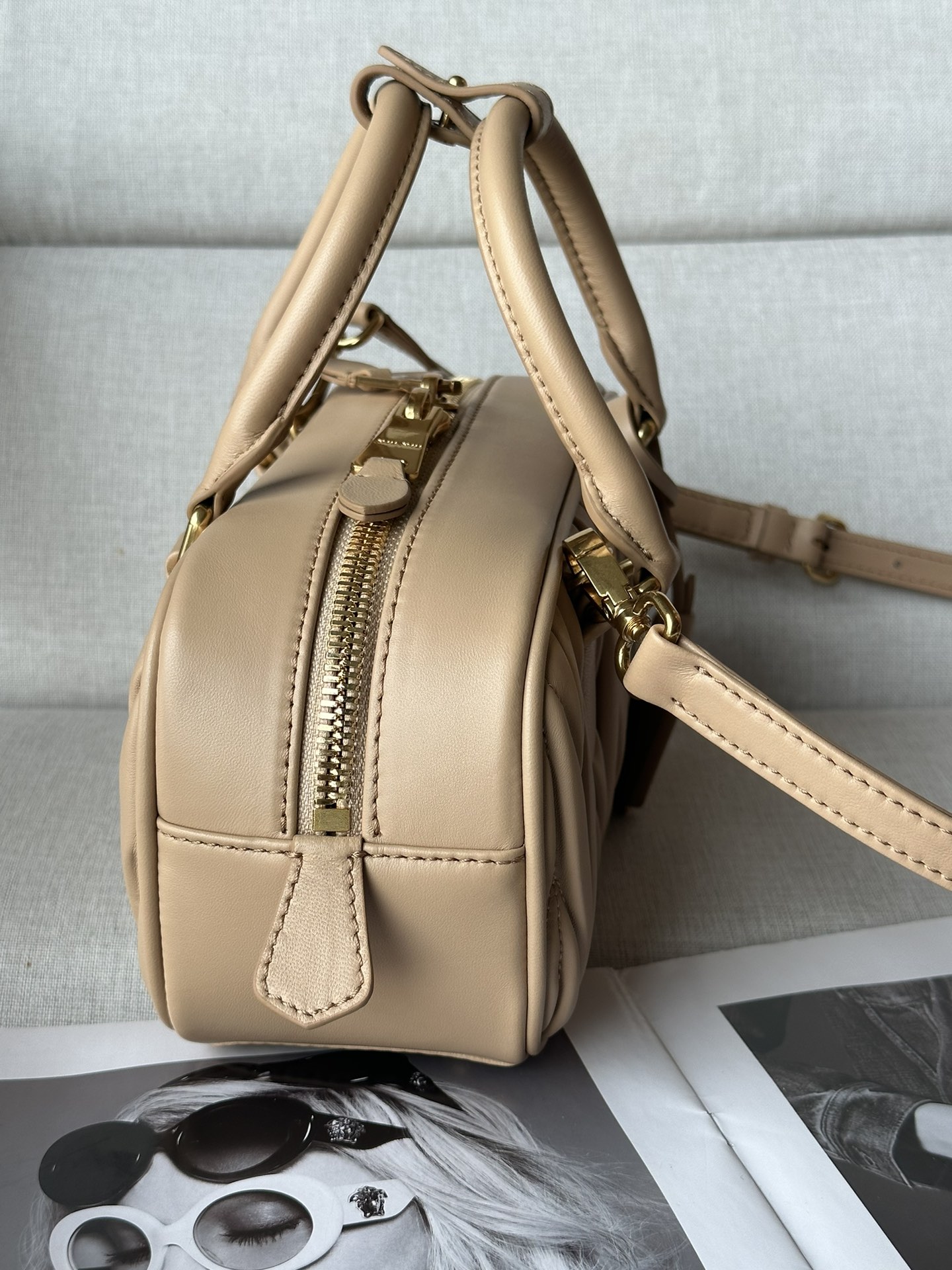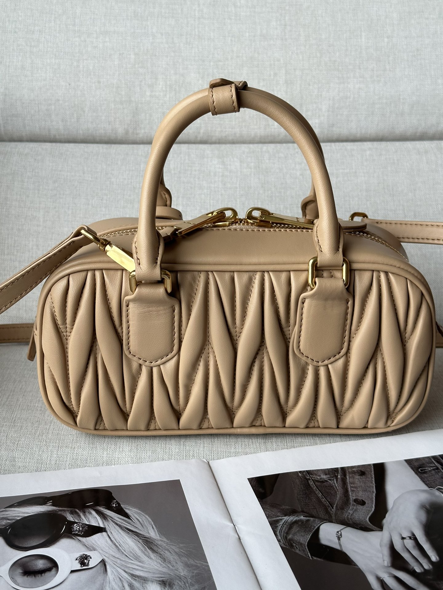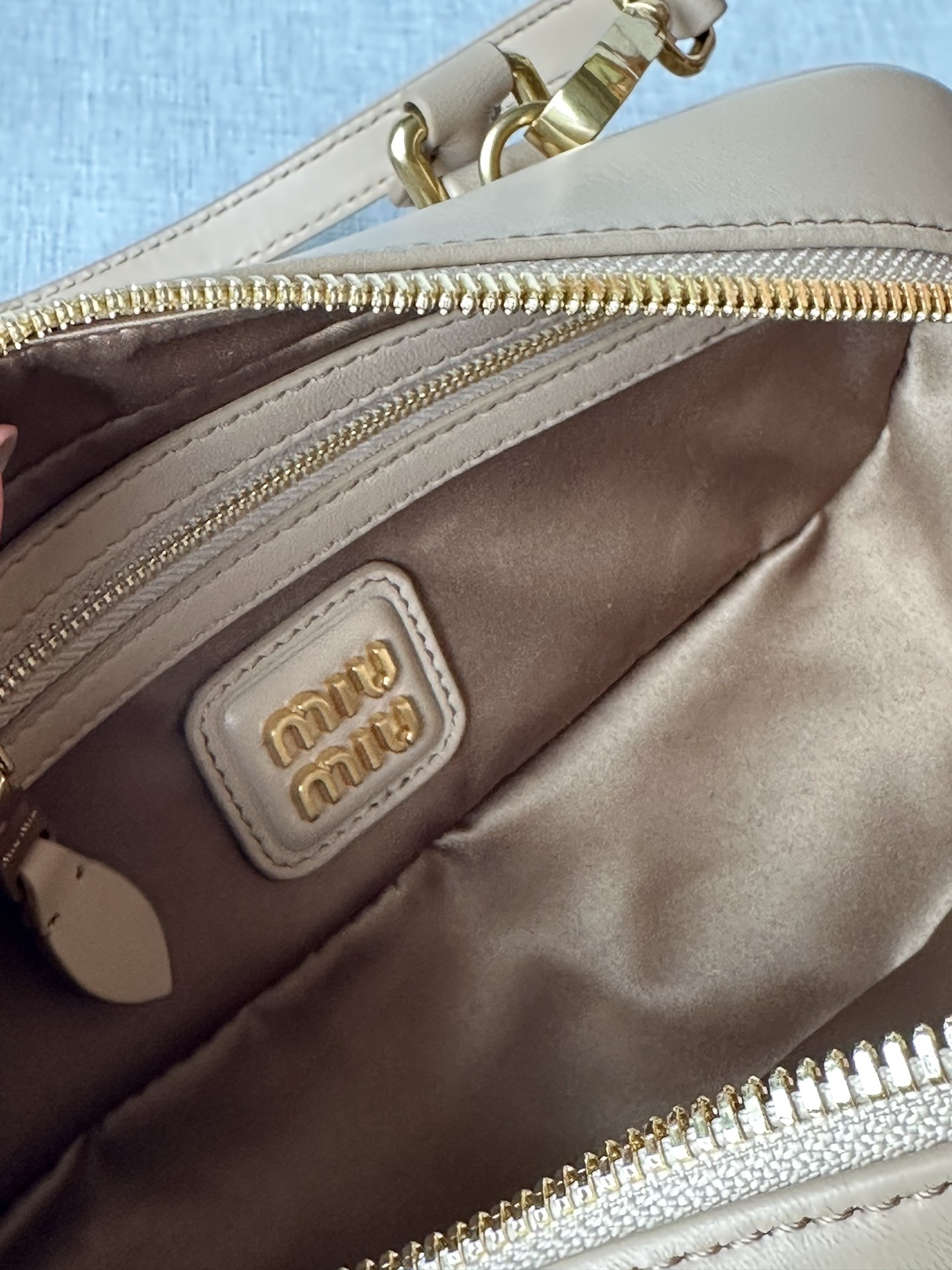 这款包包是AAAAA 1:1 质量 (非常棒). 使用了和原版一模一样的材料. 商标部分也保持了和缪缪/Miu Miu一样. 图片拍摄是实物包包拍摄, 您所收到的实物保证和我们图片一模一样.