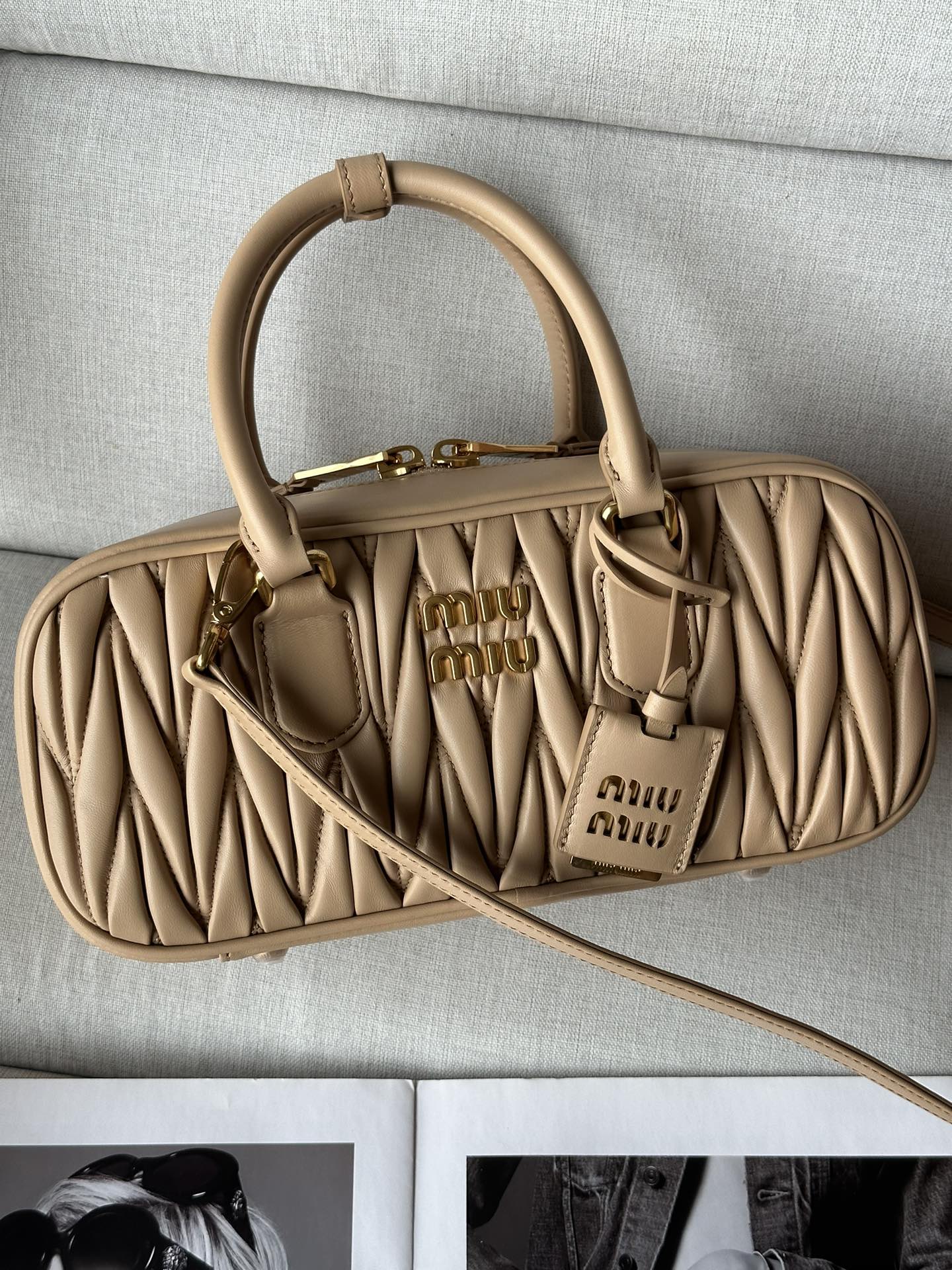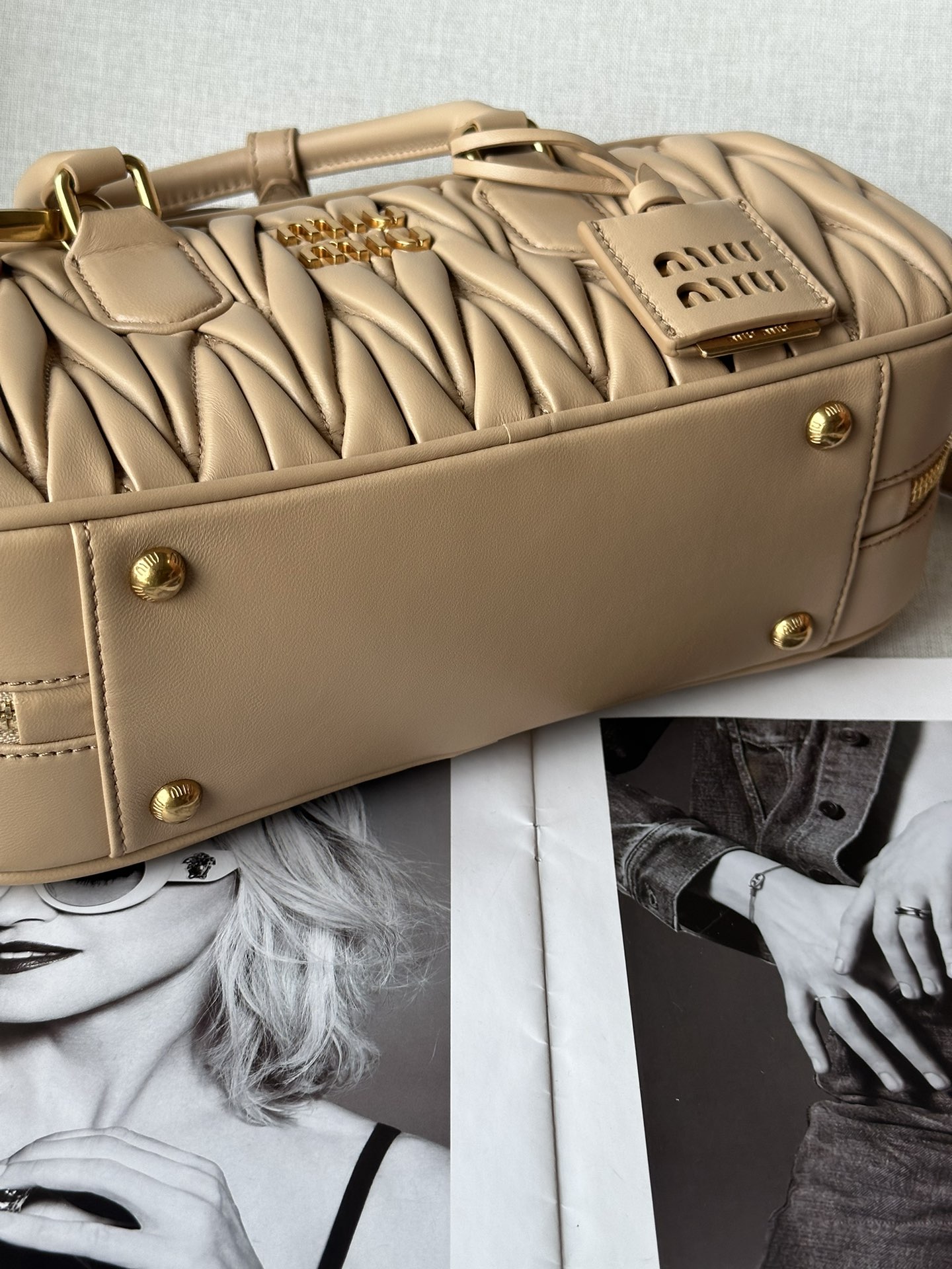 这款包包是AAAAA 1:1 质量 (非常棒). 使用了和原版一模一样的材料. 商标部分也保持了和缪缪/Miu Miu一样. 图片拍摄是实物包包拍摄, 您所收到的实物保证和我们图片一模一样.