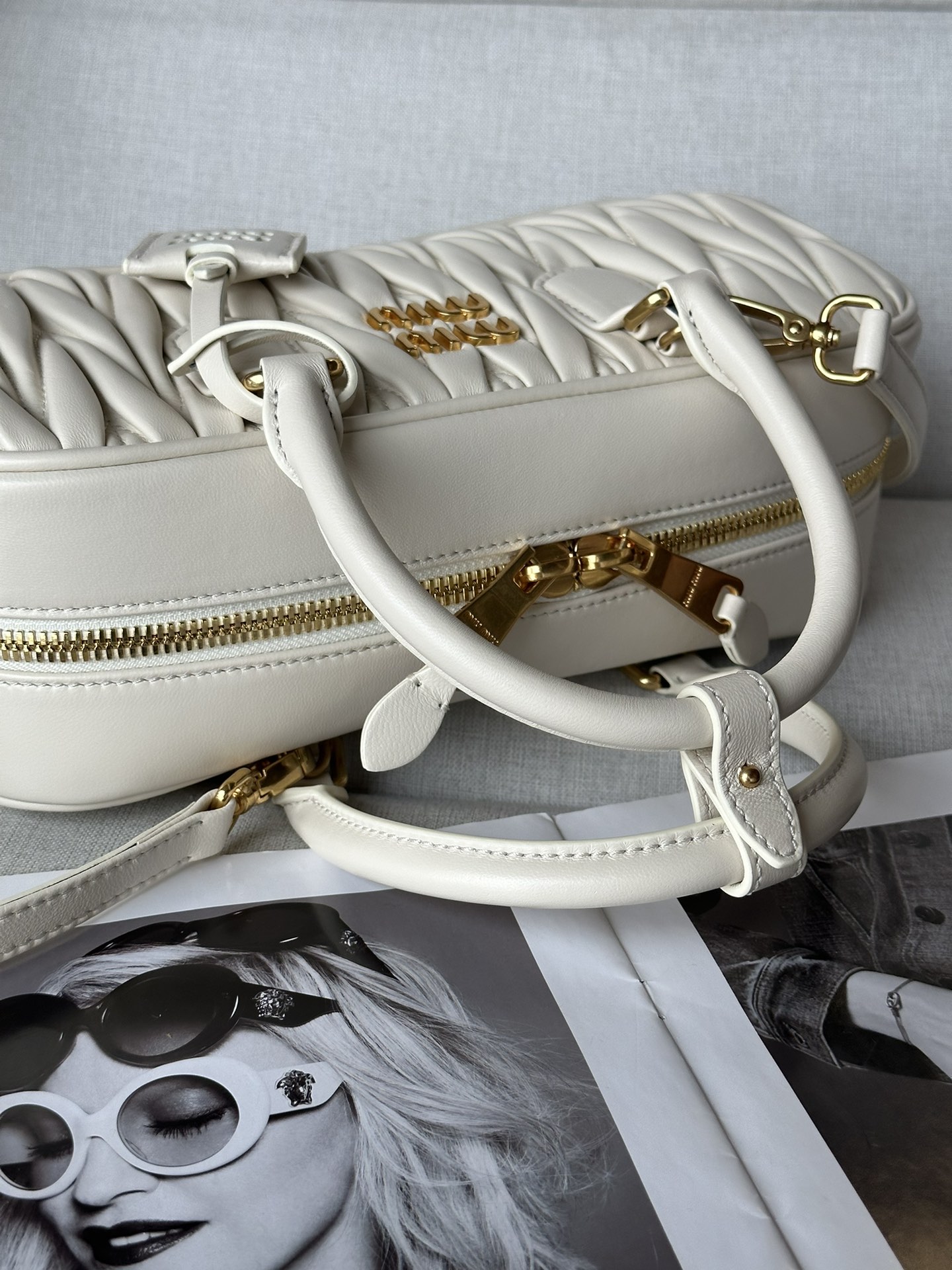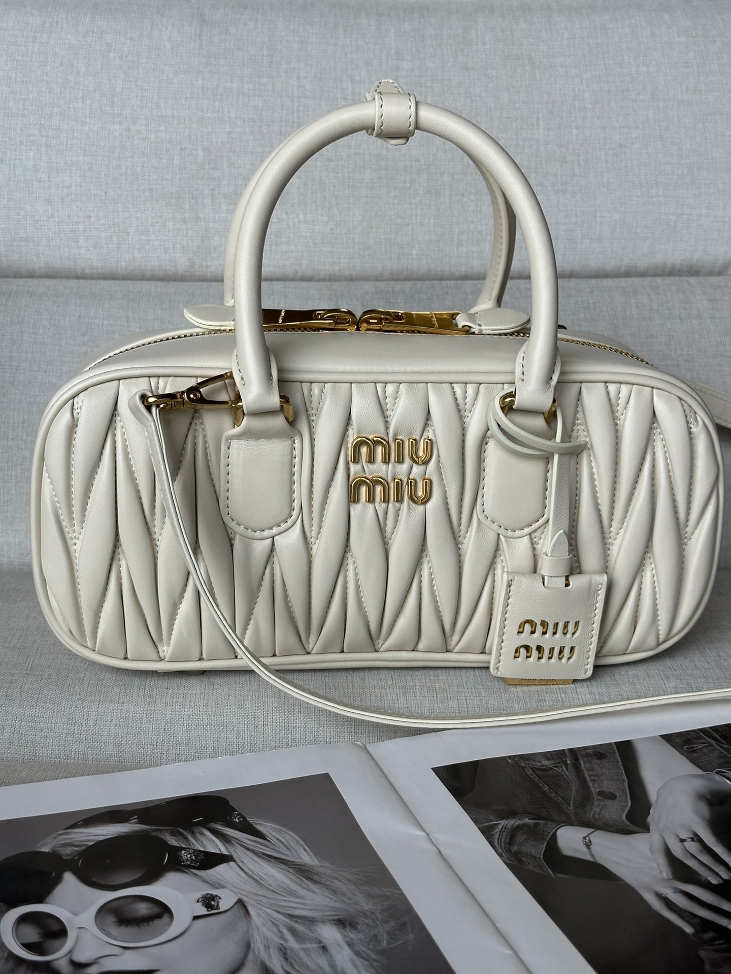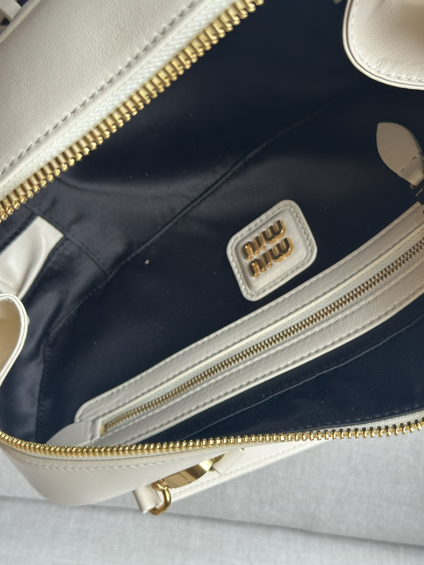这款包包是AAAAA 1:1 质量 (非常棒). 使用了和原版一模一样的材料. 商标部分也保持了和缪缪/Miu Miu一样. 图片拍摄是实物包包拍摄, 您所收到的实物保证和我们图片一模一样.