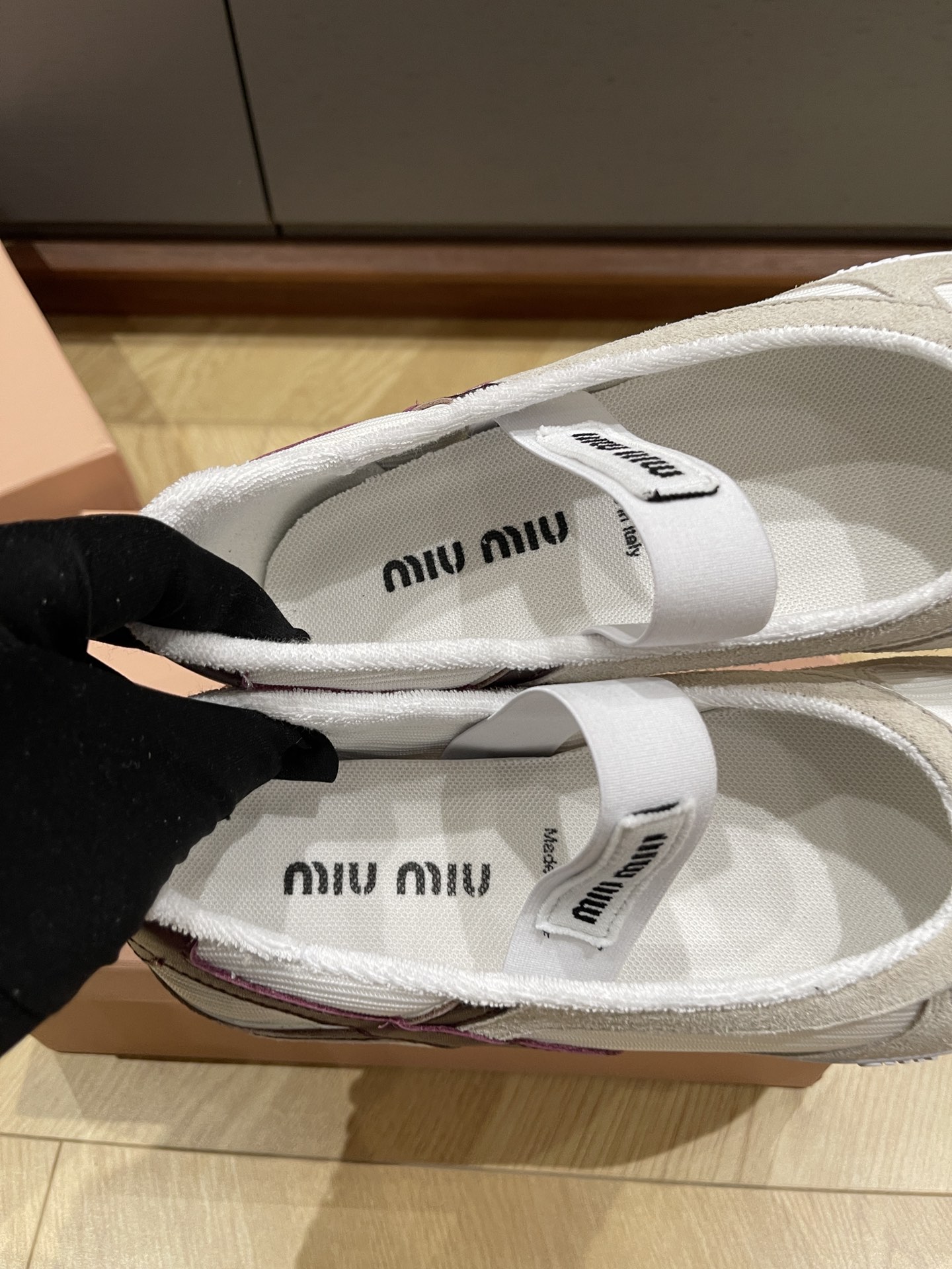 这款鞋子是AAAAA 1:1 质量 (非常棒). 使用了和原版一模一样的材料. 商标部分也保持了和缪缪/Miu Miu一样. 图片拍摄是实物鞋子拍摄, 您所收到的实物保证和我们图片一模一样.
