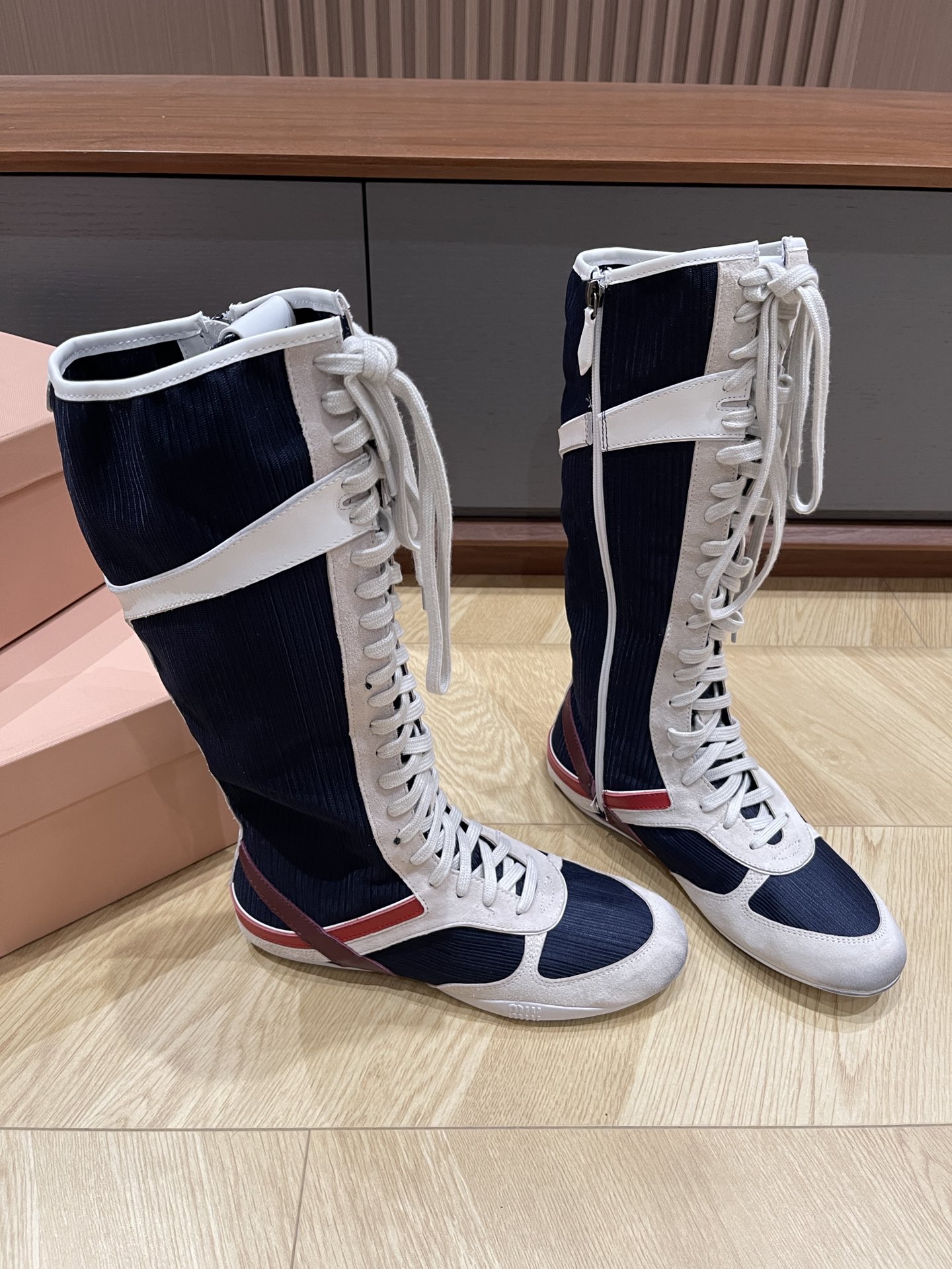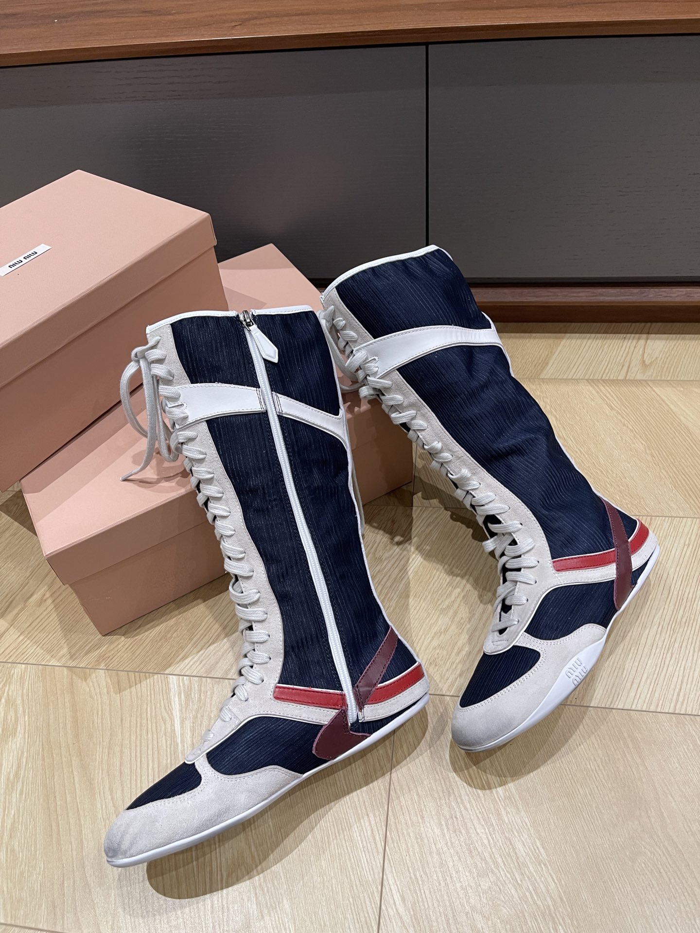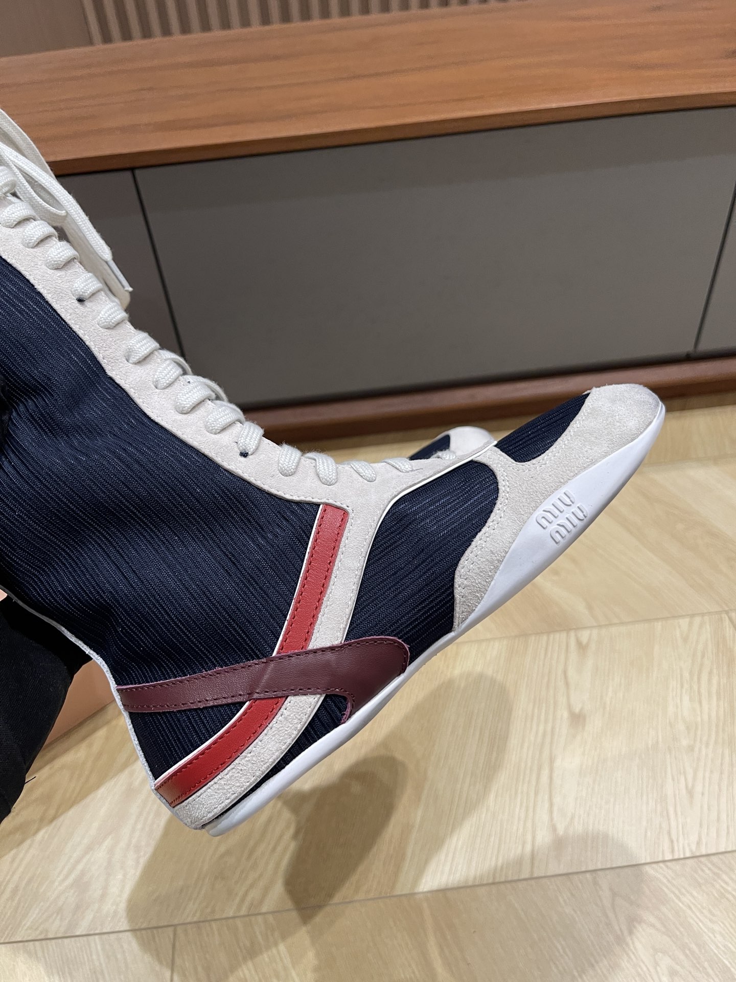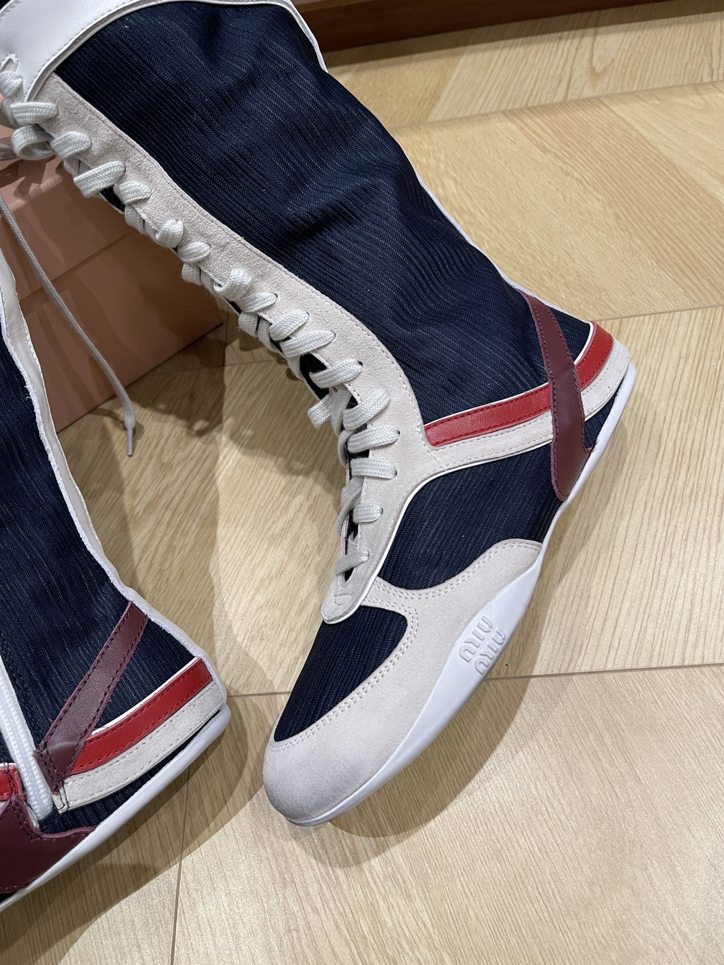 这款鞋子是AAAAA 1:1 质量 (非常棒). 使用了和原版一模一样的材料. 商标部分也保持了和缪缪/Miu Miu一样. 图片拍摄是实物鞋子拍摄, 您所收到的实物保证和我们图片一模一样.