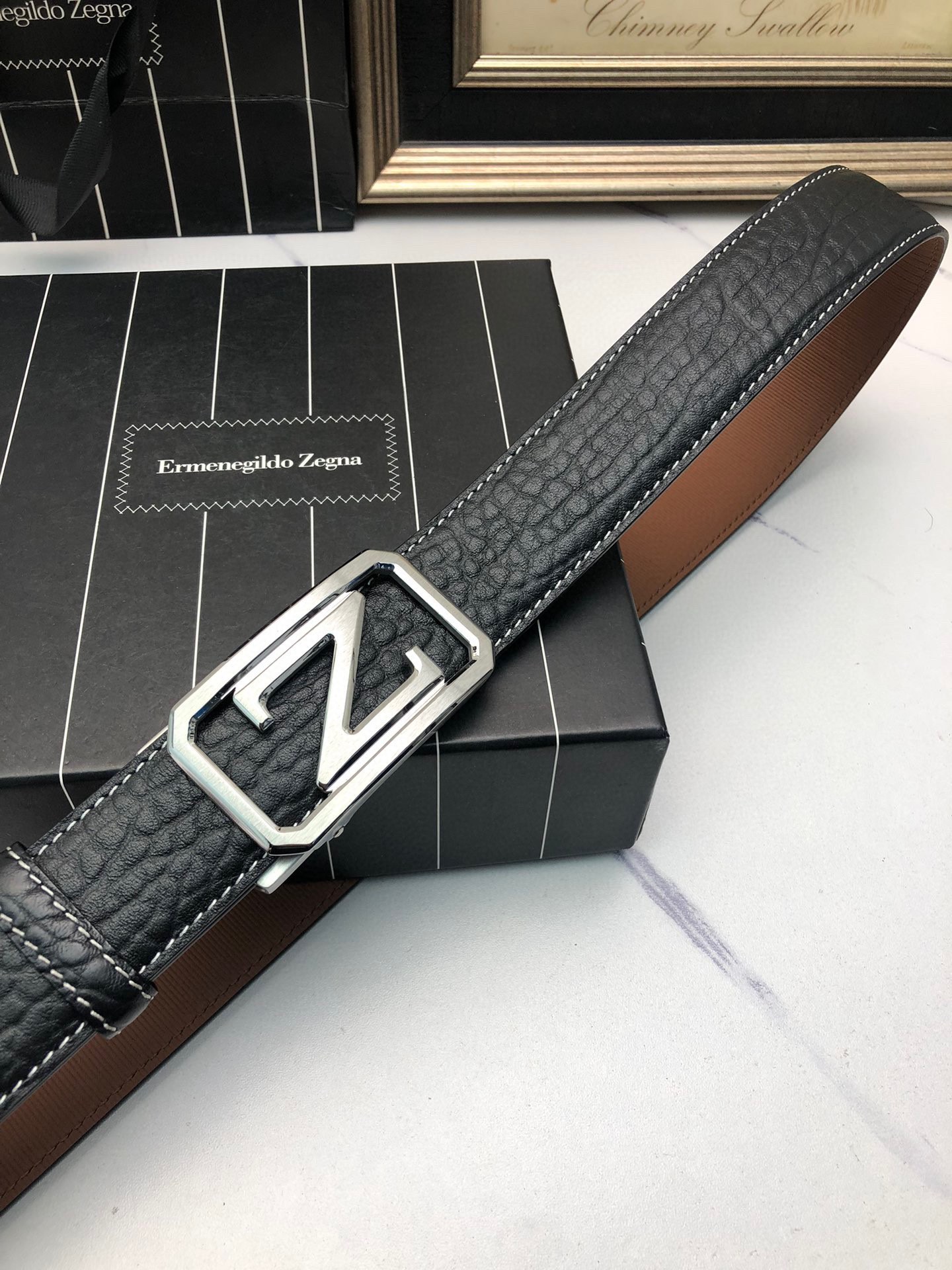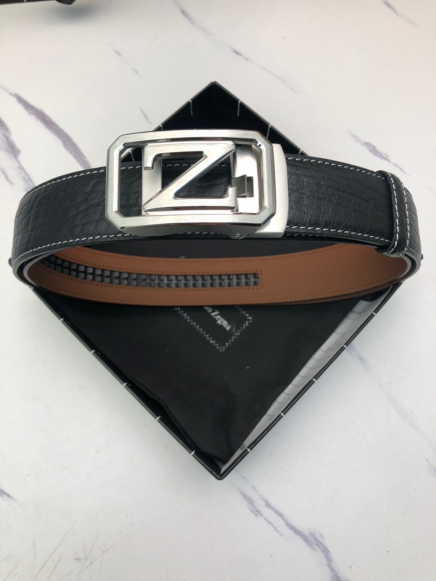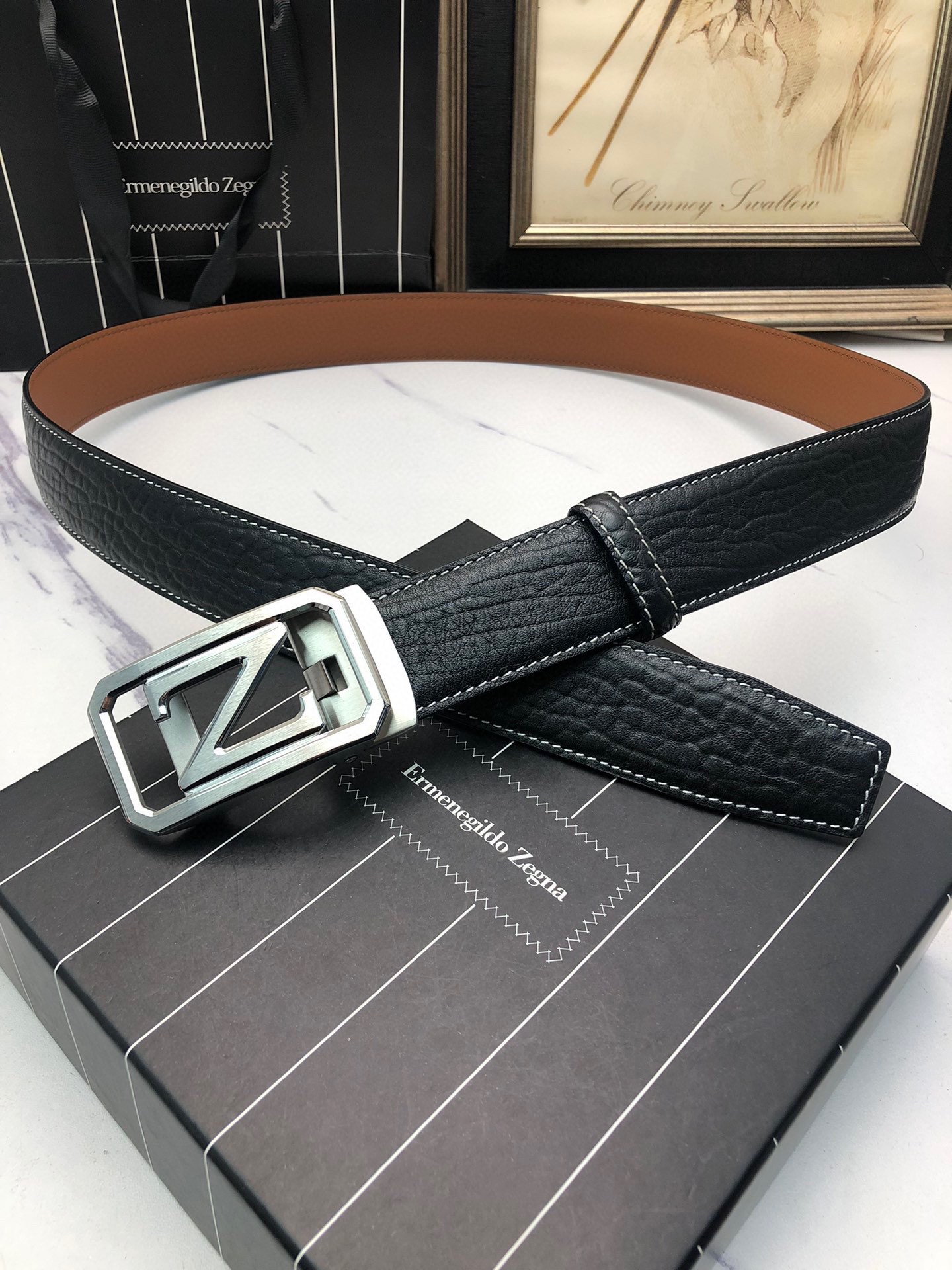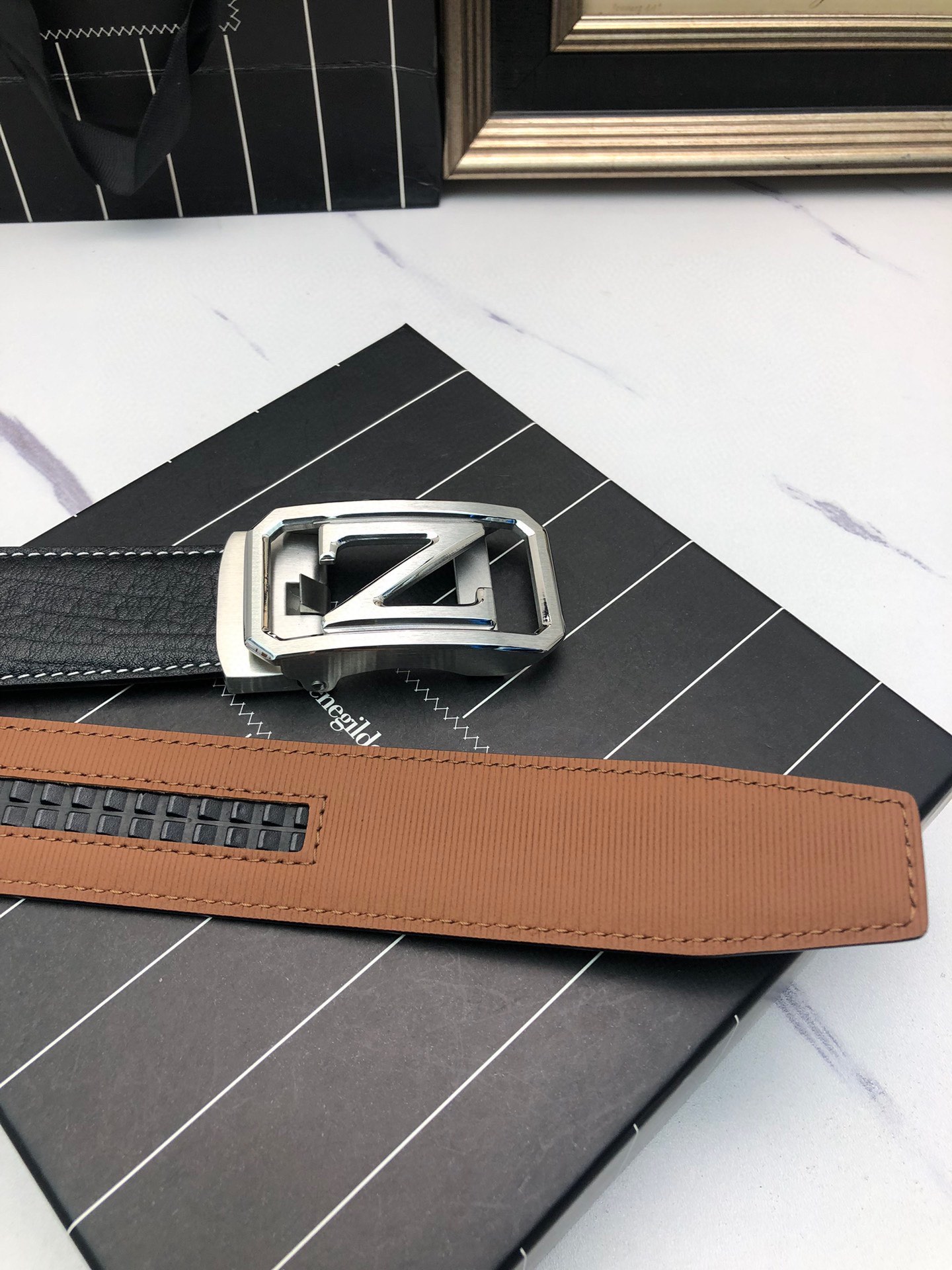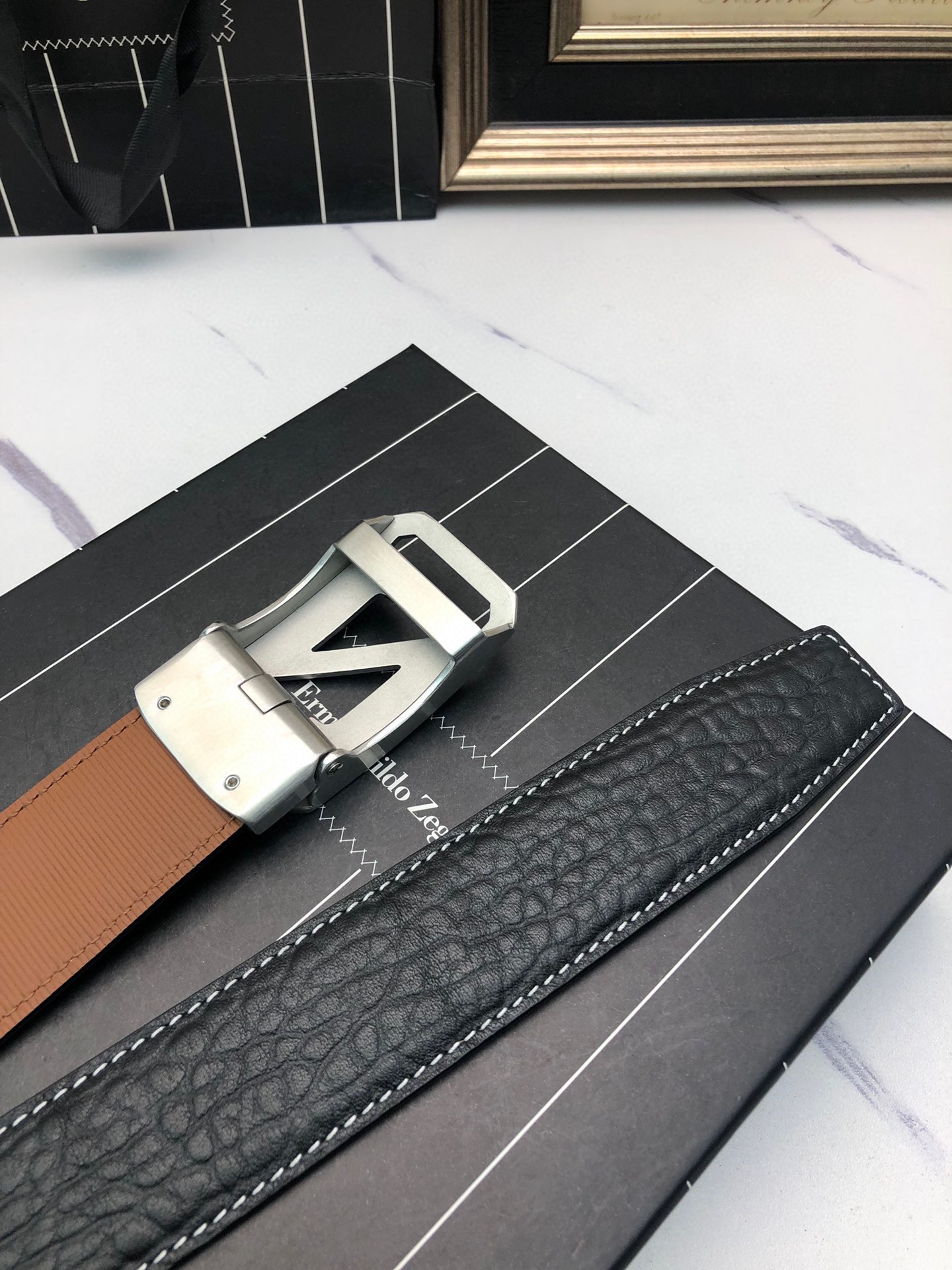 这款皮带是AAAAA 1:1 质量 (非常棒). 使用了和原版一模一样的材料. 商标部分也保持了和杰尼亚/Zegna一样. 图片拍摄是实物皮带拍摄, 您所收到的实物保证和我们图片一模一样.