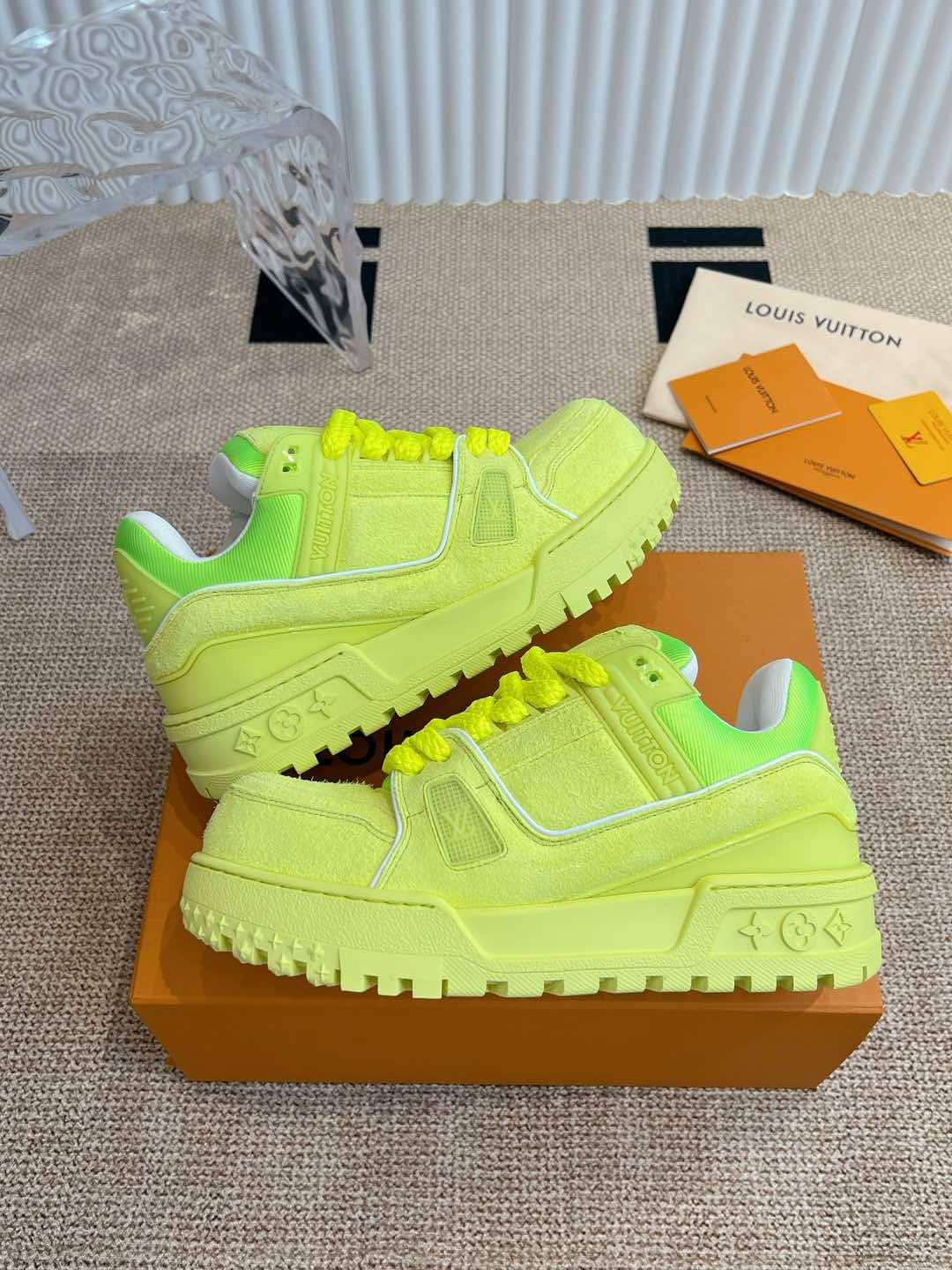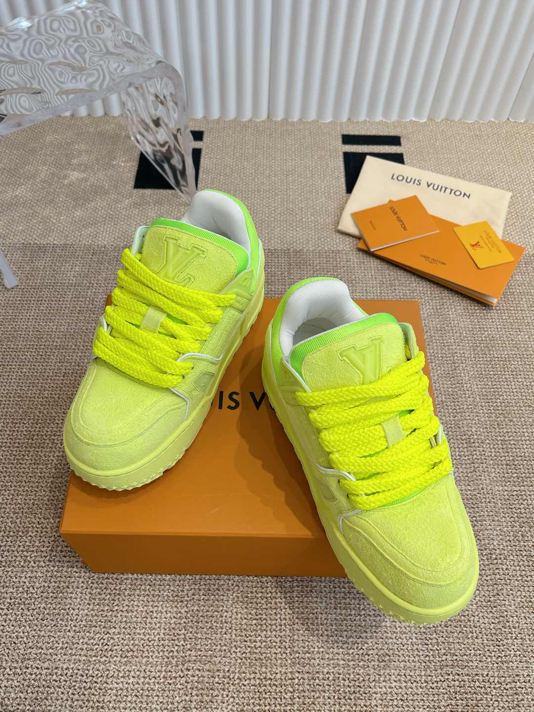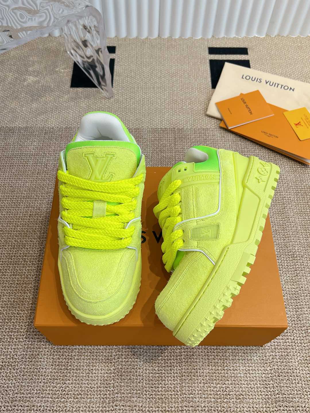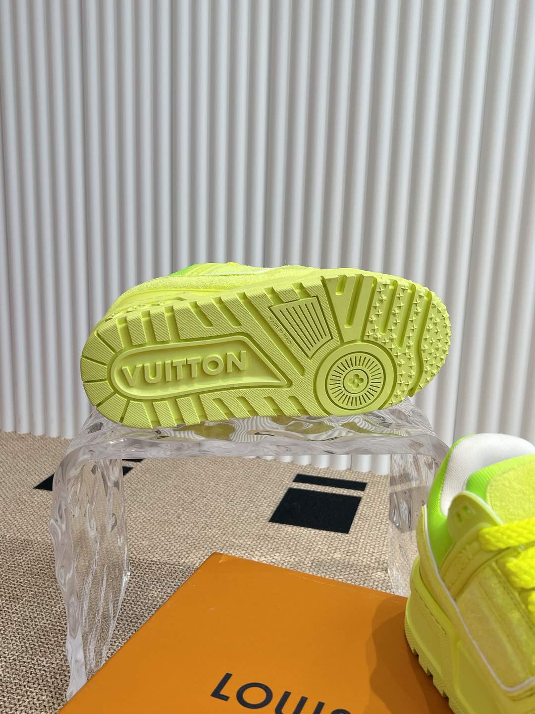 这款鞋子是AAAAA 1:1 质量 (非常棒). 使用了和原版一模一样的材料. 商标部分也保持了和路易威登/Louis Vuitton一样. 图片拍摄是实物鞋子拍摄, 您所收到的实物保证和我们图片一模一样.