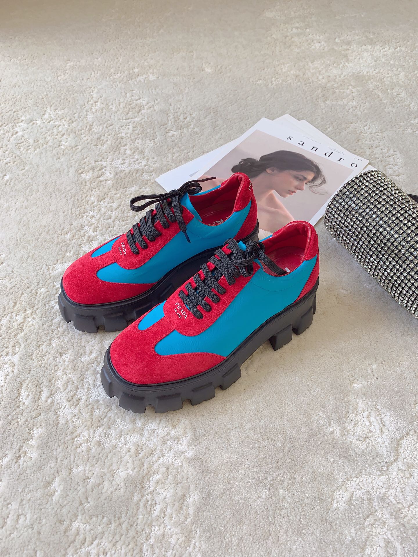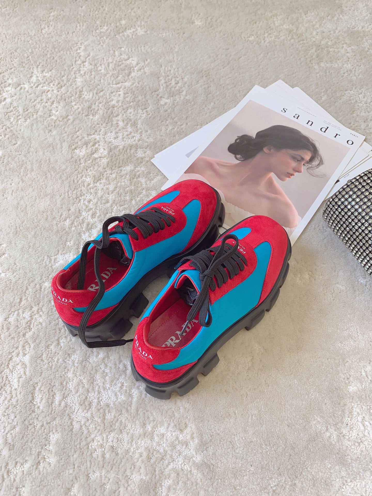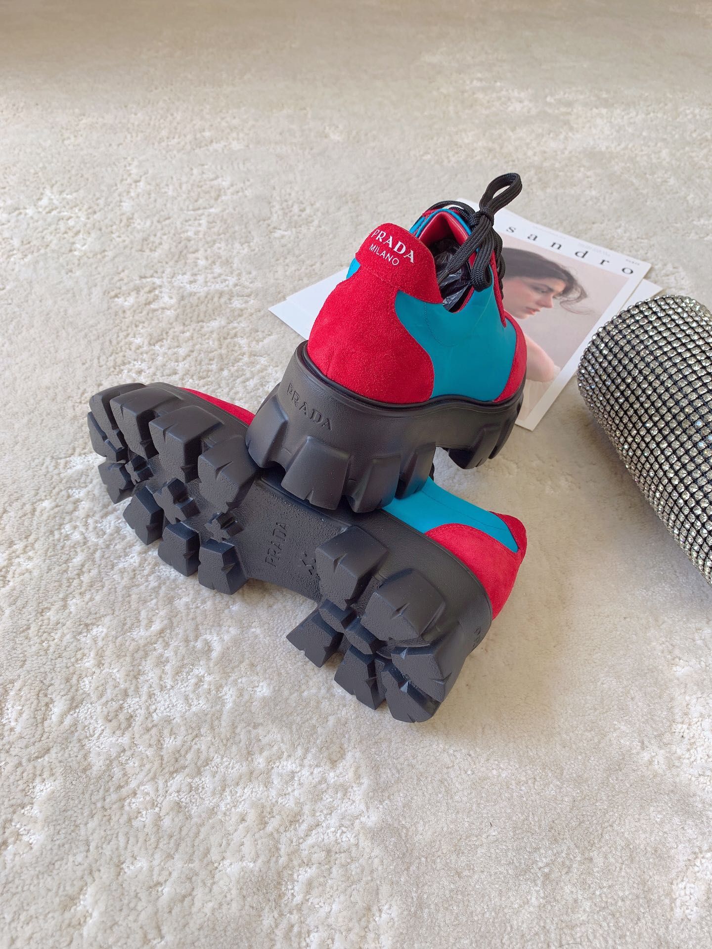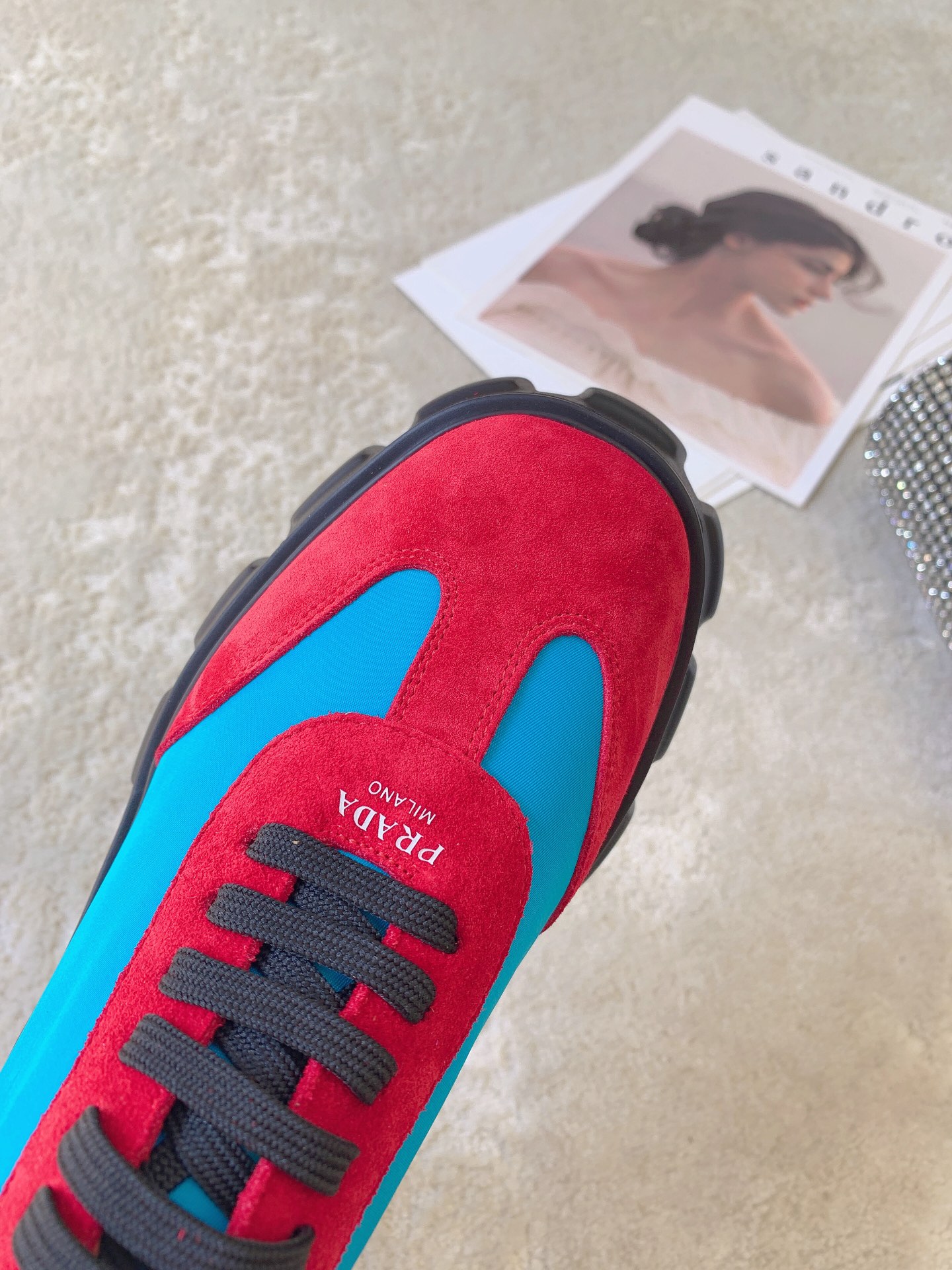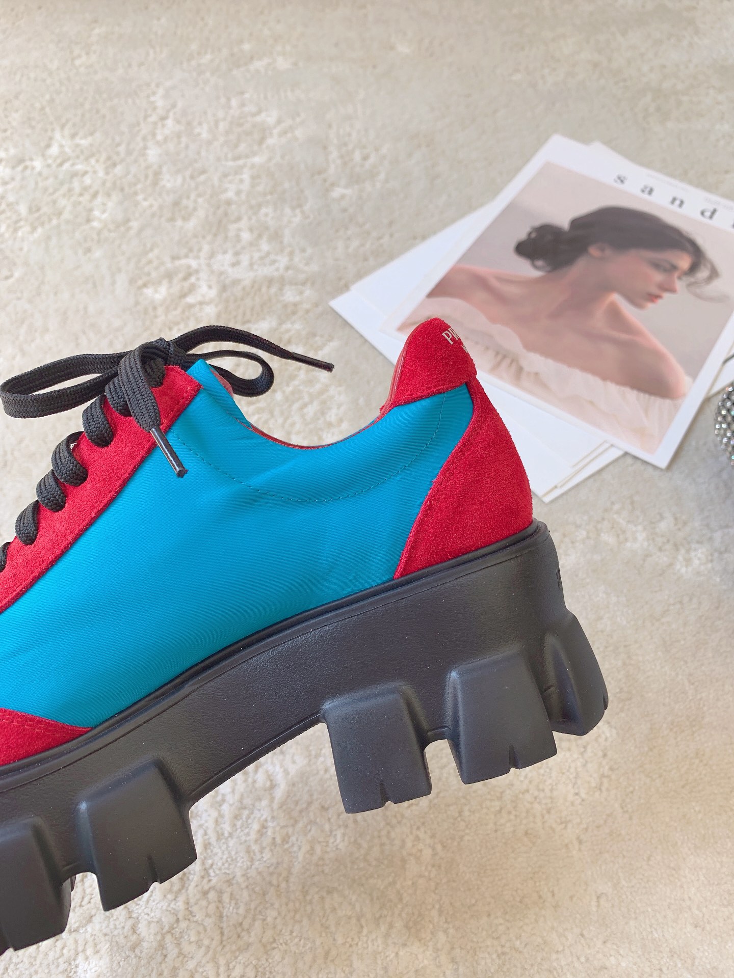 这款鞋子是AAAAA 1:1 质量 (非常棒). 使用了和原版一模一样的材料. 商标部分也保持了和普拉达/Prada一样. 图片拍摄是实物鞋子拍摄, 您所收到的实物保证和我们图片一模一样.