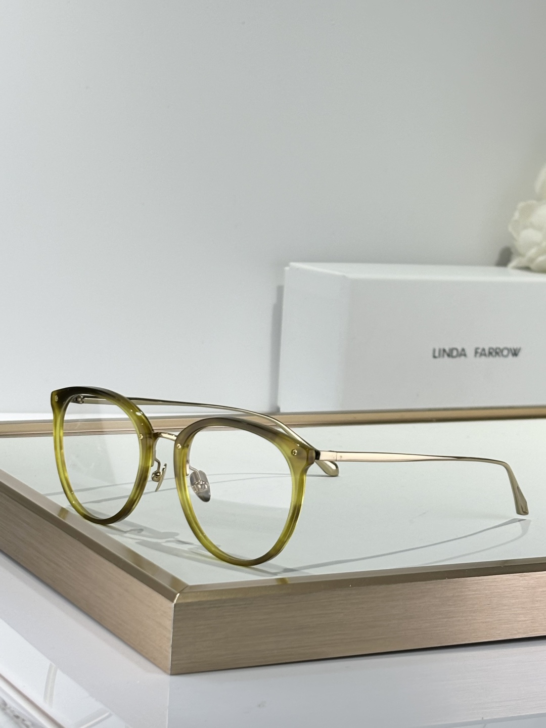 这款太阳眼镜是AAAAA 1:1 质量 (非常棒). 使用了和原版一模一样的材料. 商标部分也保持了和琳达·法罗/Linda Farrow一样. 图片拍摄是实物太阳眼镜拍摄, 您所收到的实物保证和我们图片一模一样.