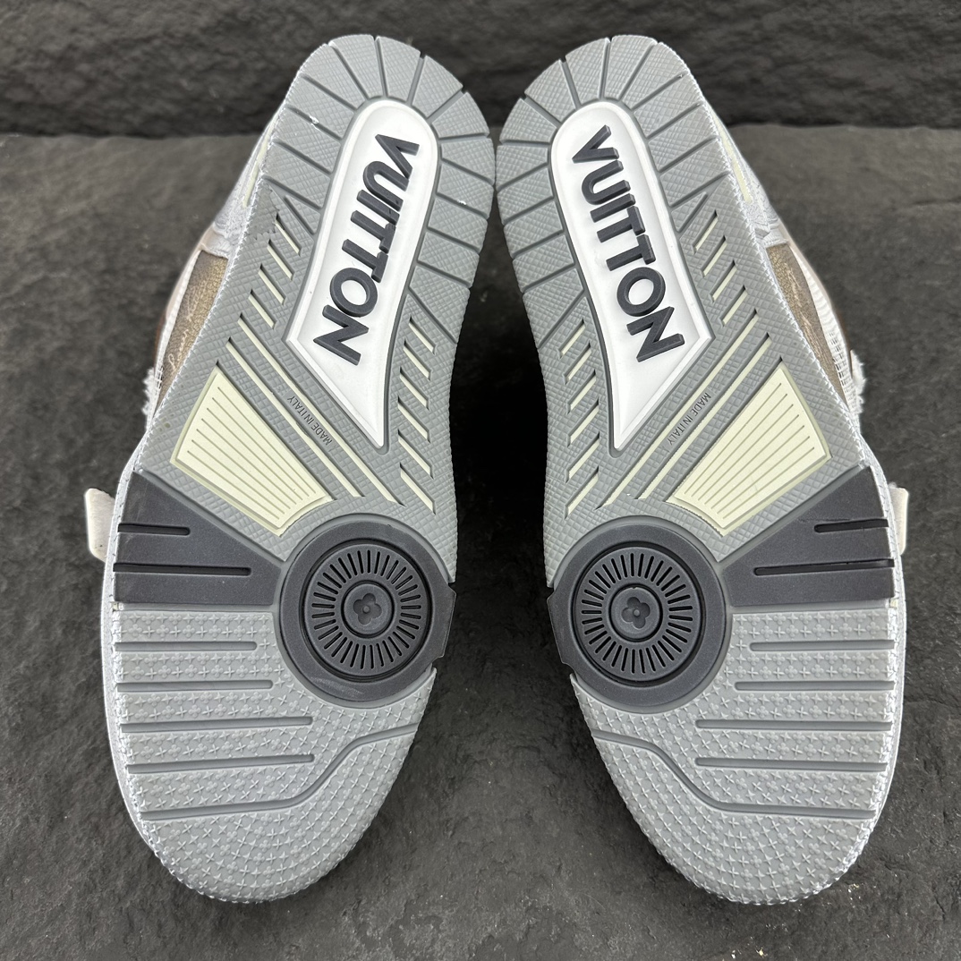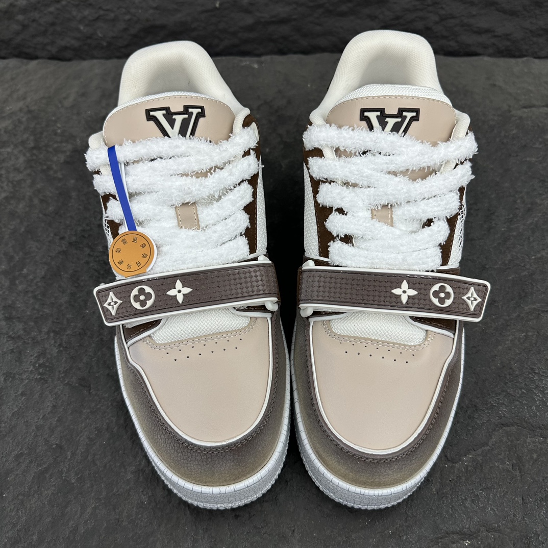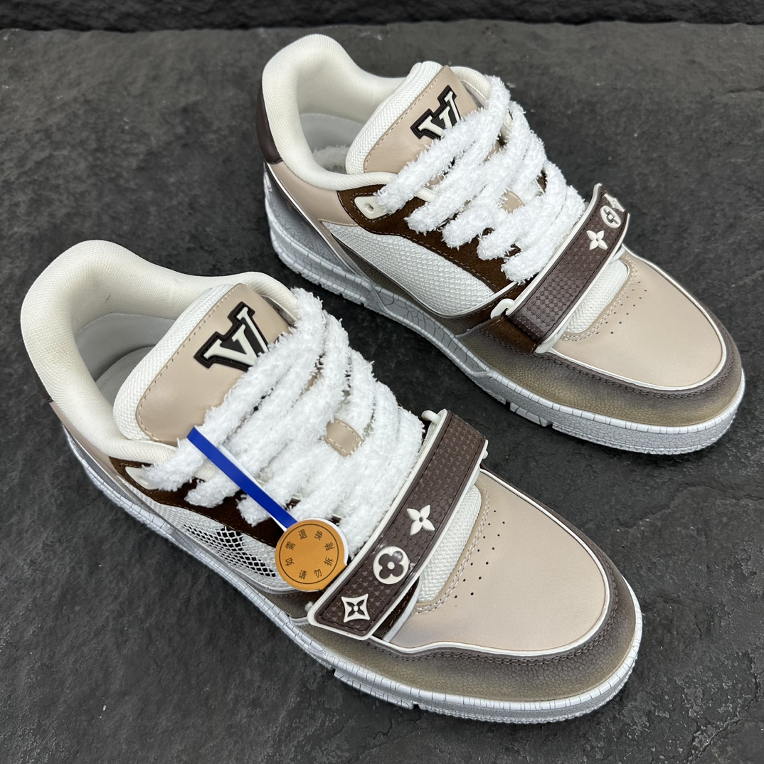 这款鞋子是AAAAA 1:1 质量 (非常棒). 使用了和原版一模一样的材料. 商标部分也保持了和路易威登/Louis Vuitton一样. 图片拍摄是实物鞋子拍摄, 您所收到的实物保证和我们图片一模一样.
