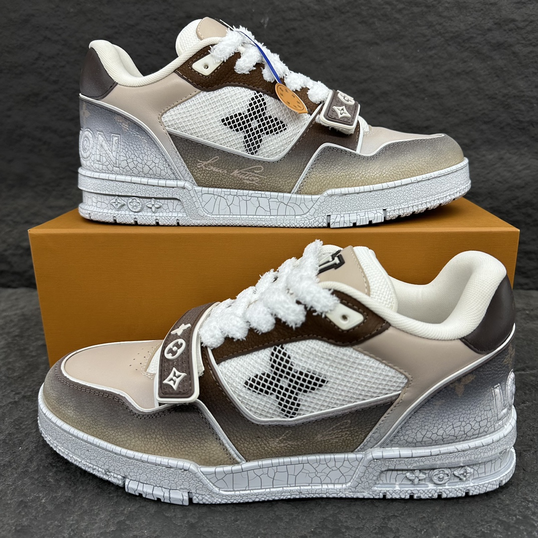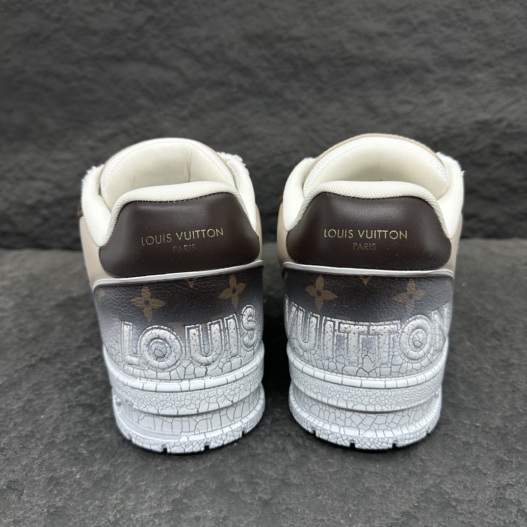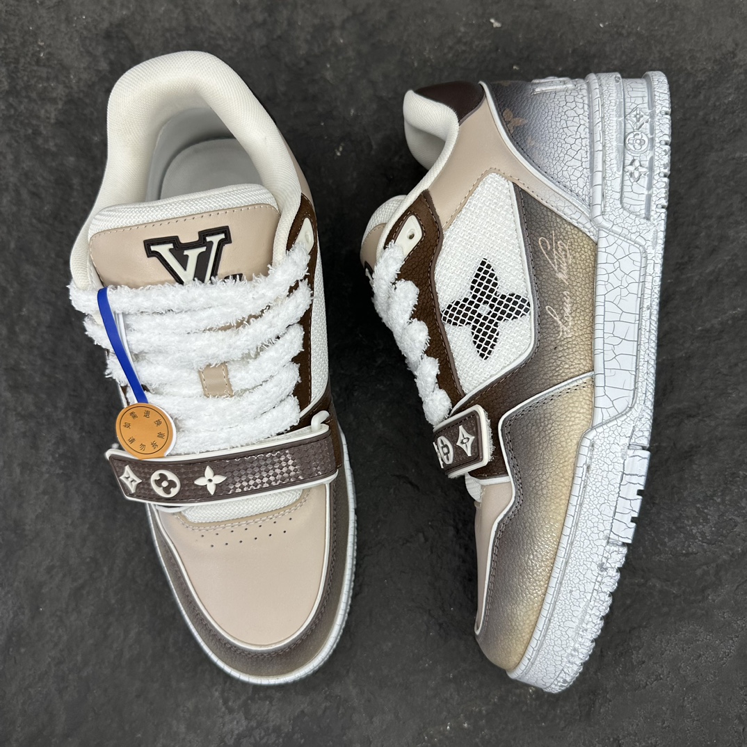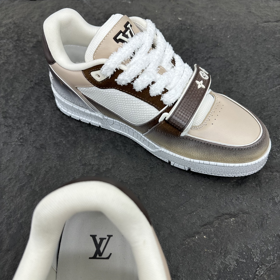这款鞋子是AAAAA 1:1 质量 (非常棒). 使用了和原版一模一样的材料. 商标部分也保持了和路易威登/Louis Vuitton一样. 图片拍摄是实物鞋子拍摄, 您所收到的实物保证和我们图片一模一样.