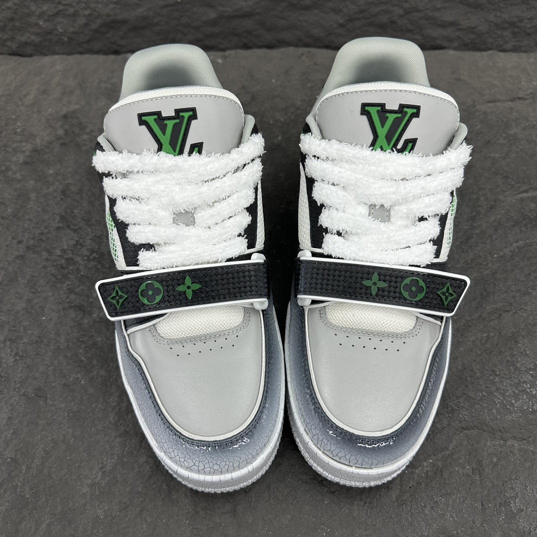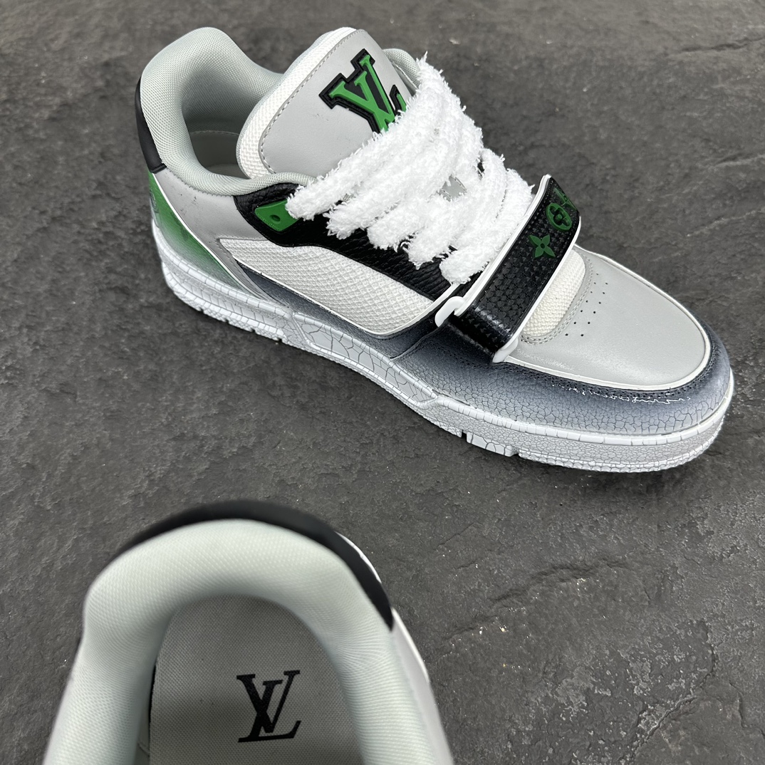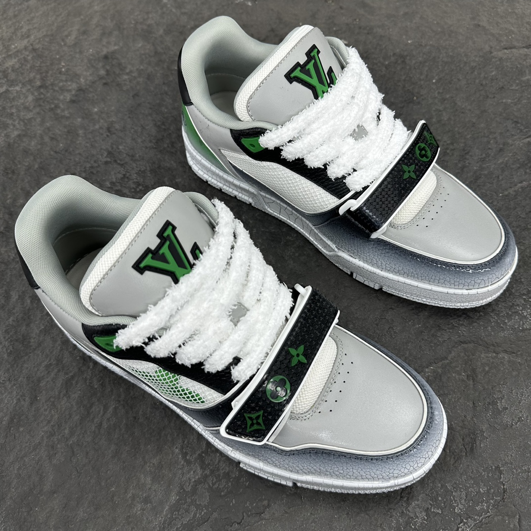 这款鞋子是AAAAA 1:1 质量 (非常棒). 使用了和原版一模一样的材料. 商标部分也保持了和路易威登/Louis Vuitton一样. 图片拍摄是实物鞋子拍摄, 您所收到的实物保证和我们图片一模一样.