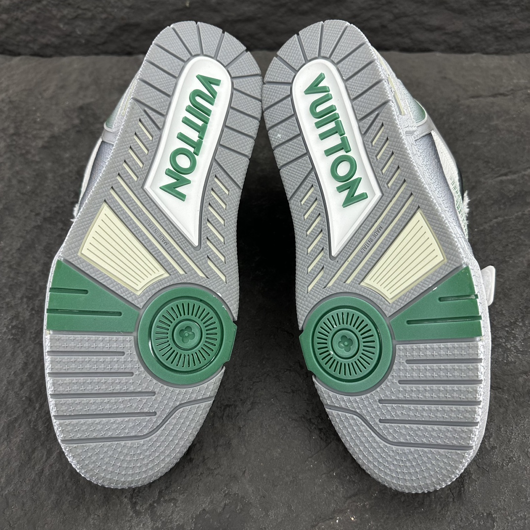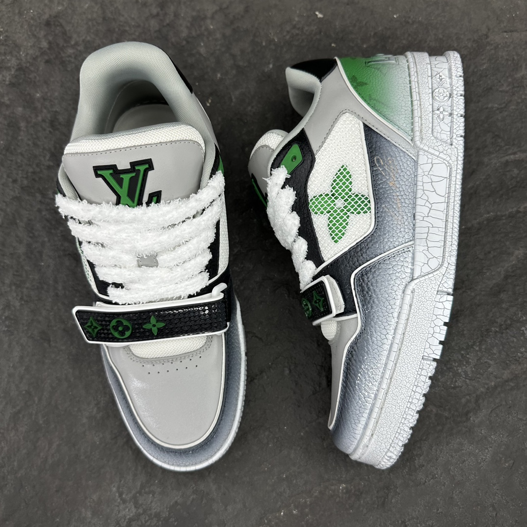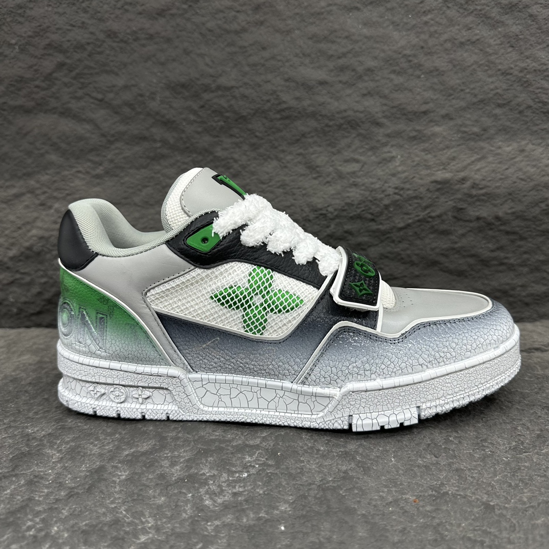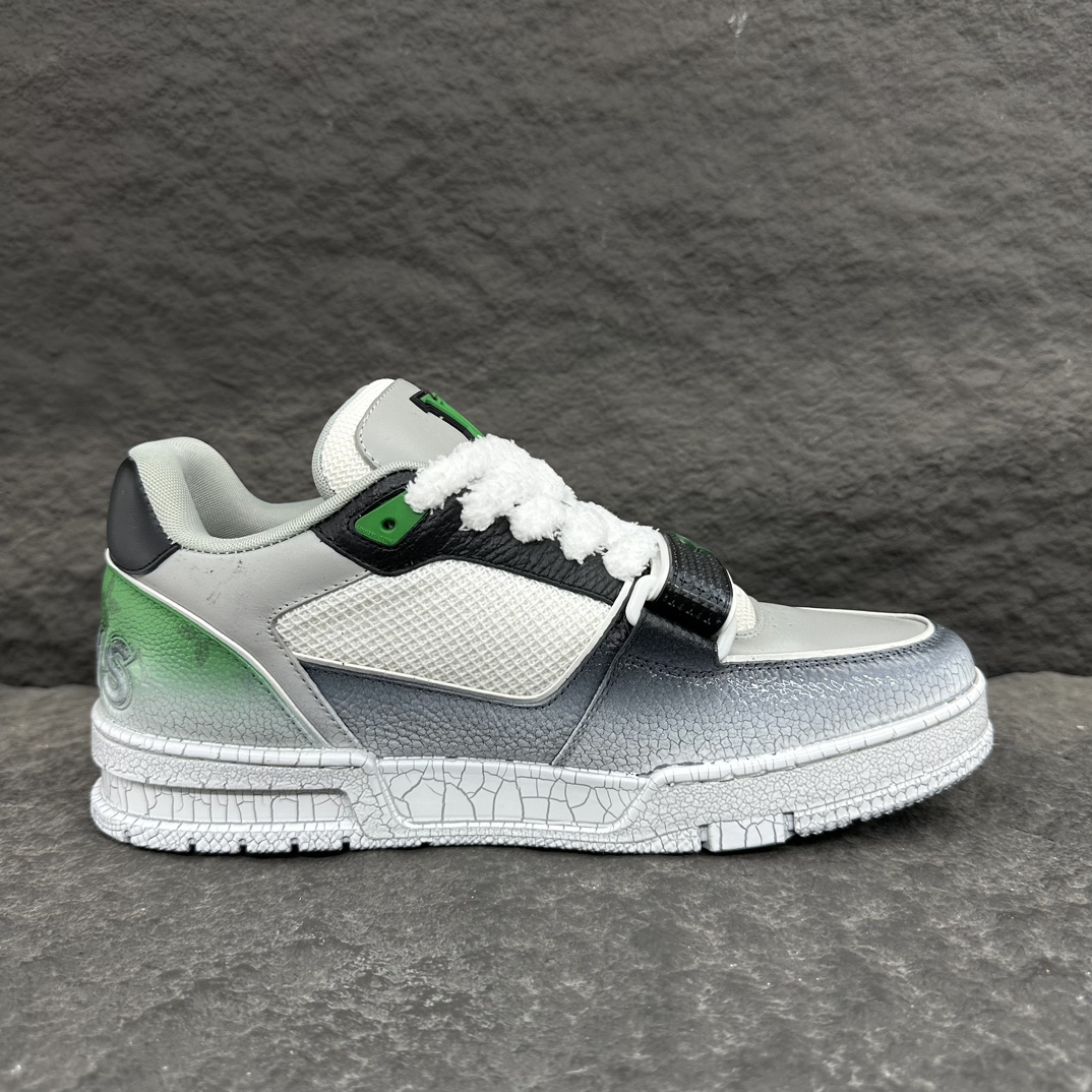 这款鞋子是AAAAA 1:1 质量 (非常棒). 使用了和原版一模一样的材料. 商标部分也保持了和路易威登/Louis Vuitton一样. 图片拍摄是实物鞋子拍摄, 您所收到的实物保证和我们图片一模一样.
