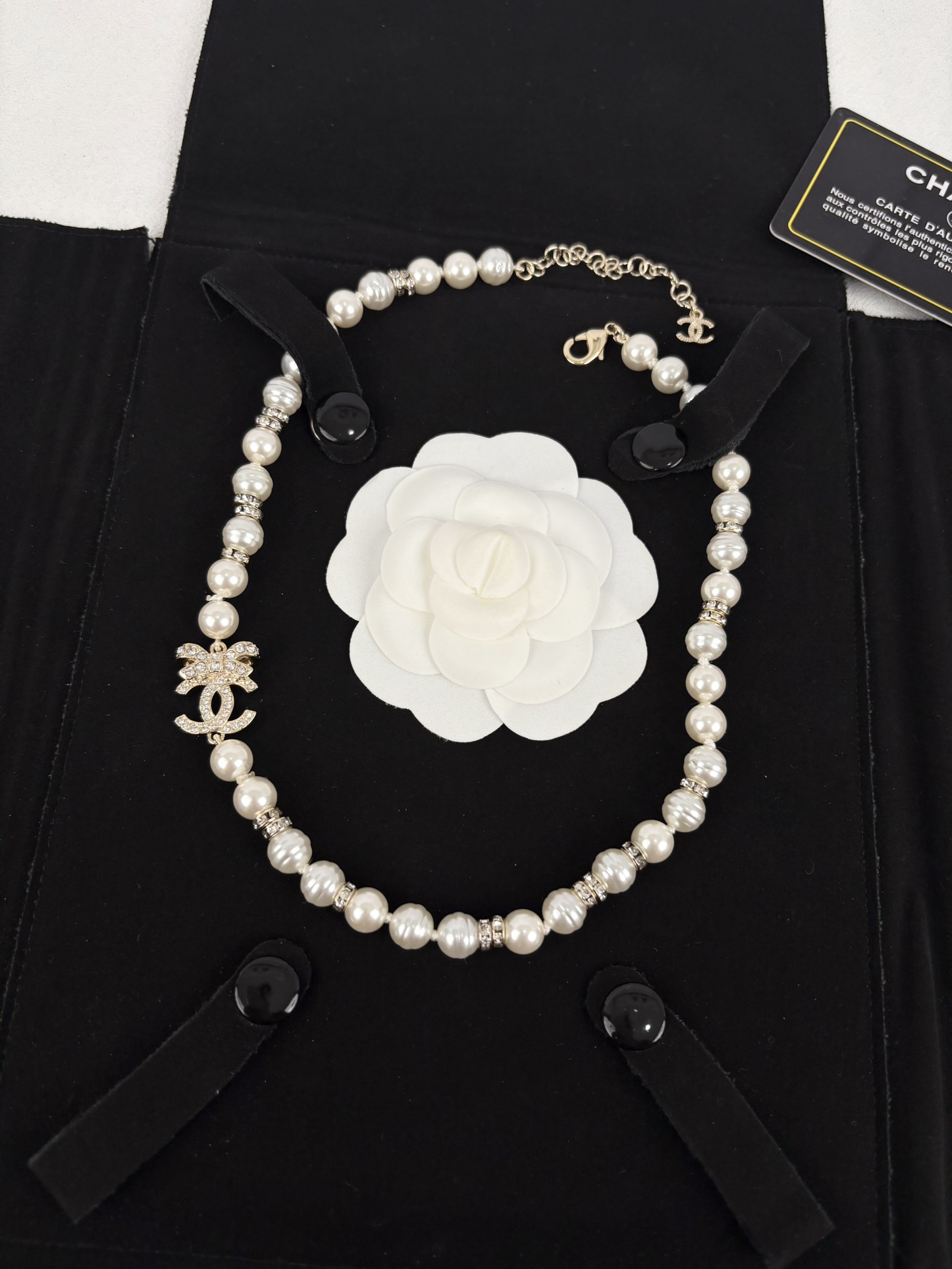 这款首饰是AAAAA 1:1 质量 (非常棒). 使用了和原版一模一样的材料. 商标部分也保持了和香奈儿/Chanel一样. 图片拍摄是实物首饰拍摄, 您所收到的实物保证和我们图片一模一样.