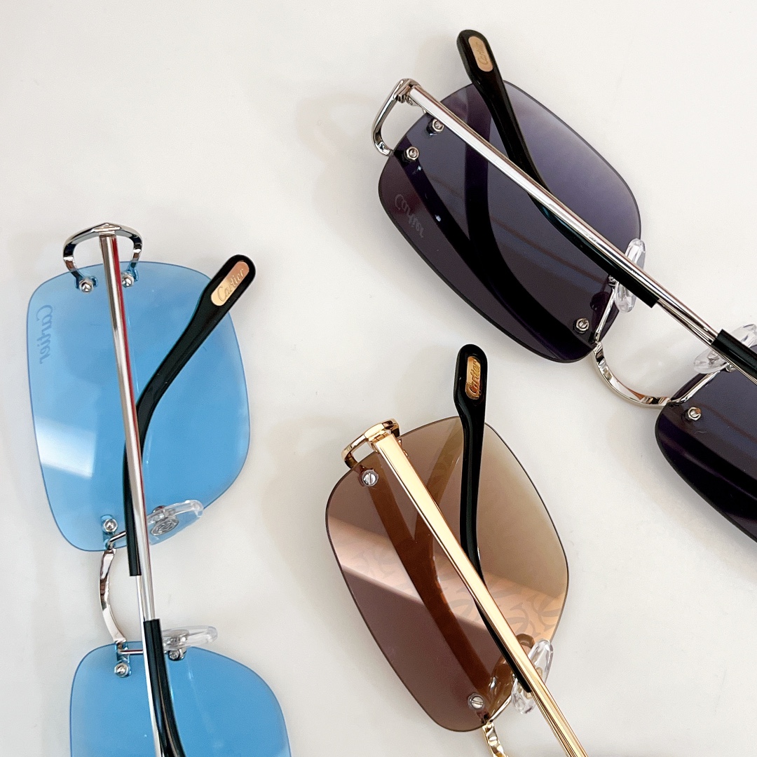 这款太阳眼镜是AAAAA 1:1 质量 (非常棒). 使用了和原版一模一样的材料. 商标部分也保持了和卡地亚/Cartier一样. 图片拍摄是实物太阳眼镜拍摄, 您所收到的实物保证和我们图片一模一样.