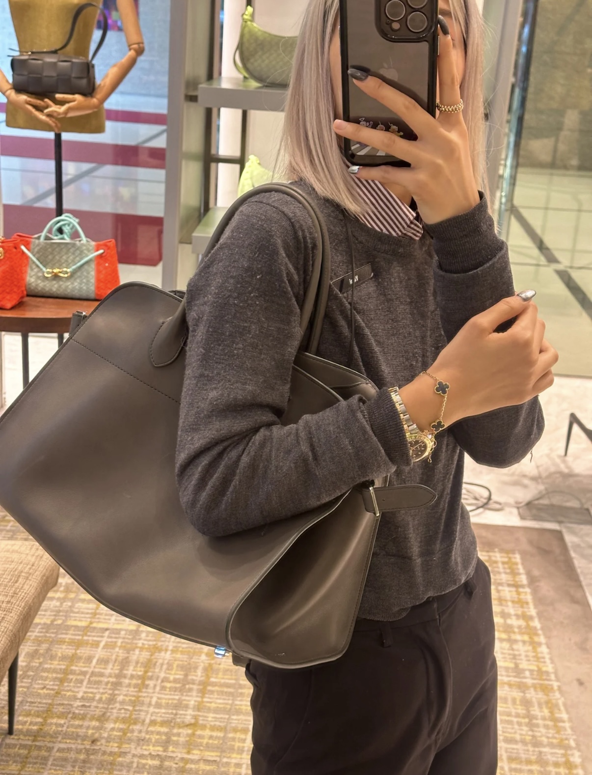 这款包包是AAAAA 1:1 质量 (非常棒). 使用了和原版一模一样的材料. 商标部分也保持了和The Row一样. 图片拍摄是实物包包拍摄, 您所收到的实物保证和我们图片一模一样.