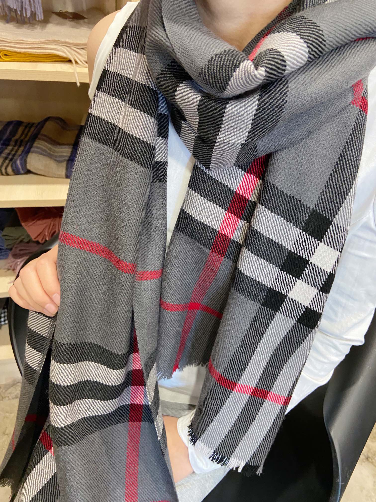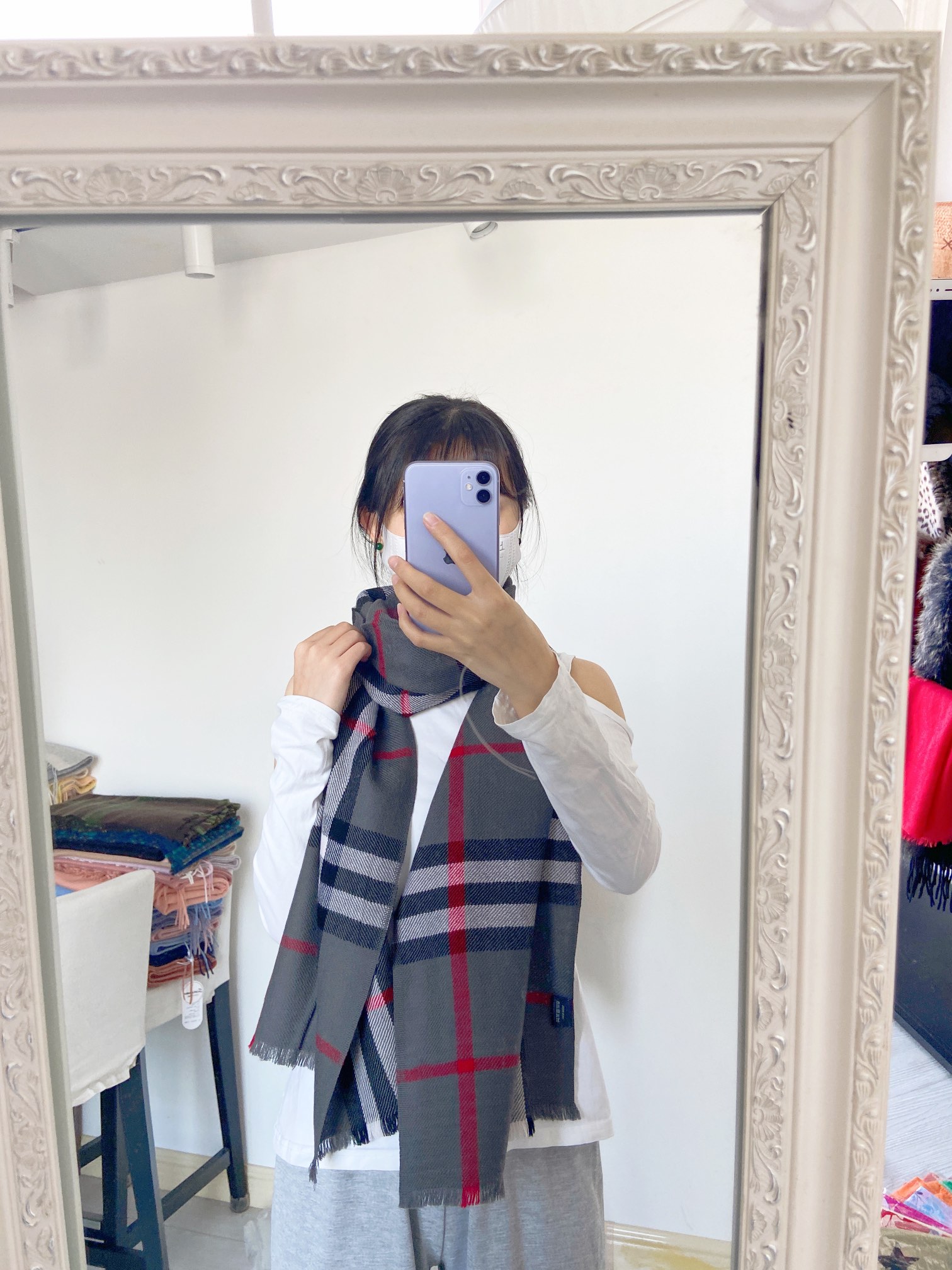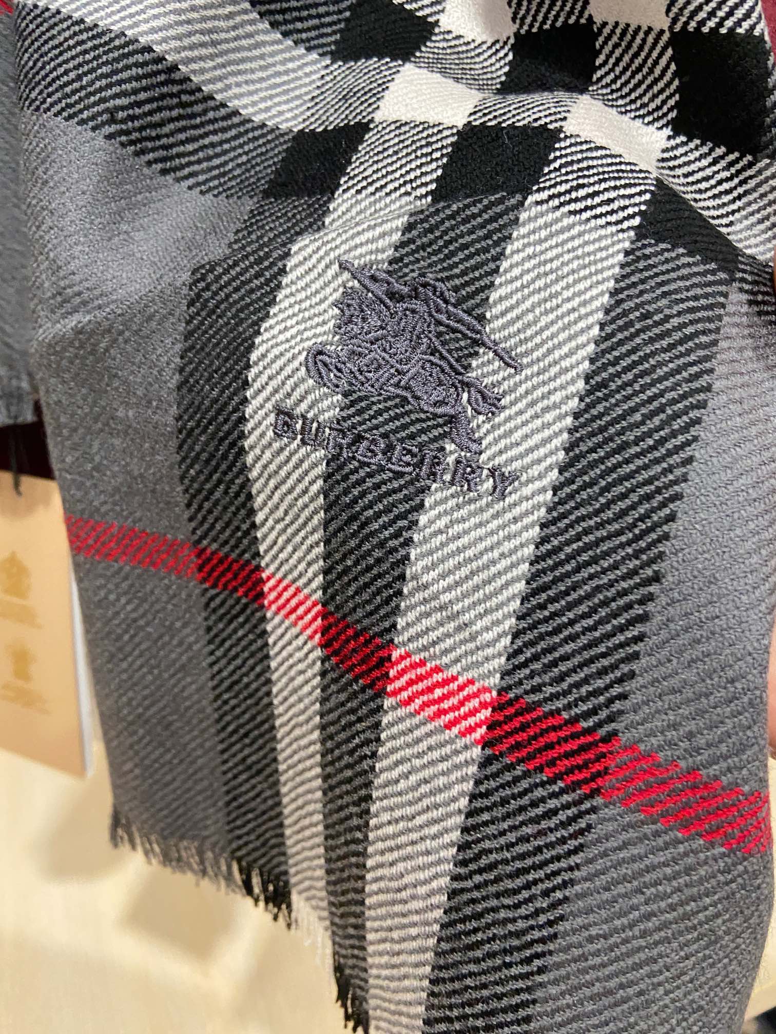 这款围巾是AAAAA 1:1 质量 (非常棒). 使用了和原版一模一样的材料. 商标部分也保持了和巴宝莉/Burberry一样. 图片拍摄是实物围巾拍摄, 您所收到的实物保证和我们图片一模一样.