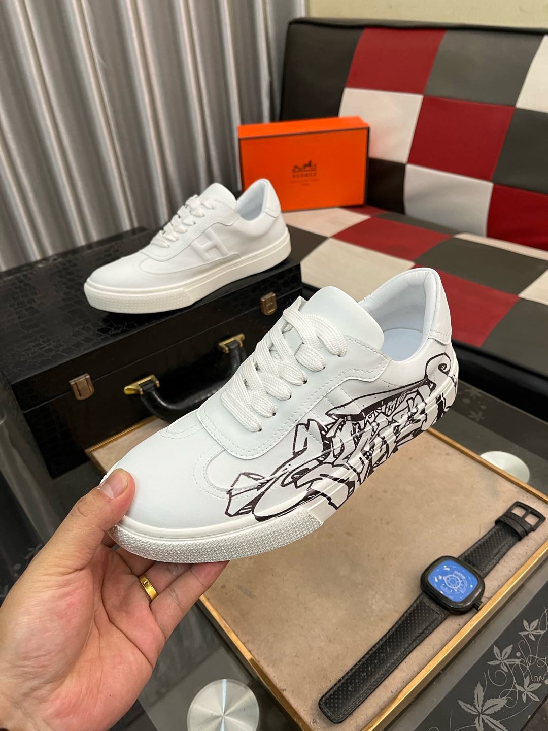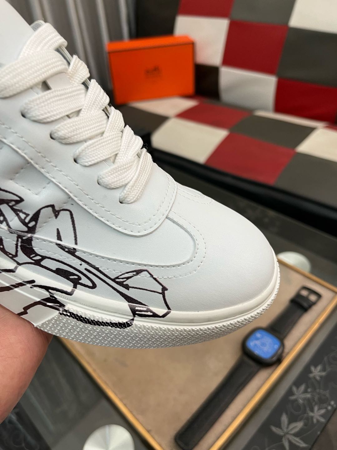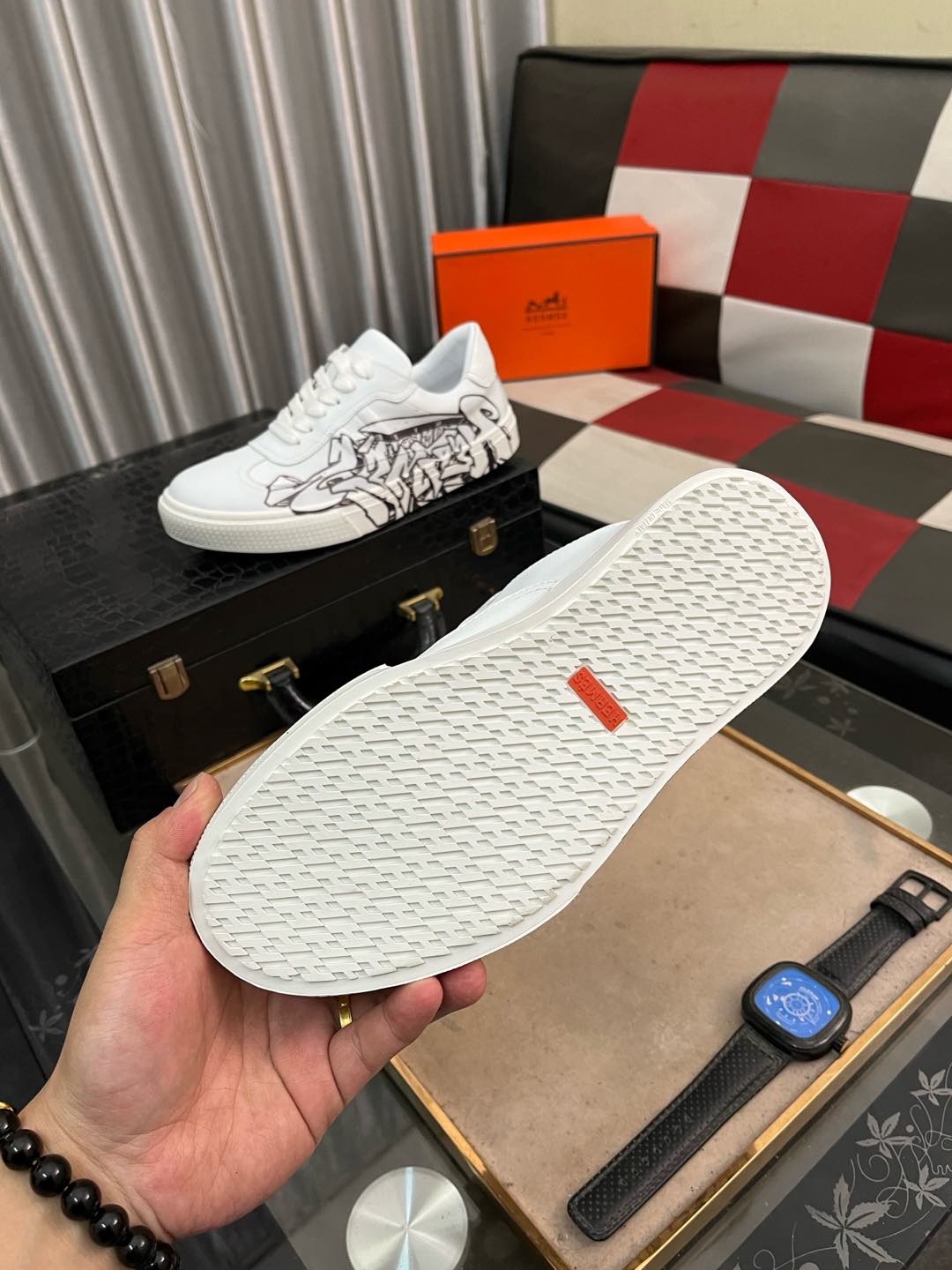 这款鞋子是AAAAA 1:1 质量 (非常棒). 使用了和原版一模一样的材料. 商标部分也保持了和爱马仕/Hermes一样. 图片拍摄是实物鞋子拍摄, 您所收到的实物保证和我们图片一模一样.