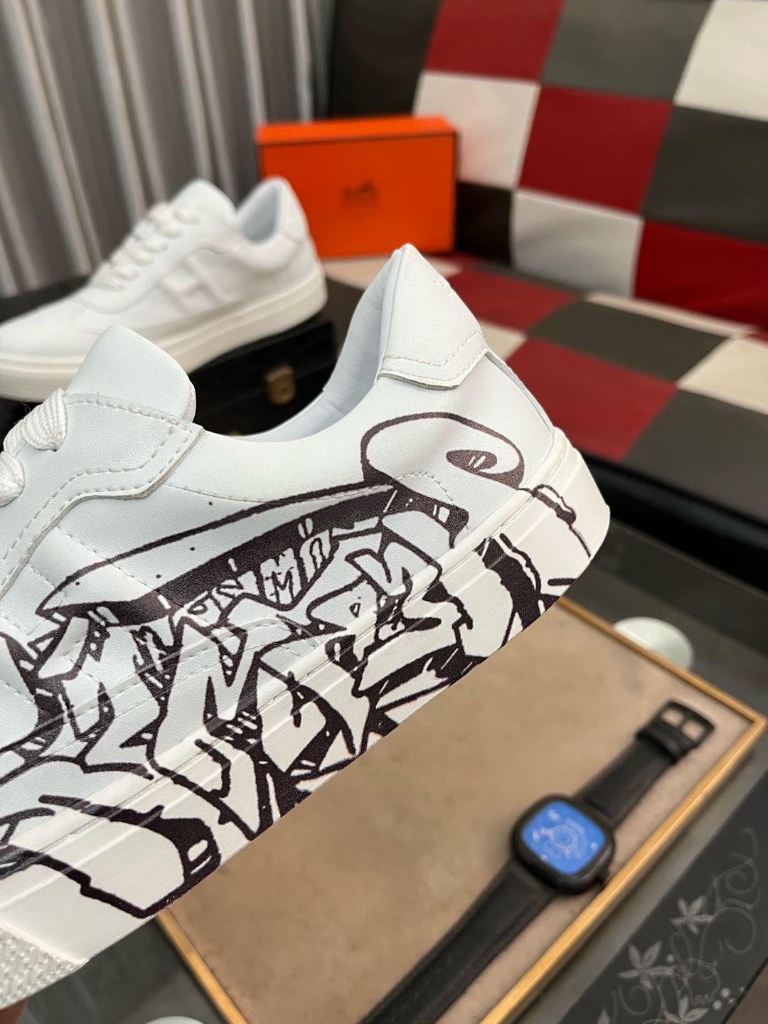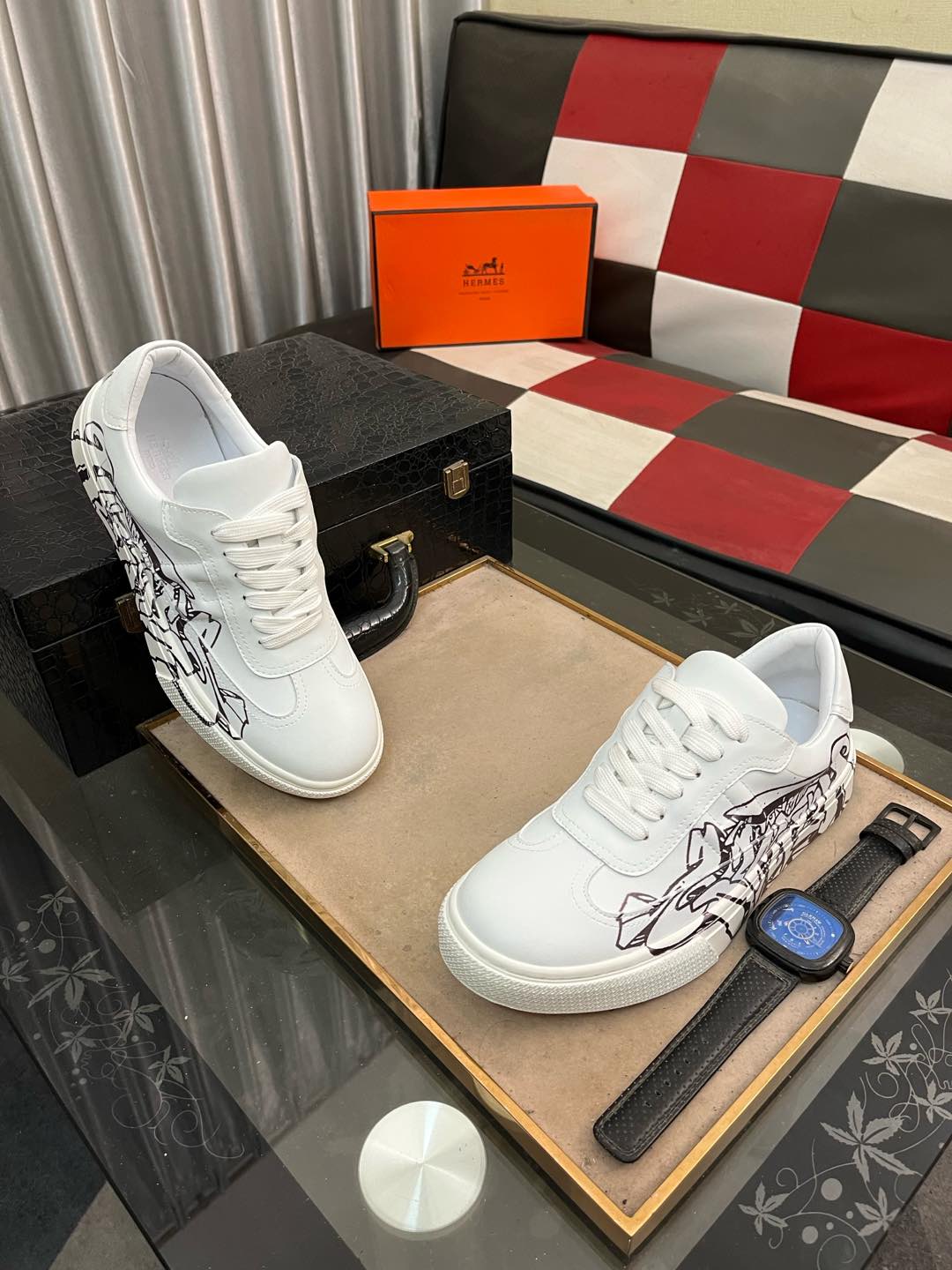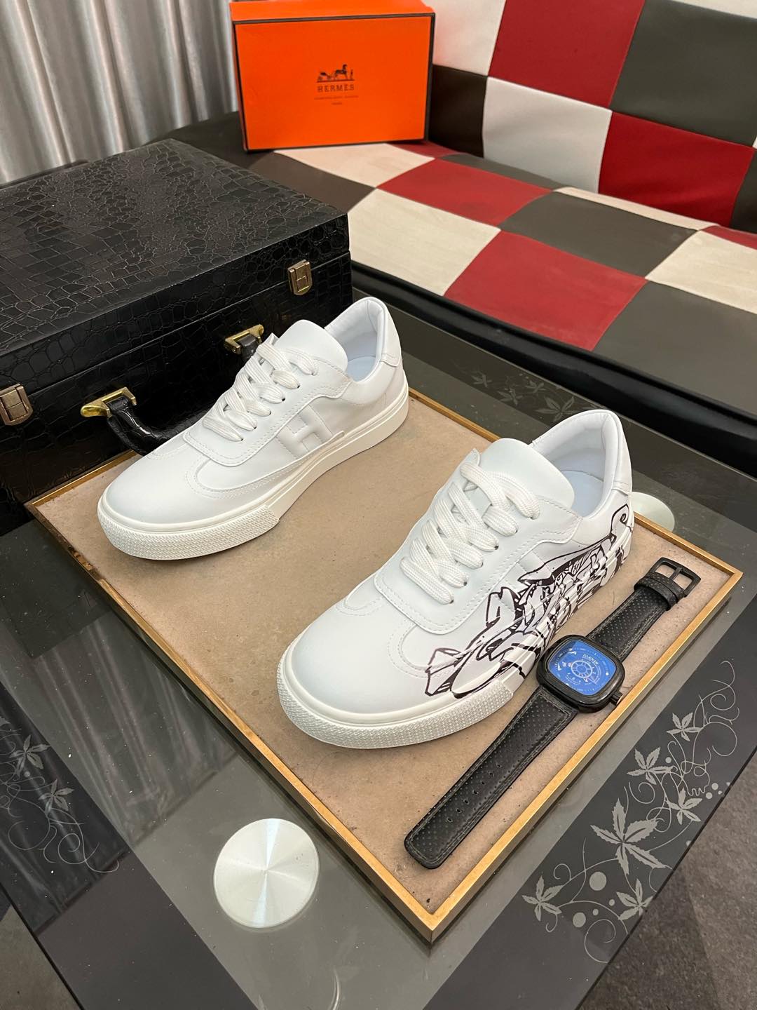 这款鞋子是AAAAA 1:1 质量 (非常棒). 使用了和原版一模一样的材料. 商标部分也保持了和爱马仕/Hermes一样. 图片拍摄是实物鞋子拍摄, 您所收到的实物保证和我们图片一模一样.