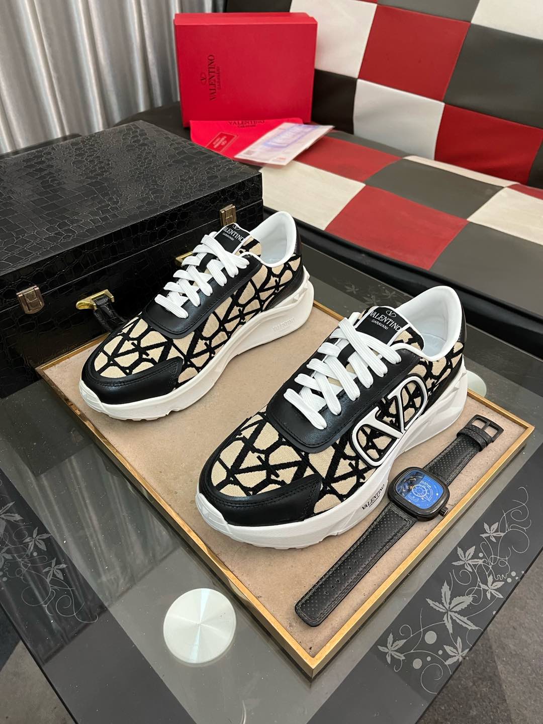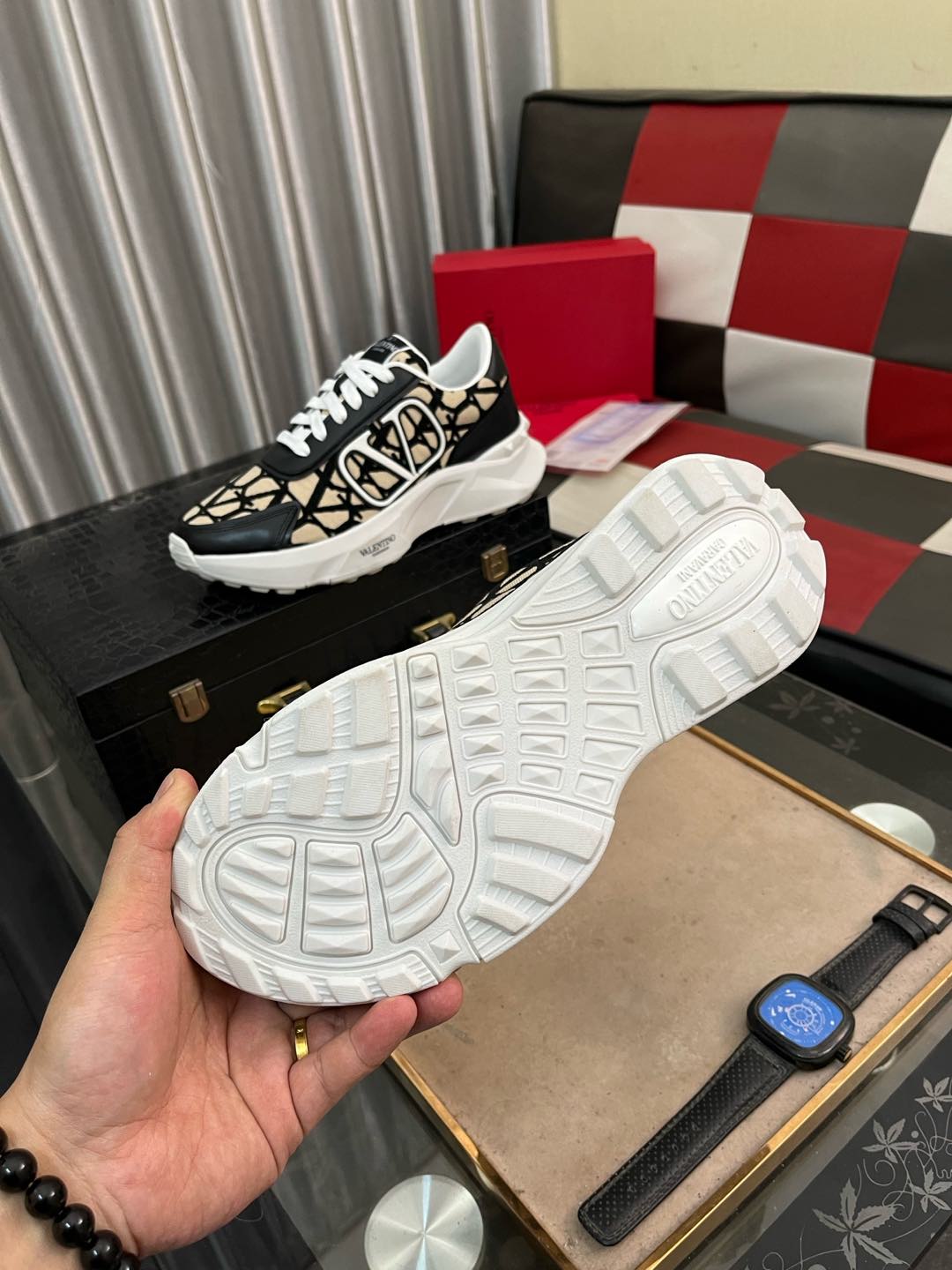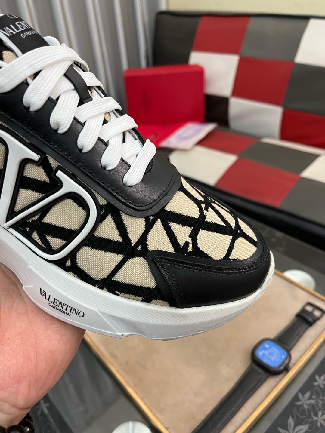 这款鞋子是AAAAA 1:1 质量 (非常棒). 使用了和原版一模一样的材料. 商标部分也保持了和华伦天奴/Valentino一样. 图片拍摄是实物鞋子拍摄, 您所收到的实物保证和我们图片一模一样.