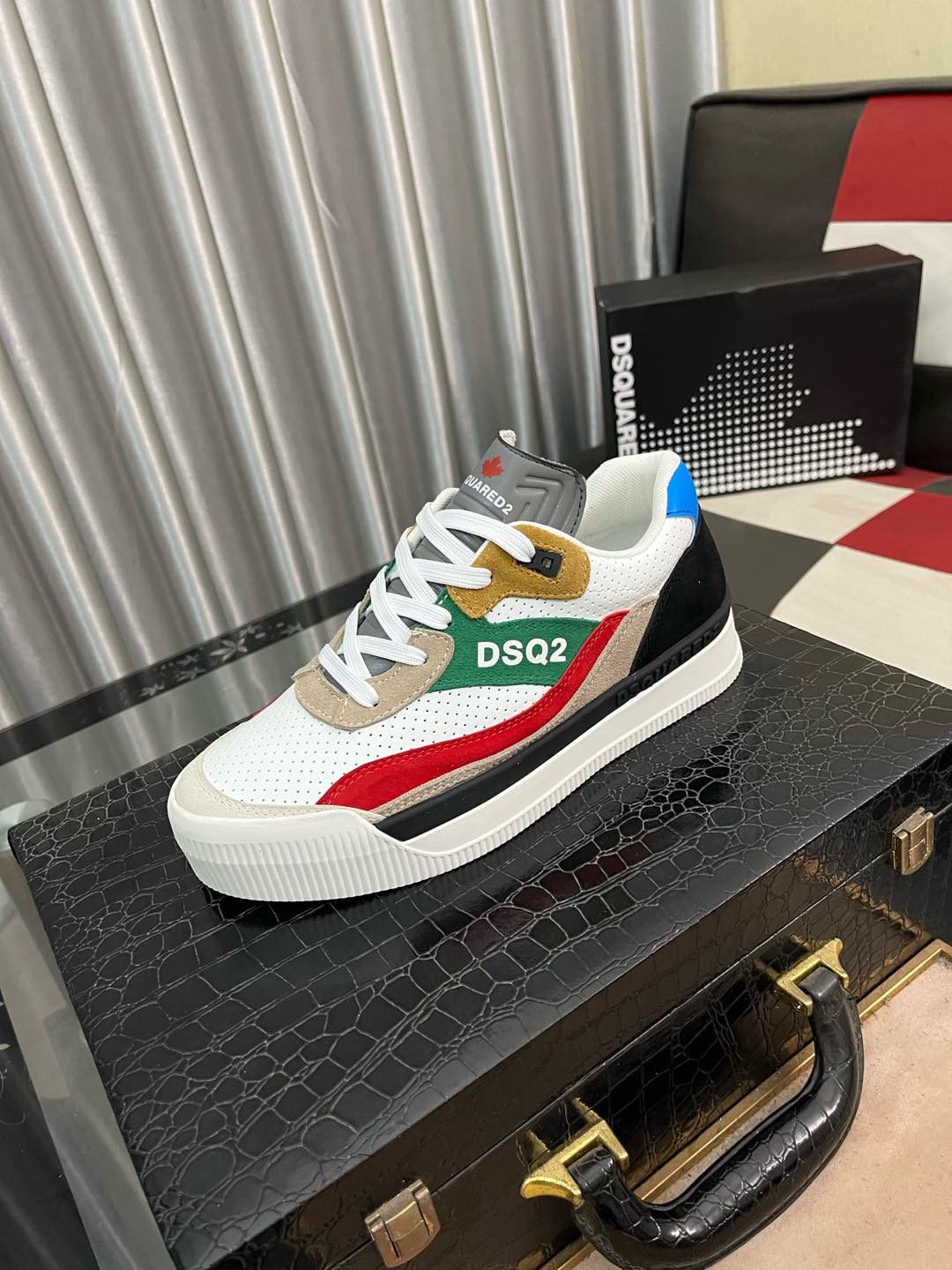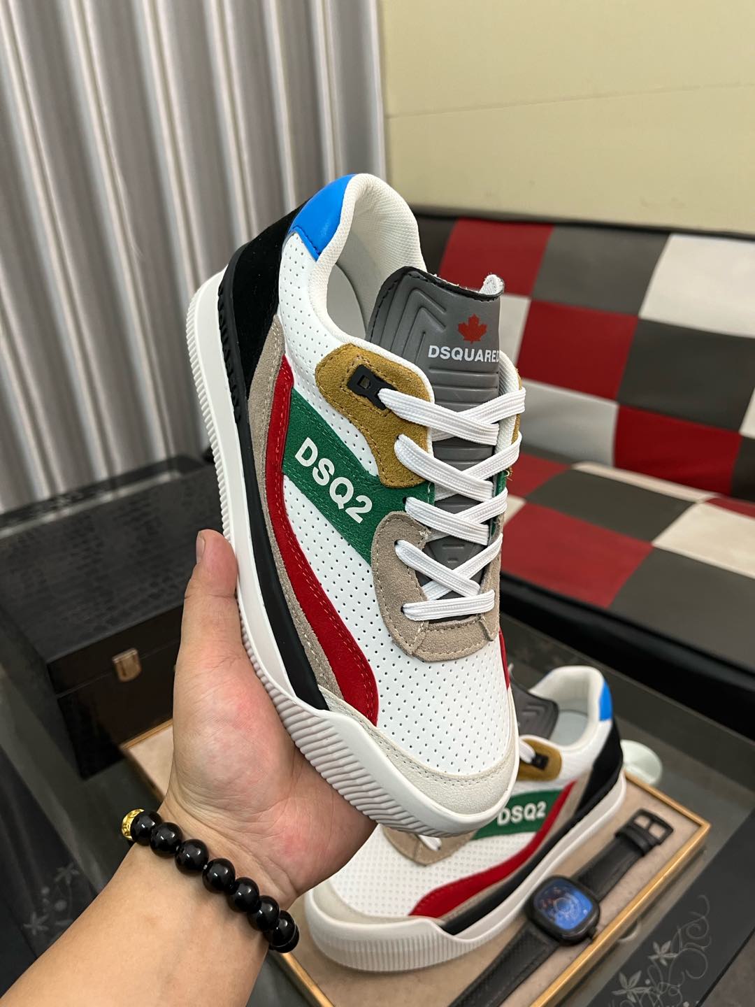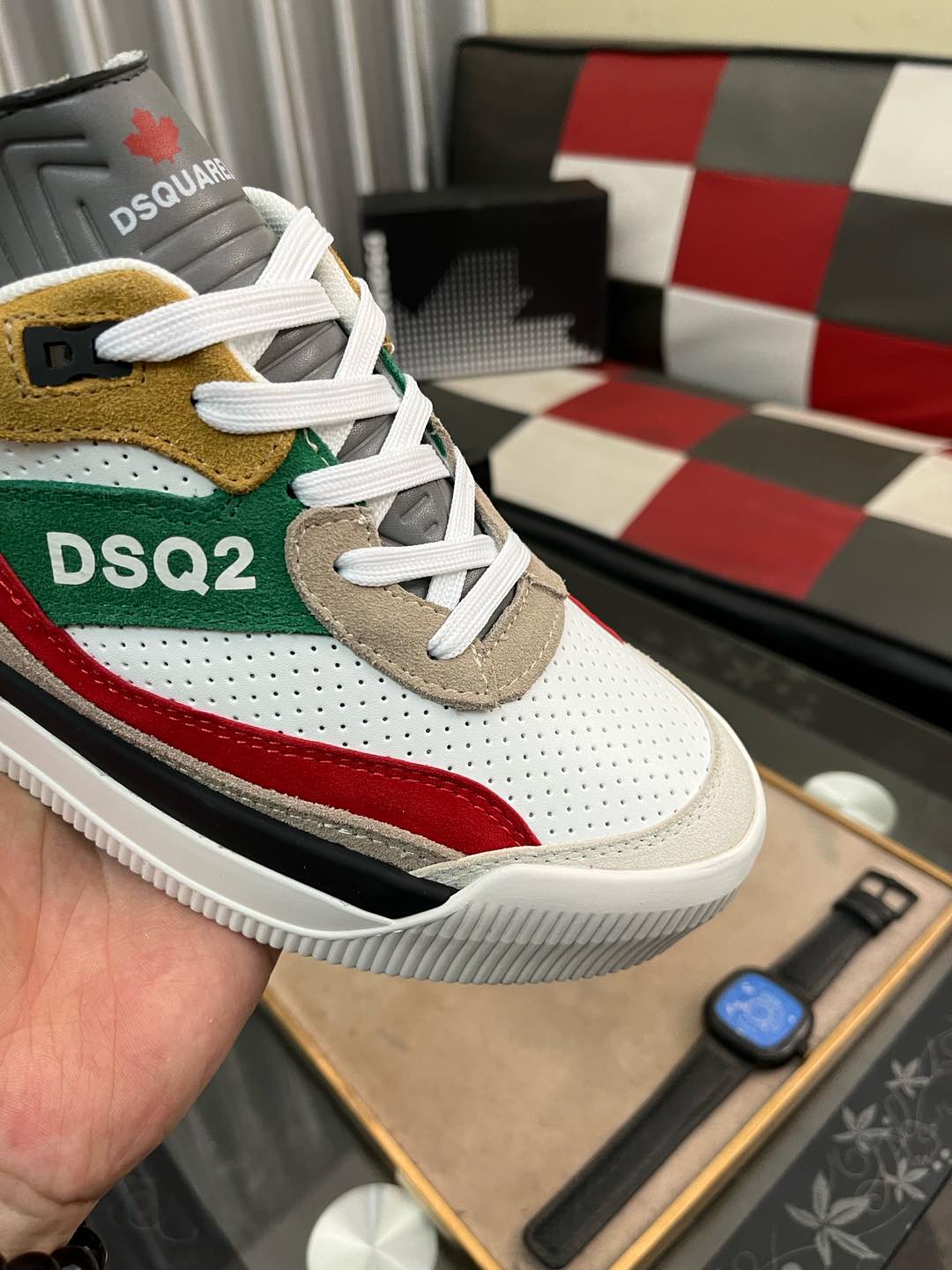 这款鞋子是AAAAA 1:1 质量 (非常棒). 使用了和原版一模一样的材料. 商标部分也保持了和DSQUARED2一样. 图片拍摄是实物鞋子拍摄, 您所收到的实物保证和我们图片一模一样.
