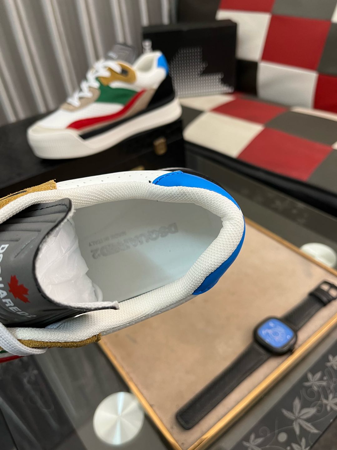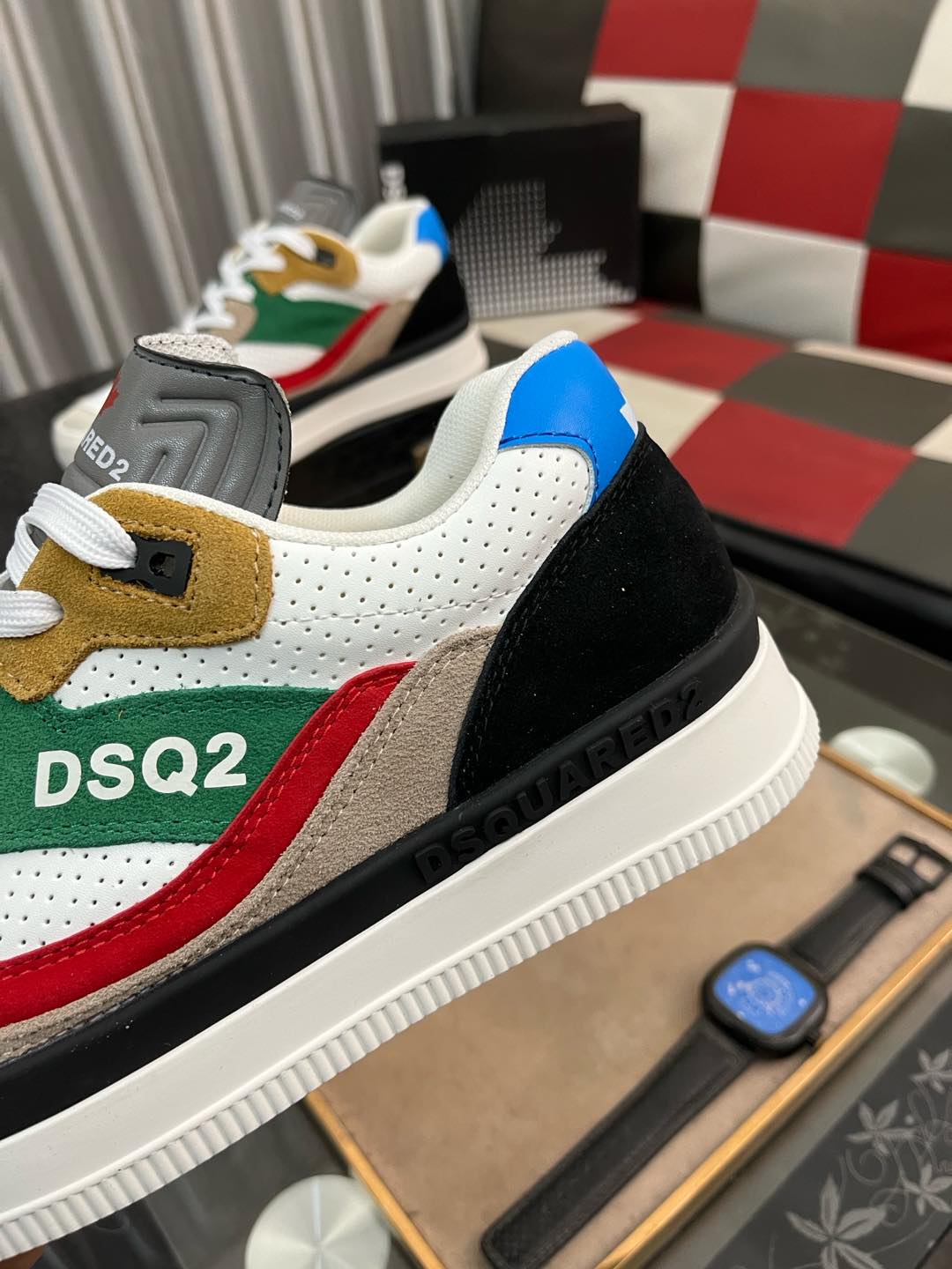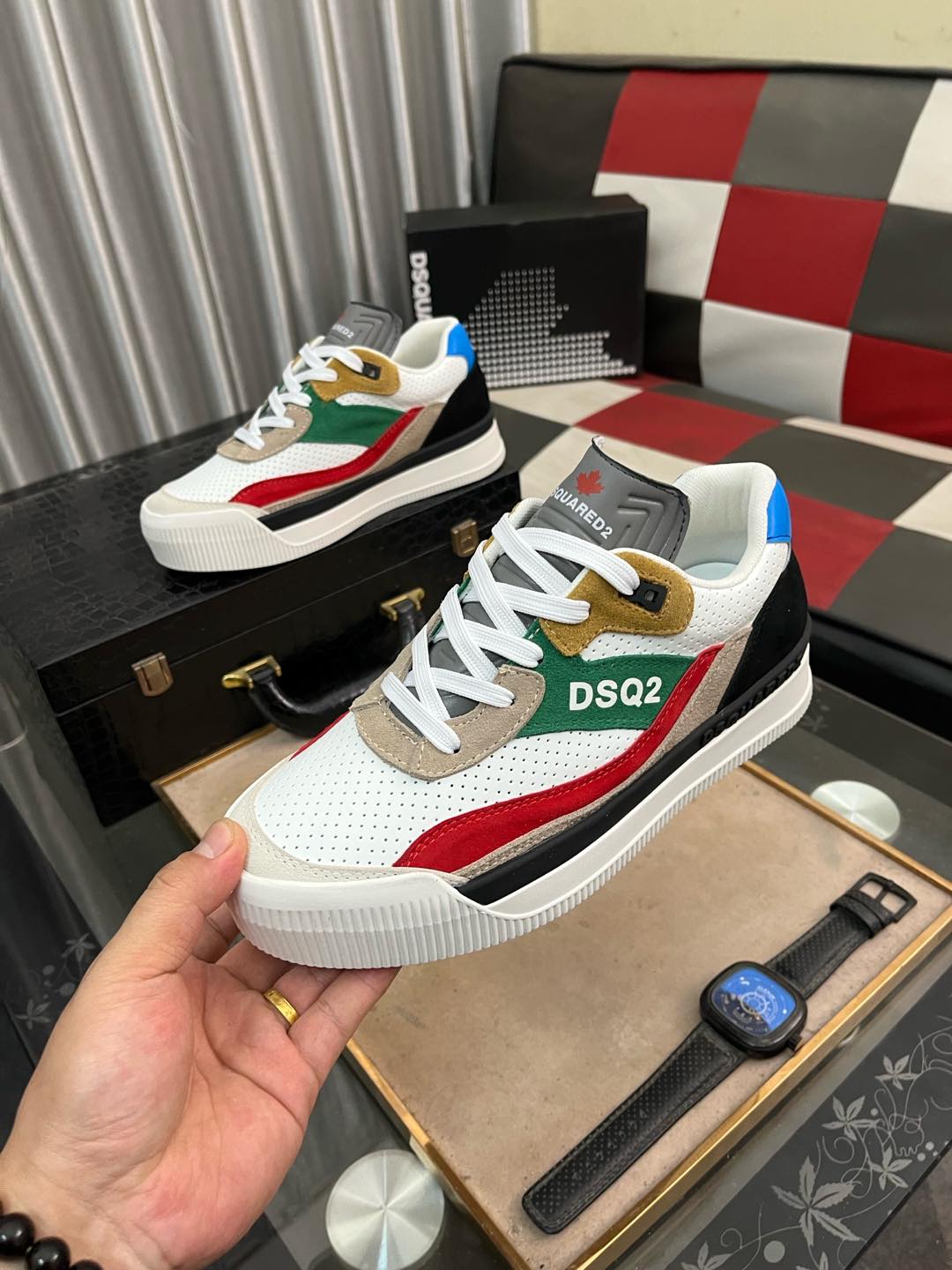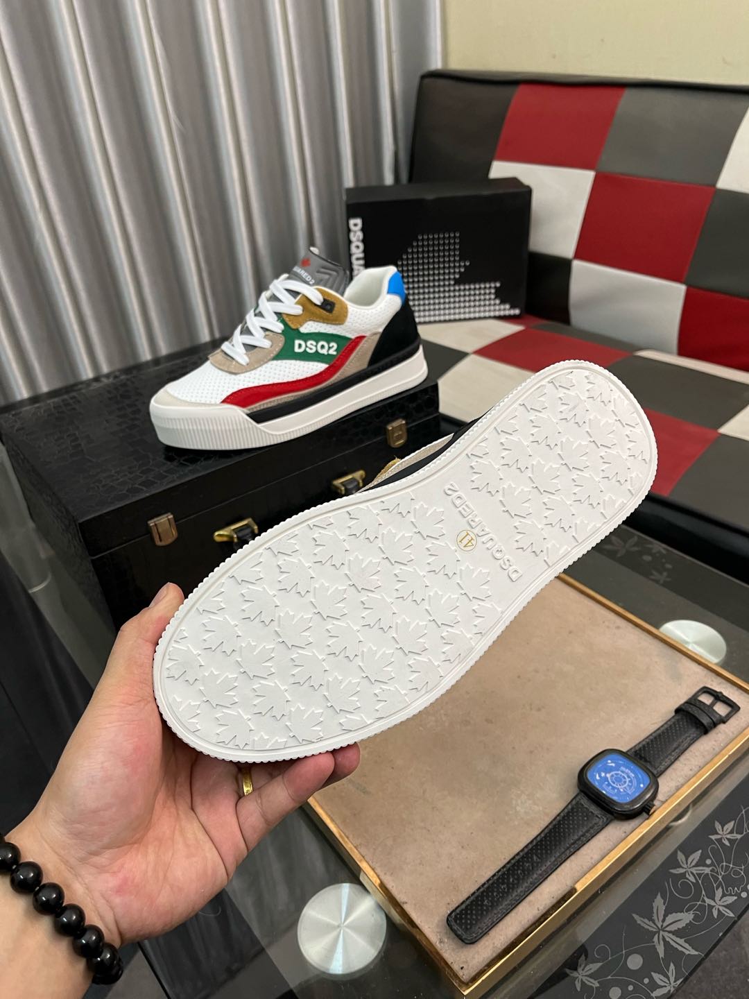 这款鞋子是AAAAA 1:1 质量 (非常棒). 使用了和原版一模一样的材料. 商标部分也保持了和DSQUARED2一样. 图片拍摄是实物鞋子拍摄, 您所收到的实物保证和我们图片一模一样.