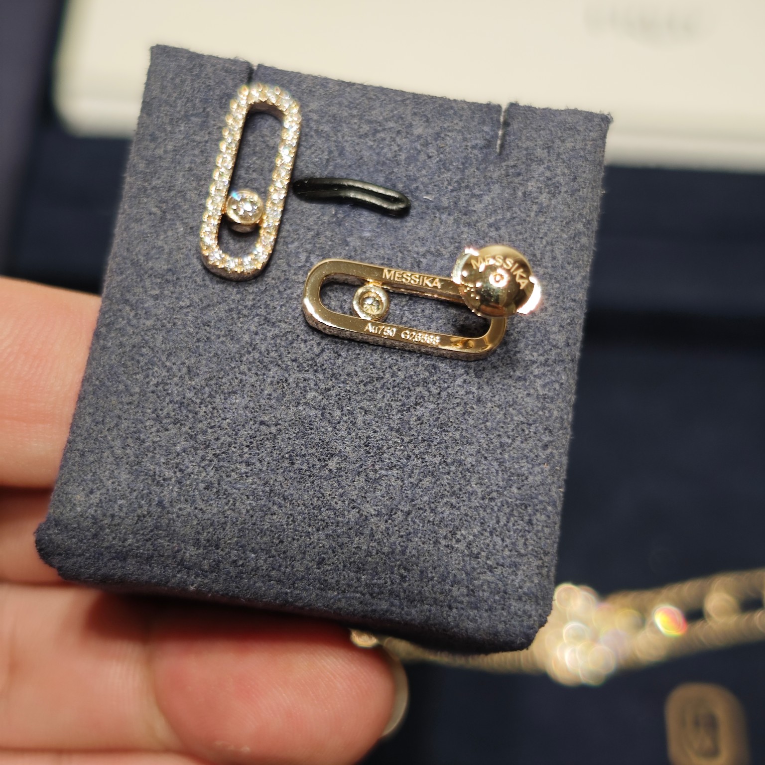这款首饰是AAAAA 1:1 质量 (非常棒). 使用了和原版一模一样的材料. 商标部分也保持了和梅西卡/Messika一样. 图片拍摄是实物首饰拍摄, 您所收到的实物保证和我们图片一模一样.
