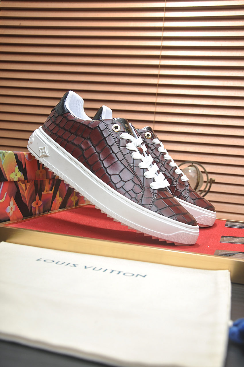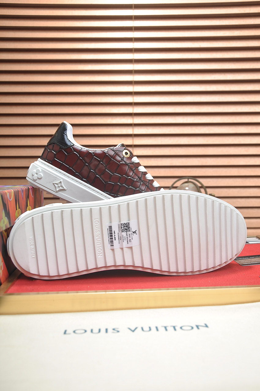 这款鞋子是AAAAA 1:1 质量 (非常棒). 使用了和原版一模一样的材料. 商标部分也保持了和路易威登/Louis Vuitton一样. 图片拍摄是实物鞋子拍摄, 您所收到的实物保证和我们图片一模一样.