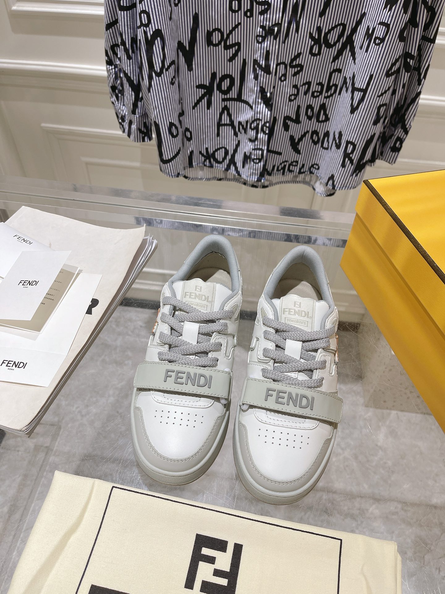 这款鞋子是AAAAA 1:1 质量 (非常棒). 使用了和原版一模一样的材料. 商标部分也保持了和芬迪/Fendi一样. 图片拍摄是实物鞋子拍摄, 您所收到的实物保证和我们图片一模一样.