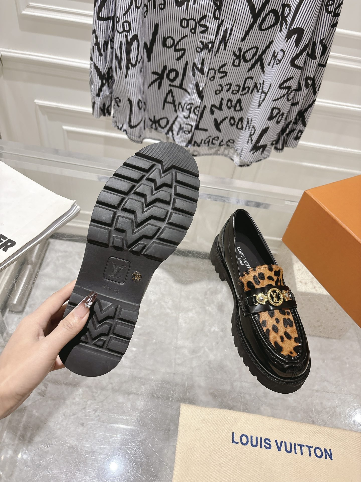 这款鞋子是AAAAA 1:1 质量 (非常棒). 使用了和原版一模一样的材料. 商标部分也保持了和路易威登/Louis Vuitton一样. 图片拍摄是实物鞋子拍摄, 您所收到的实物保证和我们图片一模一样.