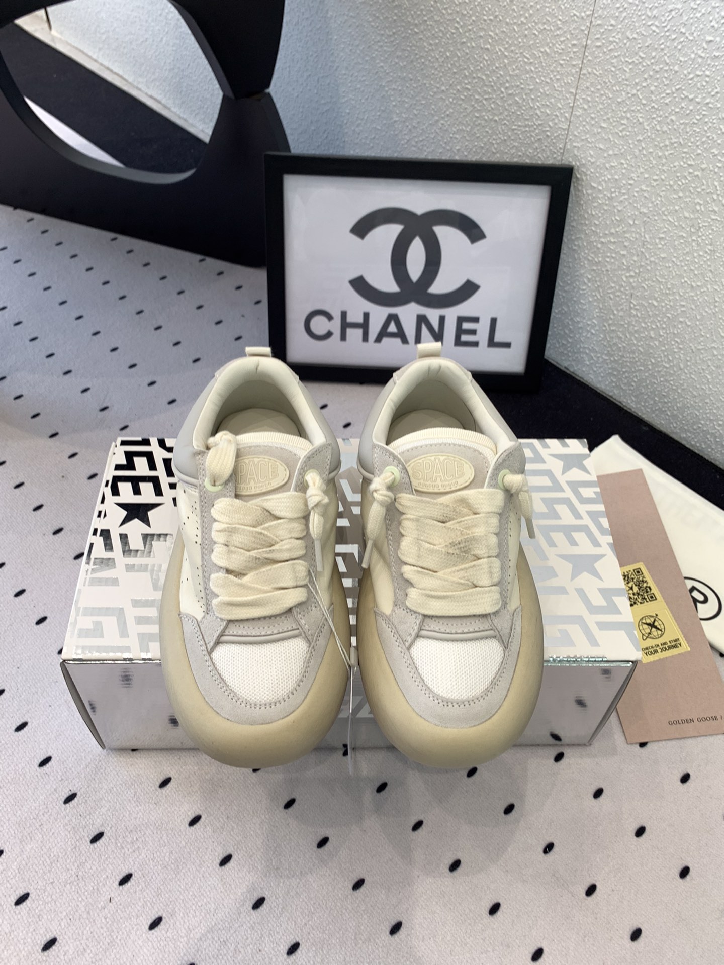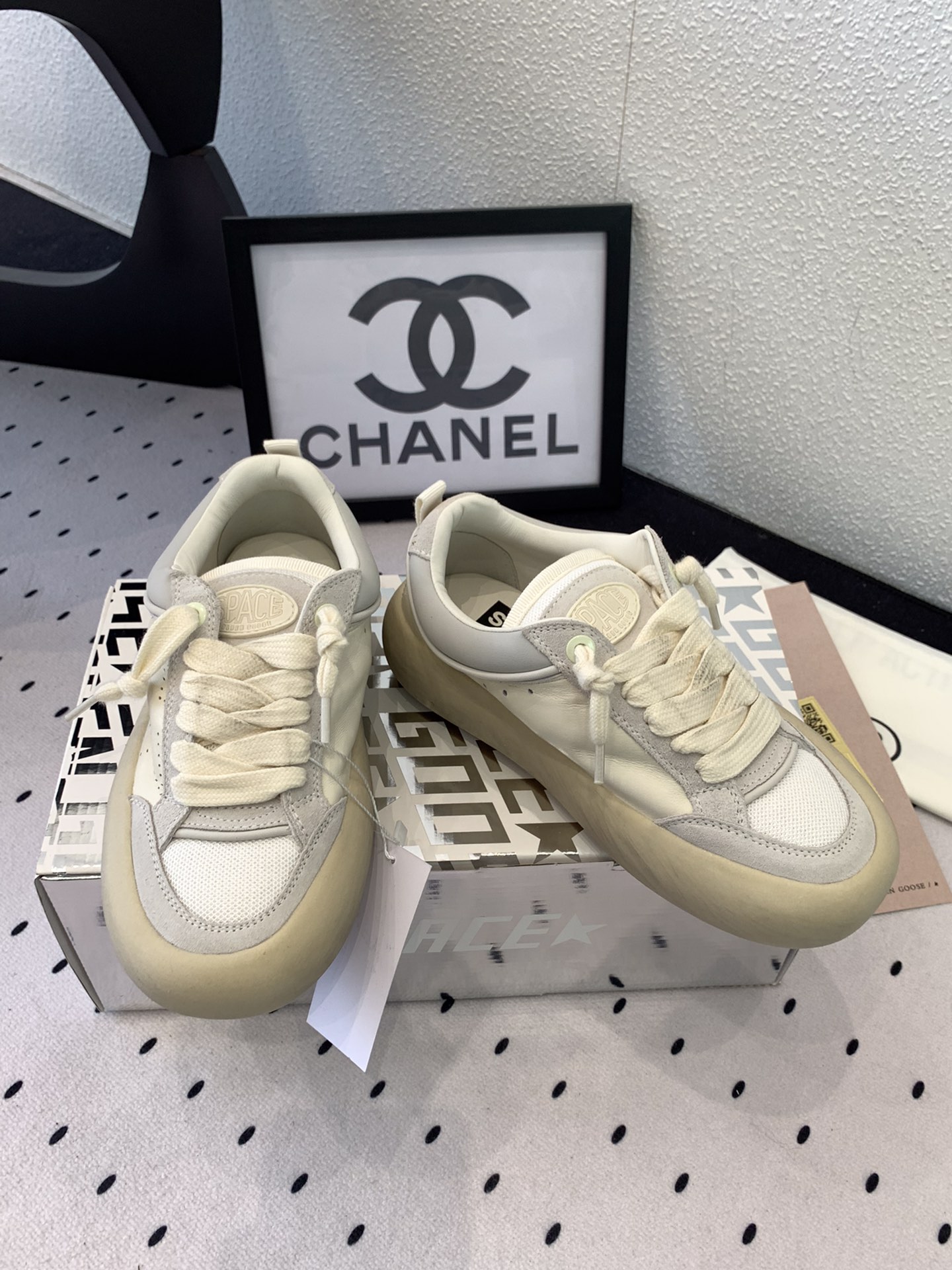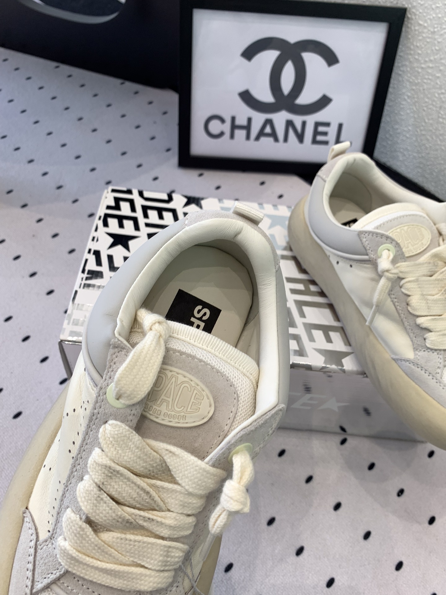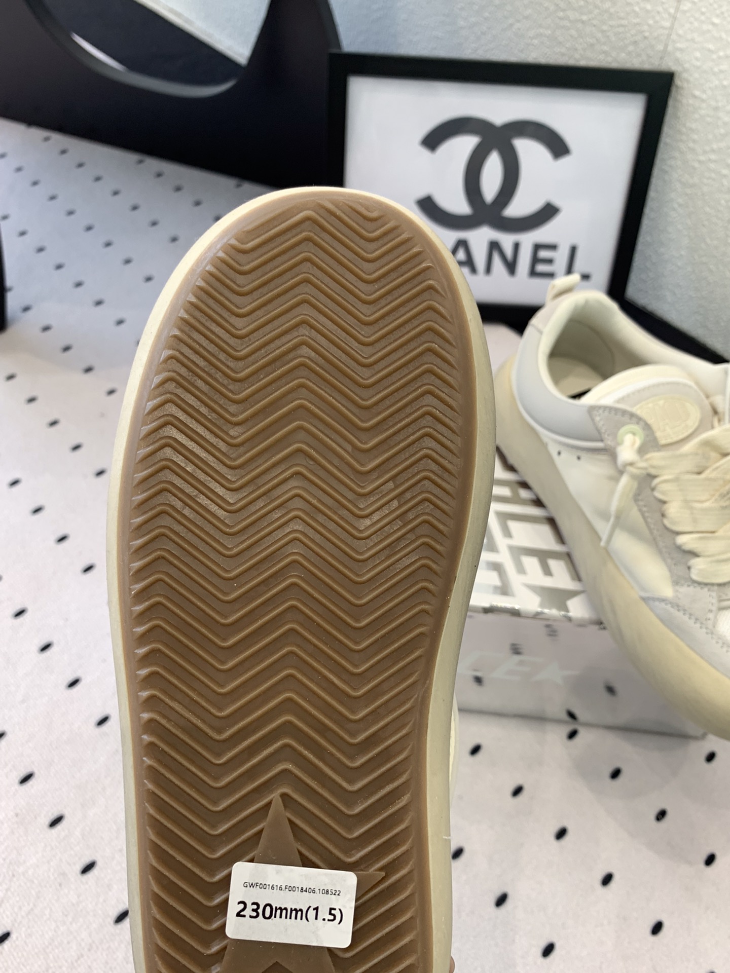 这款鞋子是AAAAA 1:1 质量 (非常棒). 使用了和原版一模一样的材料. 商标部分也保持了和Golden Goose一样. 图片拍摄是实物鞋子拍摄, 您所收到的实物保证和我们图片一模一样.