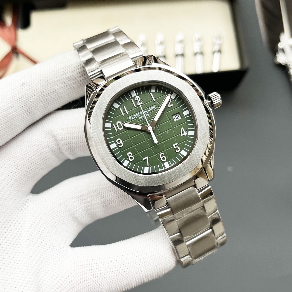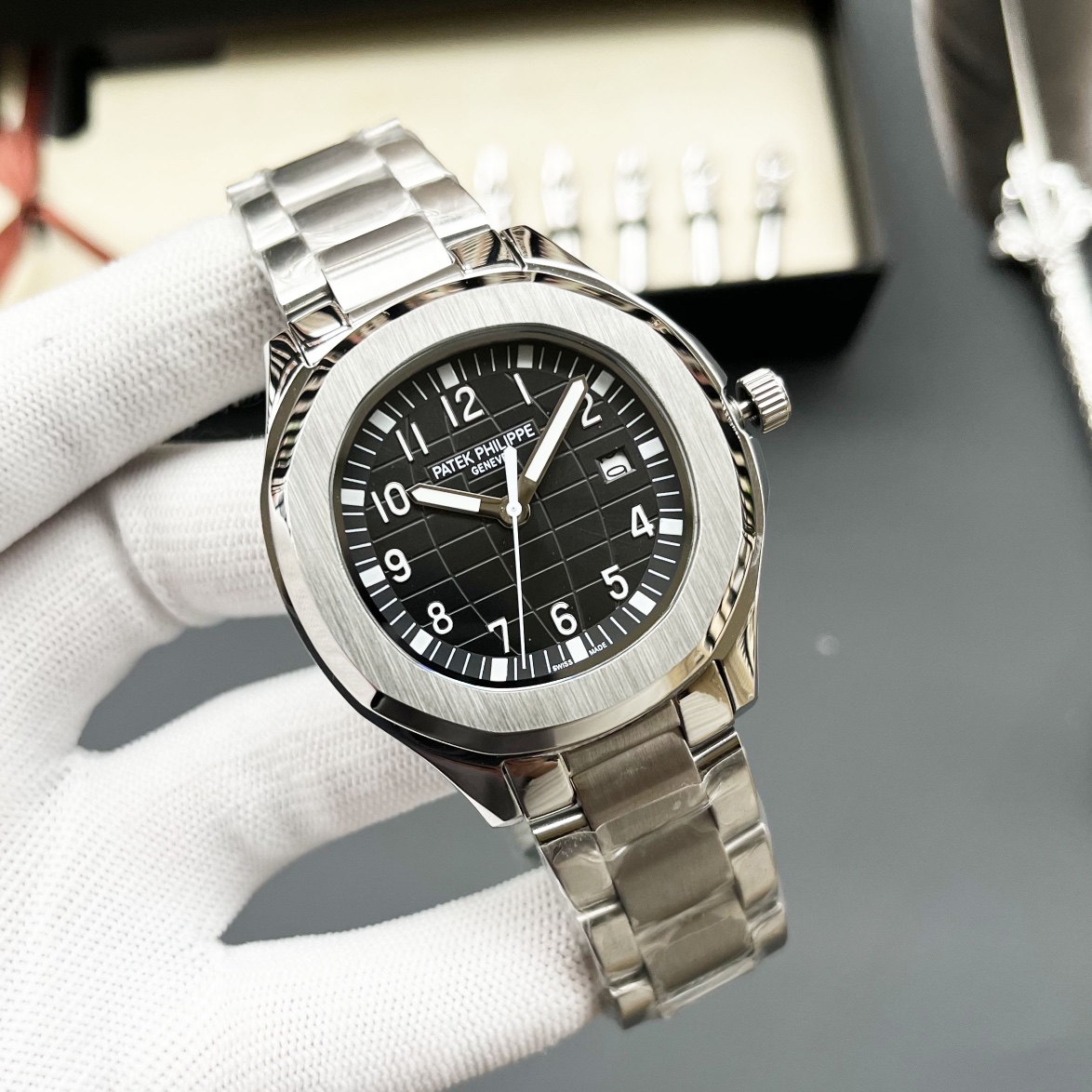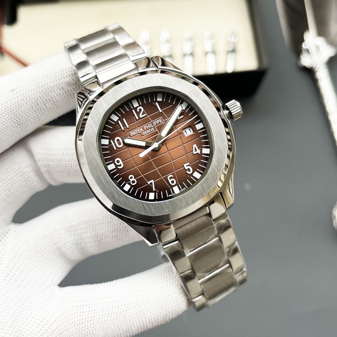 这款手表是AAAAA 1:1 质量 (非常棒). 使用了和原版一模一样的材料. 商标部分也保持了和一样. 图片拍摄是实物手表拍摄, 您所收到的实物保证和我们图片一模一样.