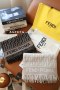 这款围巾是AAAAA 1:1 质量 (非常棒). 使用了和原版一模一样的材料. 商标部分也保持了和芬迪/Fendi一样. 图片拍摄是实物围巾拍摄, 您所收到的实物保证和我们图片一模一样.