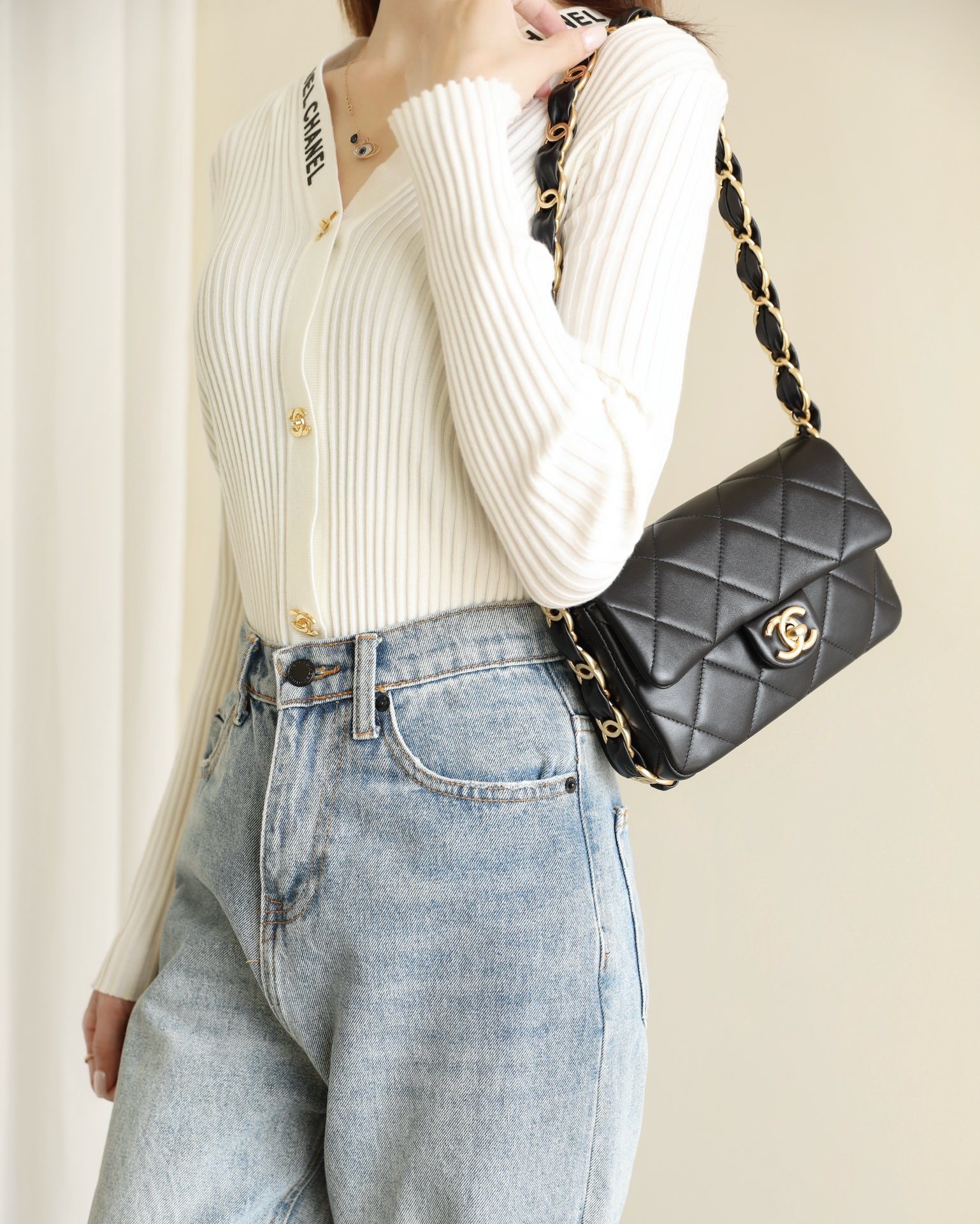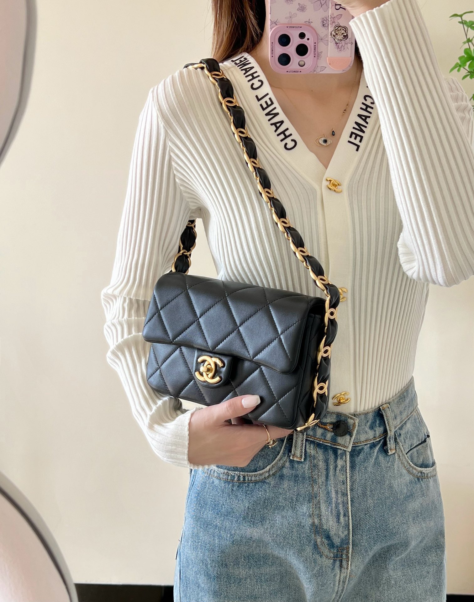 这款包包是AAAAA 1:1 质量 (非常棒). 使用了和原版一模一样的材料. 商标部分也保持了和香奈儿/Chanel一样. 图片拍摄是实物包包拍摄, 您所收到的实物保证和我们图片一模一样.