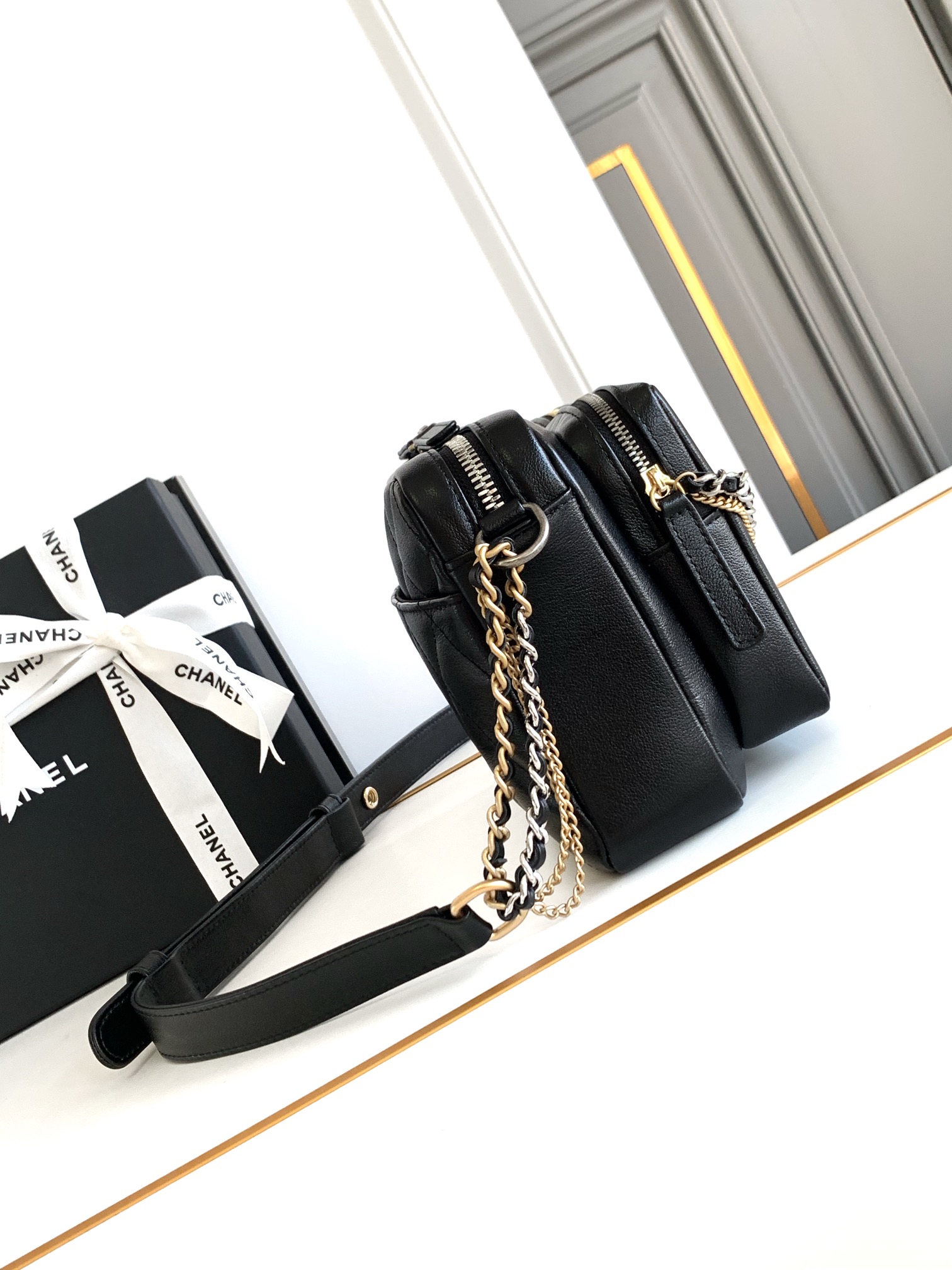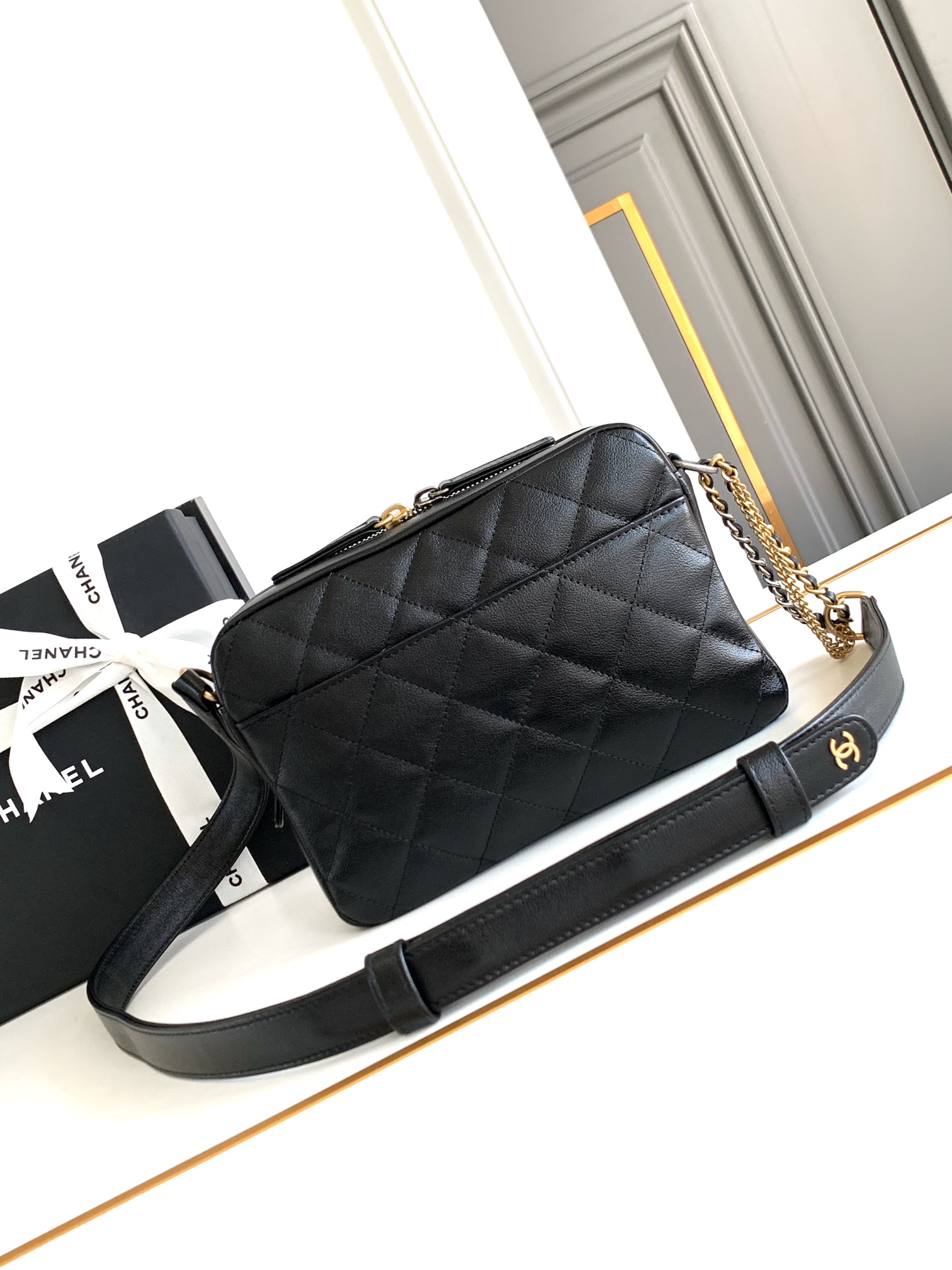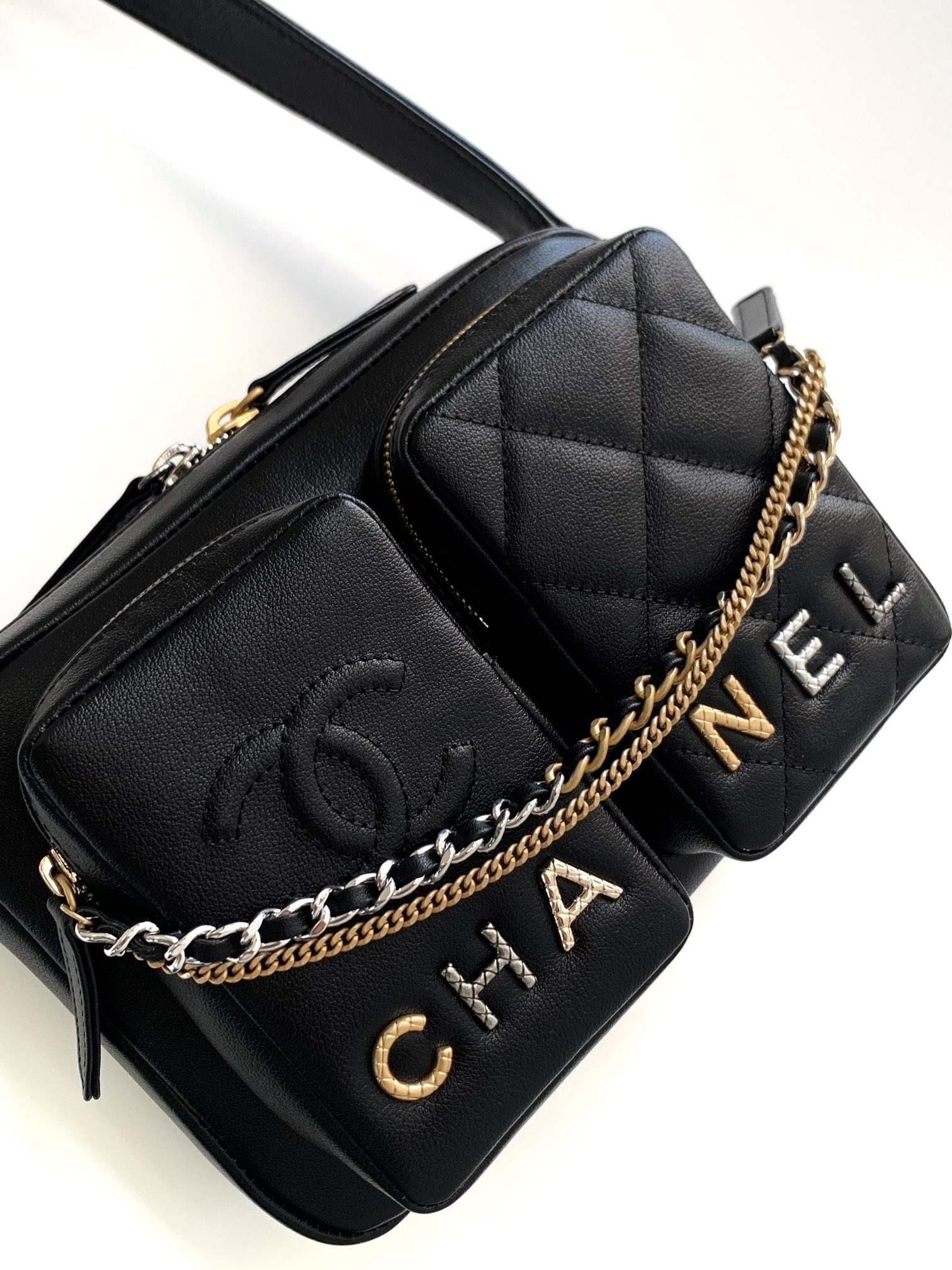 这款包包是AAAAA 1:1 质量 (非常棒). 使用了和原版一模一样的材料. 商标部分也保持了和香奈儿/Chanel一样. 图片拍摄是实物包包拍摄, 您所收到的实物保证和我们图片一模一样.
