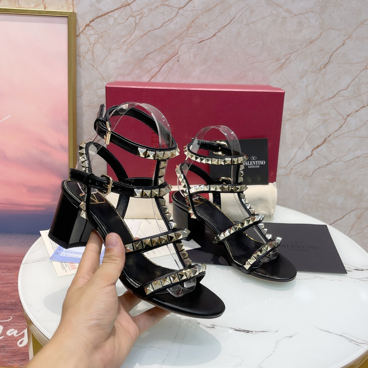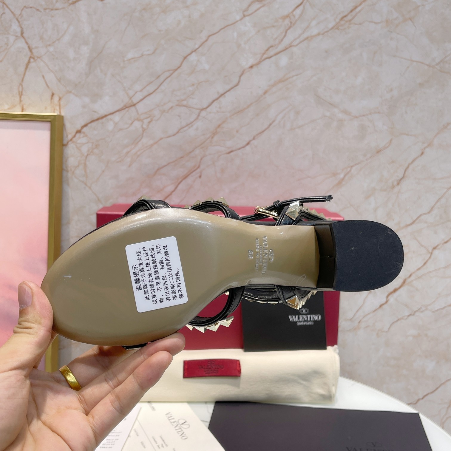 这款鞋子是AAAAA 1:1 质量 (非常棒). 使用了和原版一模一样的材料. 商标部分也保持了和华伦天奴/Valentino一样. 图片拍摄是实物鞋子拍摄, 您所收到的实物保证和我们图片一模一样.