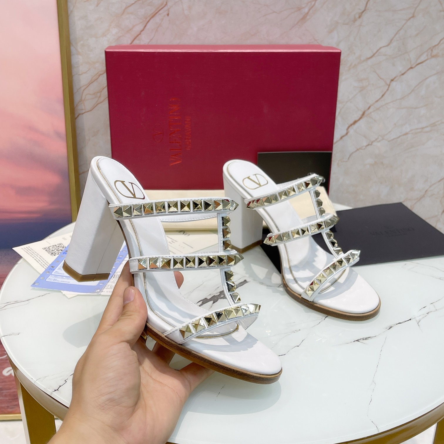 这款鞋子是AAAAA 1:1 质量 (非常棒). 使用了和原版一模一样的材料. 商标部分也保持了和华伦天奴/Valentino一样. 图片拍摄是实物鞋子拍摄, 您所收到的实物保证和我们图片一模一样.