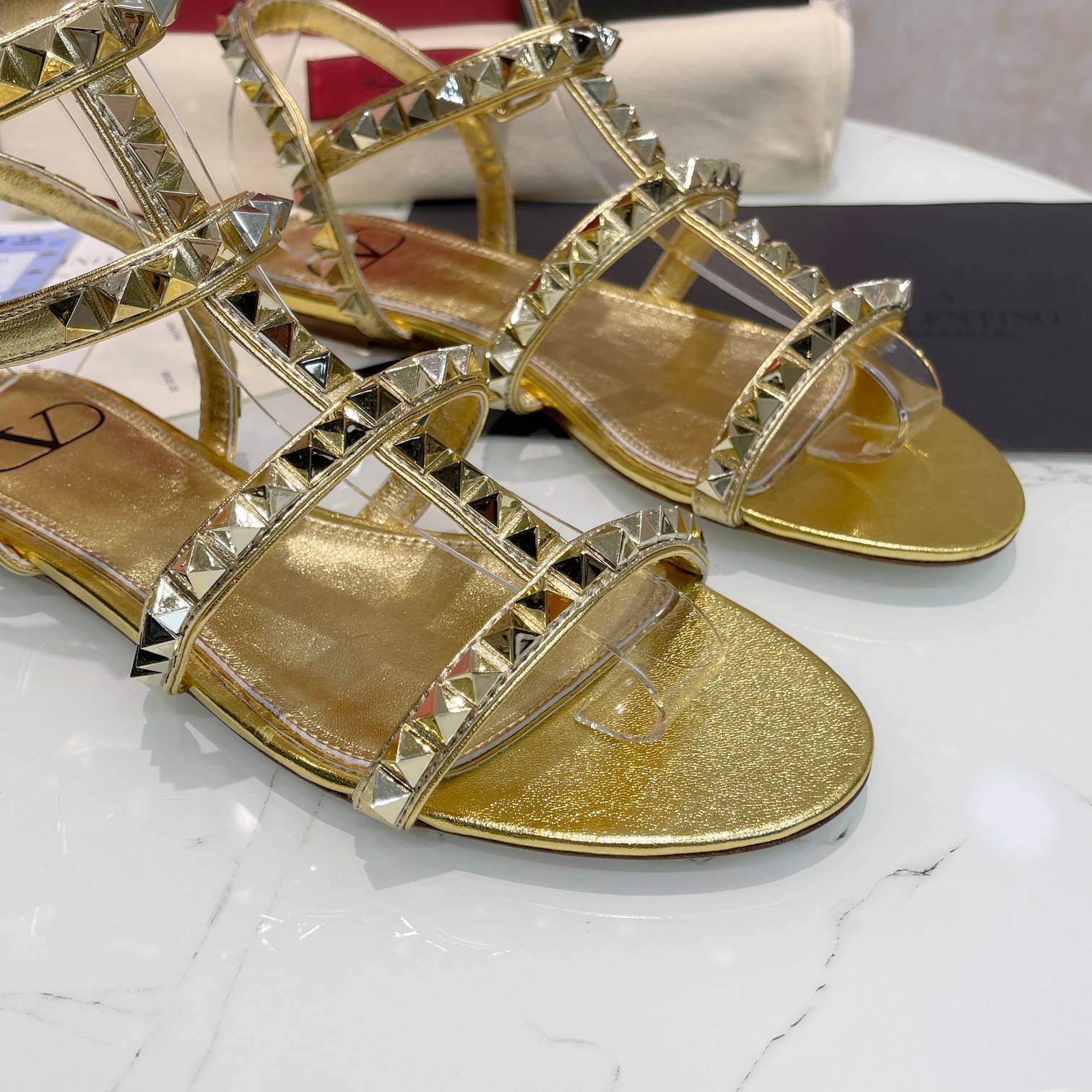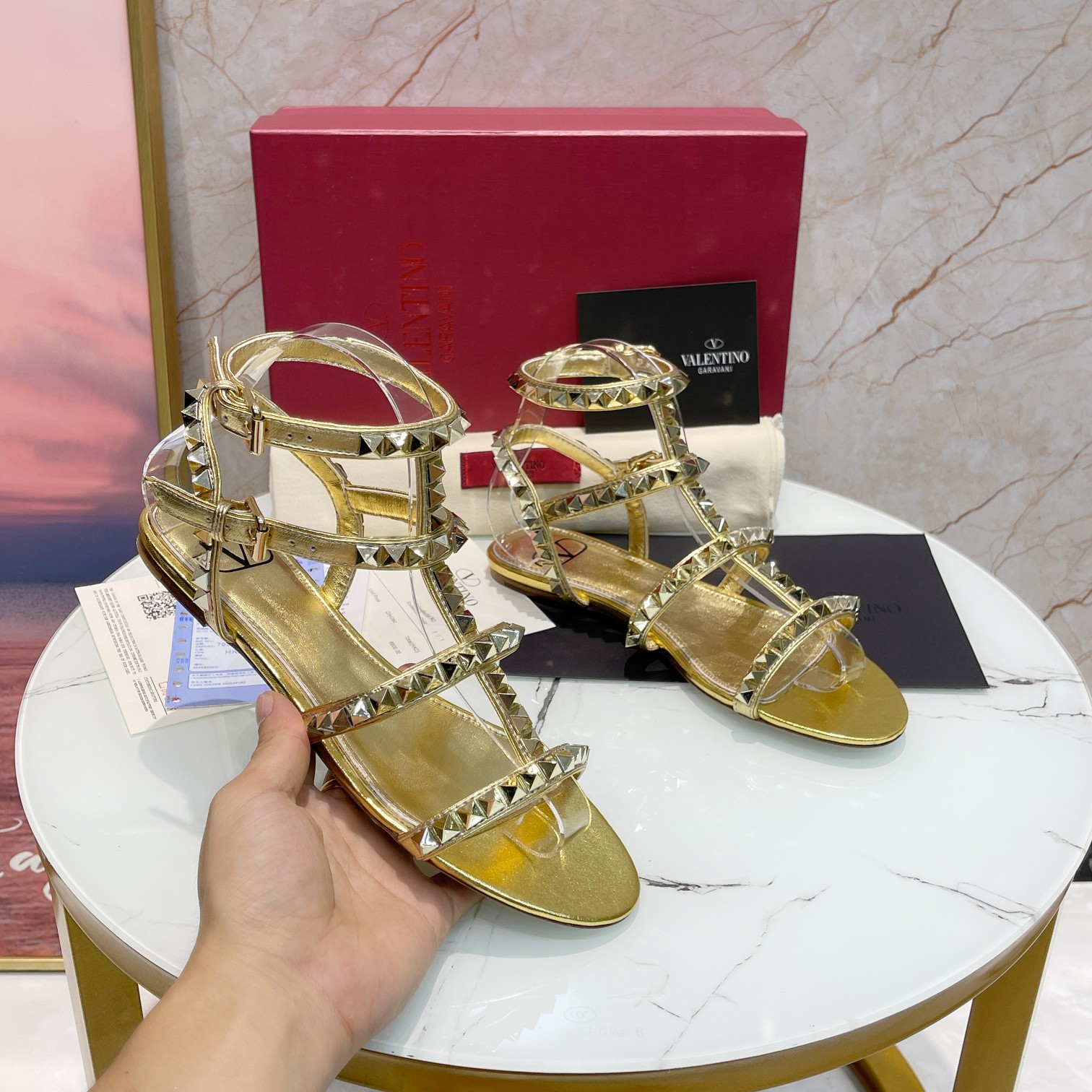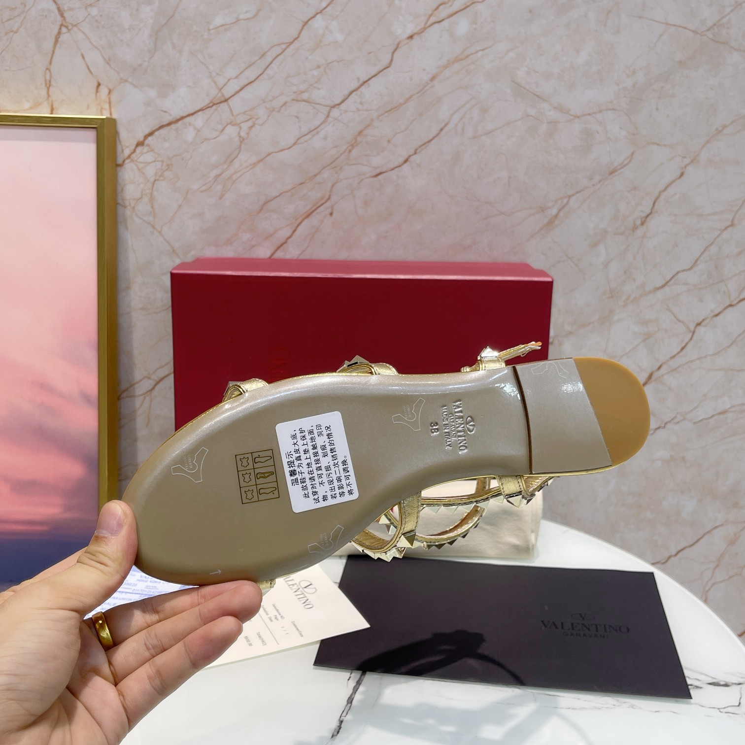 这款鞋子是AAAAA 1:1 质量 (非常棒). 使用了和原版一模一样的材料. 商标部分也保持了和华伦天奴/Valentino一样. 图片拍摄是实物鞋子拍摄, 您所收到的实物保证和我们图片一模一样.