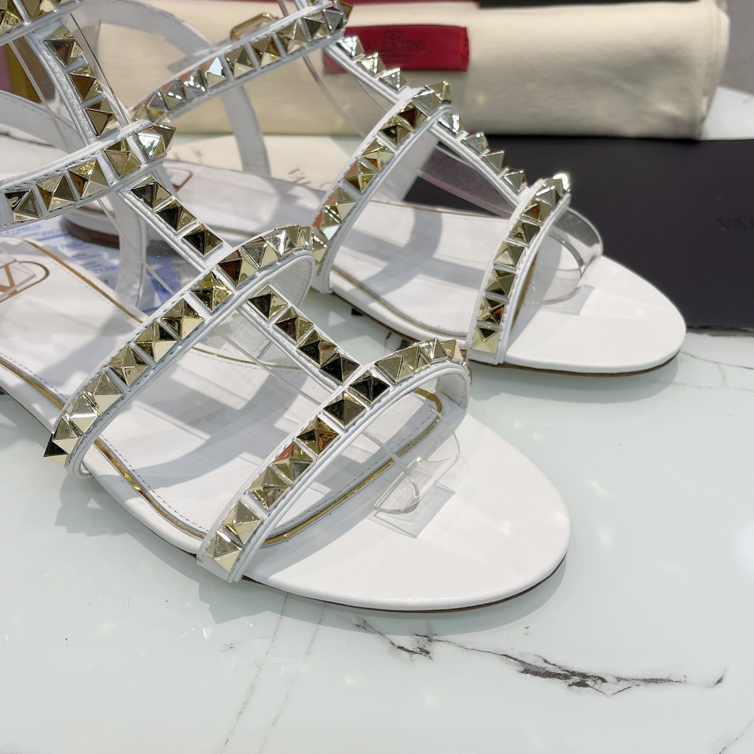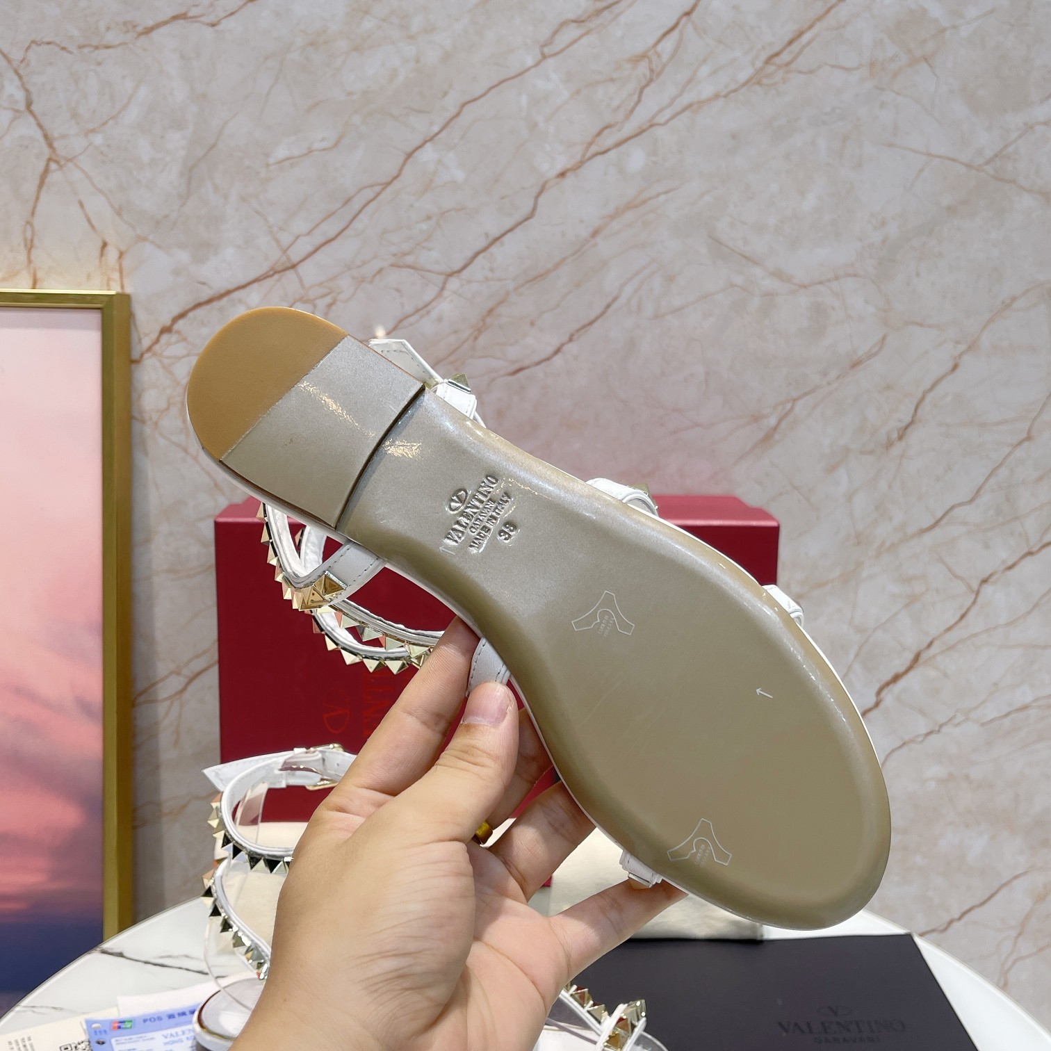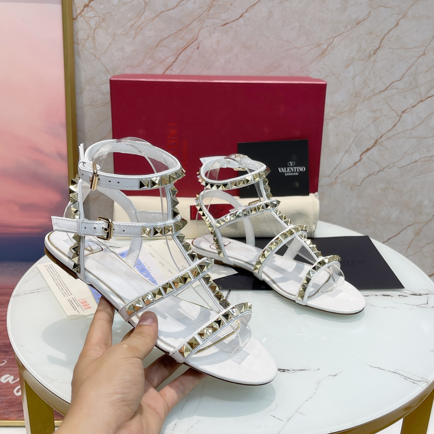 这款鞋子是AAAAA 1:1 质量 (非常棒). 使用了和原版一模一样的材料. 商标部分也保持了和华伦天奴/Valentino一样. 图片拍摄是实物鞋子拍摄, 您所收到的实物保证和我们图片一模一样.