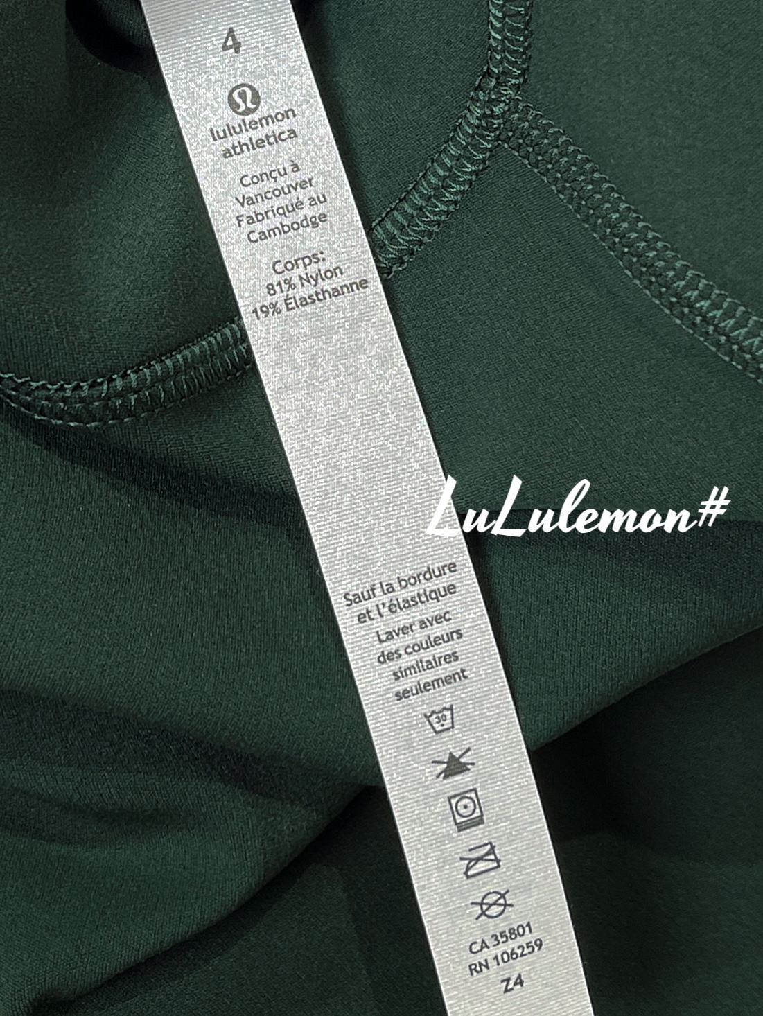 这款衣服是AAAAA 1:1 质量 (非常棒). 使用了和原版一模一样的材料. 商标部分也保持了和Lululemon一样. 图片拍摄是实物衣服拍摄, 您所收到的实物保证和我们图片一模一样.