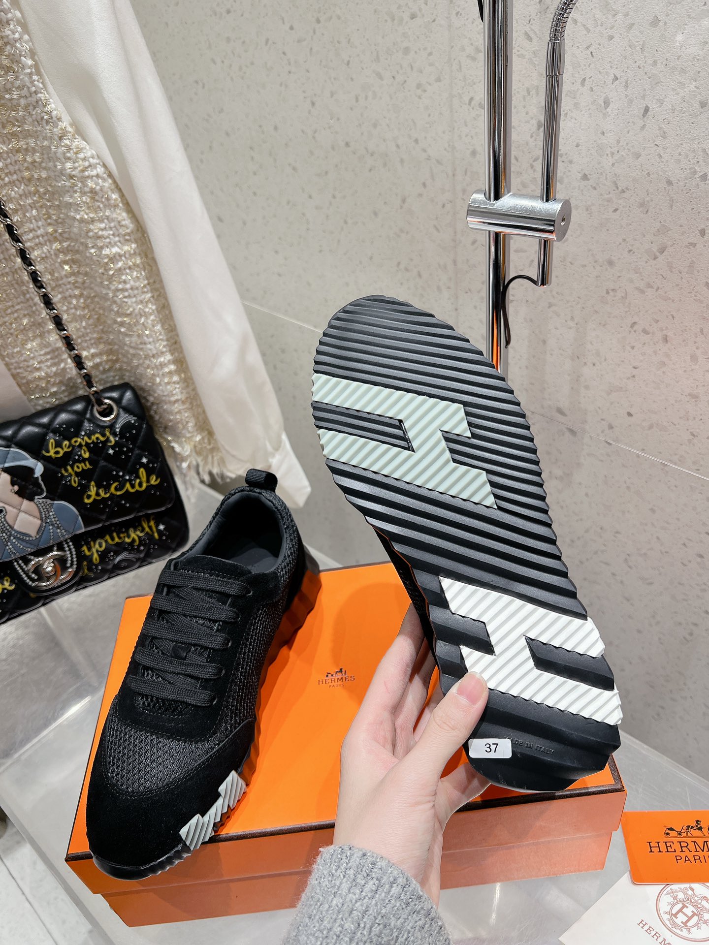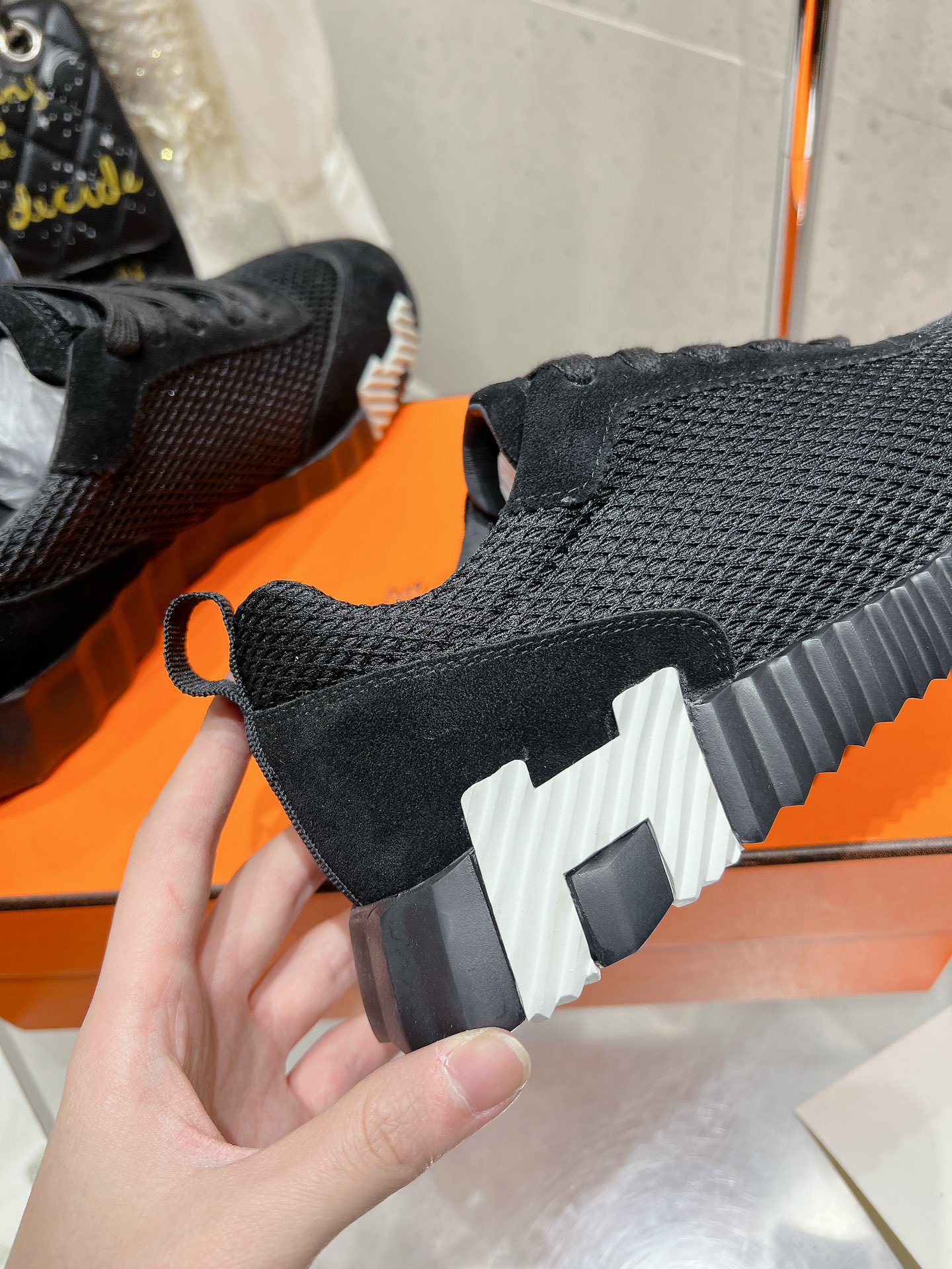 这款鞋子是AAAAA 1:1 质量 (非常棒). 使用了和原版一模一样的材料. 商标部分也保持了和爱马仕/Hermes一样. 图片拍摄是实物鞋子拍摄, 您所收到的实物保证和我们图片一模一样.