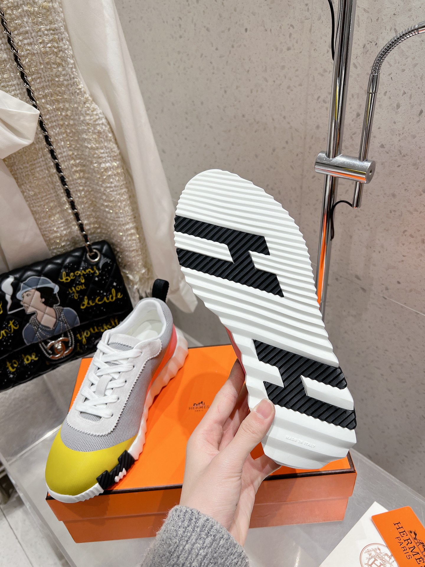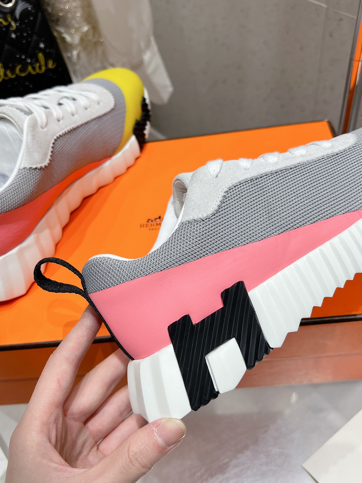 这款鞋子是AAAAA 1:1 质量 (非常棒). 使用了和原版一模一样的材料. 商标部分也保持了和爱马仕/Hermes一样. 图片拍摄是实物鞋子拍摄, 您所收到的实物保证和我们图片一模一样.