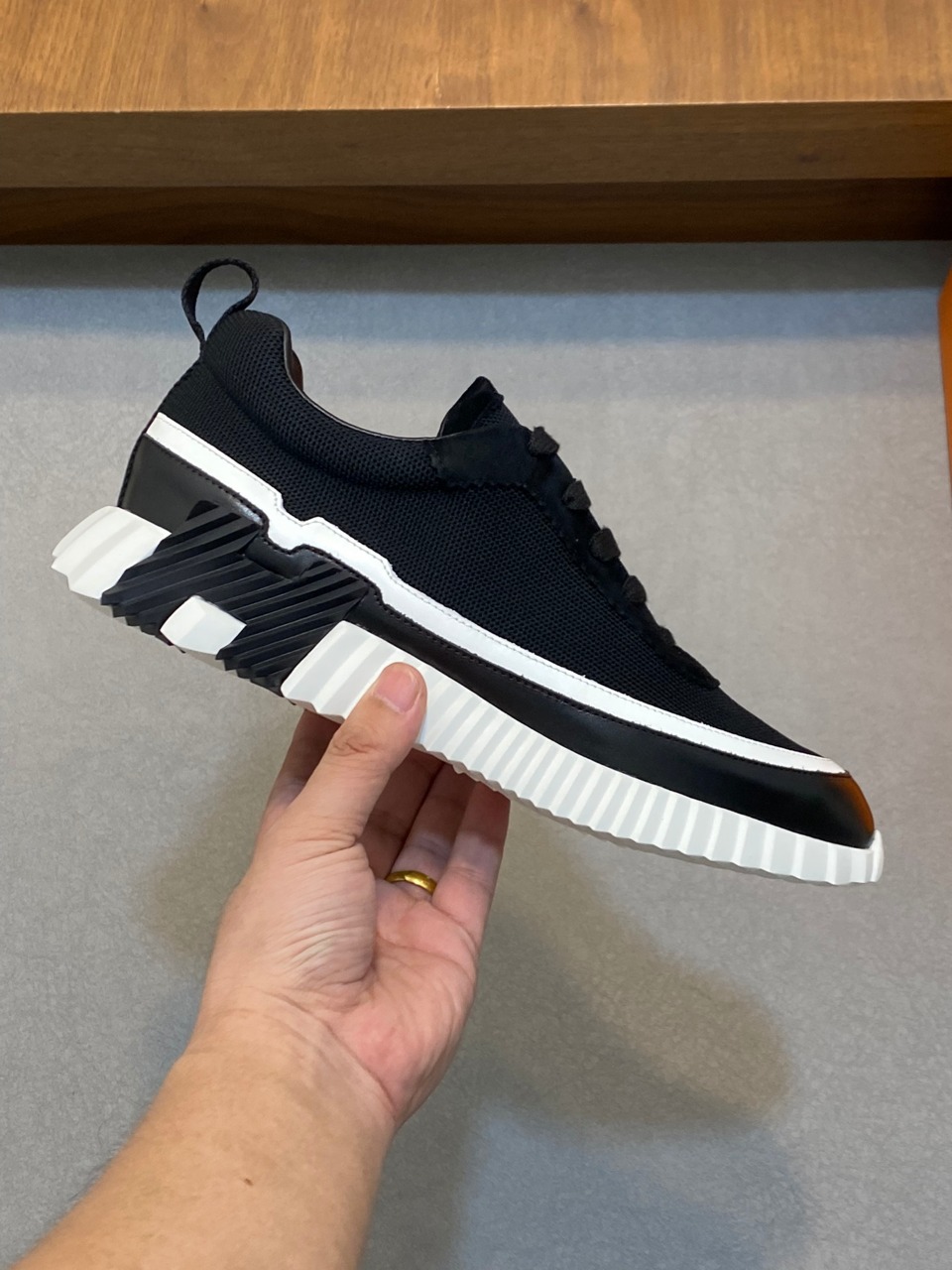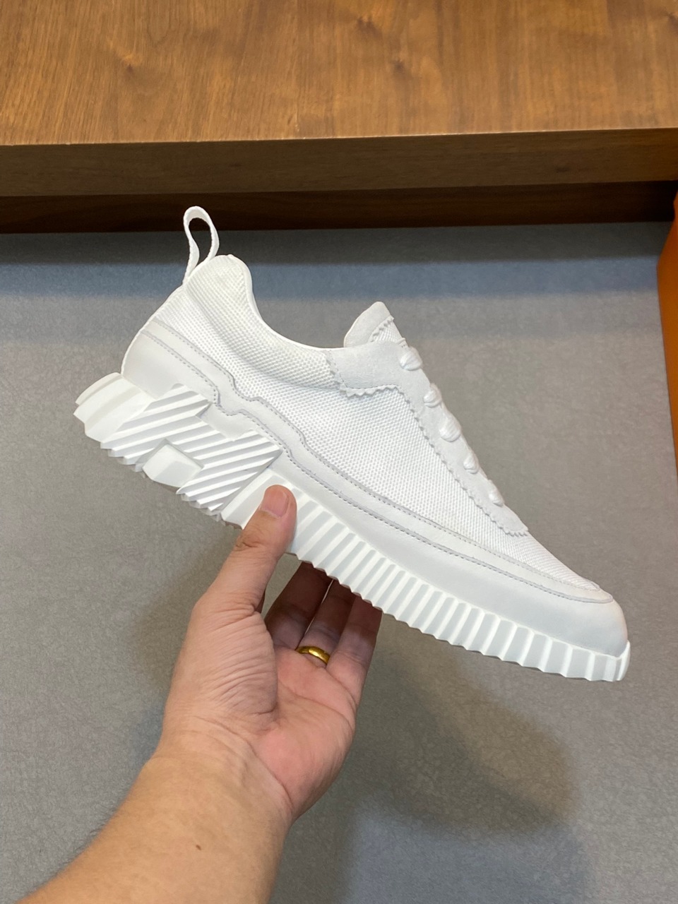 这款鞋子是AAAAA 1:1 质量 (非常棒). 使用了和原版一模一样的材料. 商标部分也保持了和爱马仕/Hermes一样. 图片拍摄是实物鞋子拍摄, 您所收到的实物保证和我们图片一模一样.