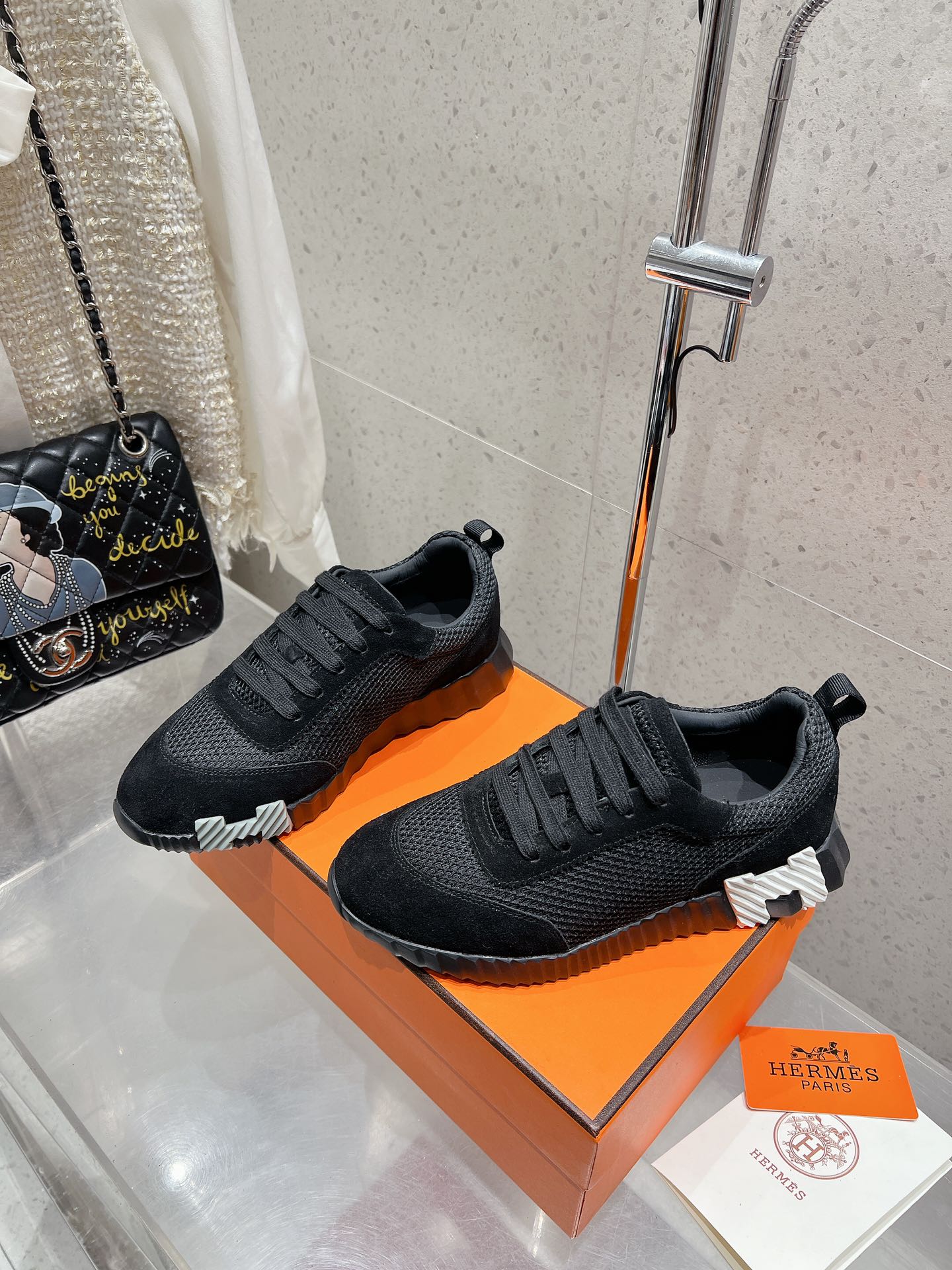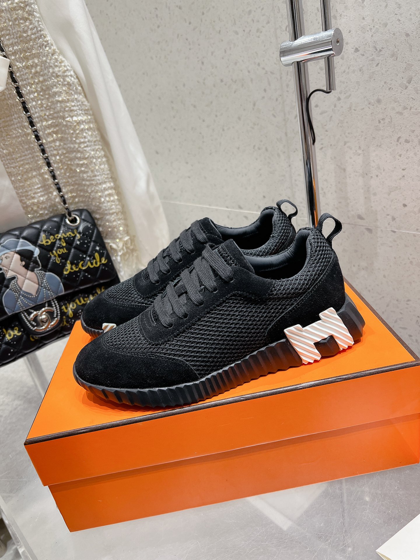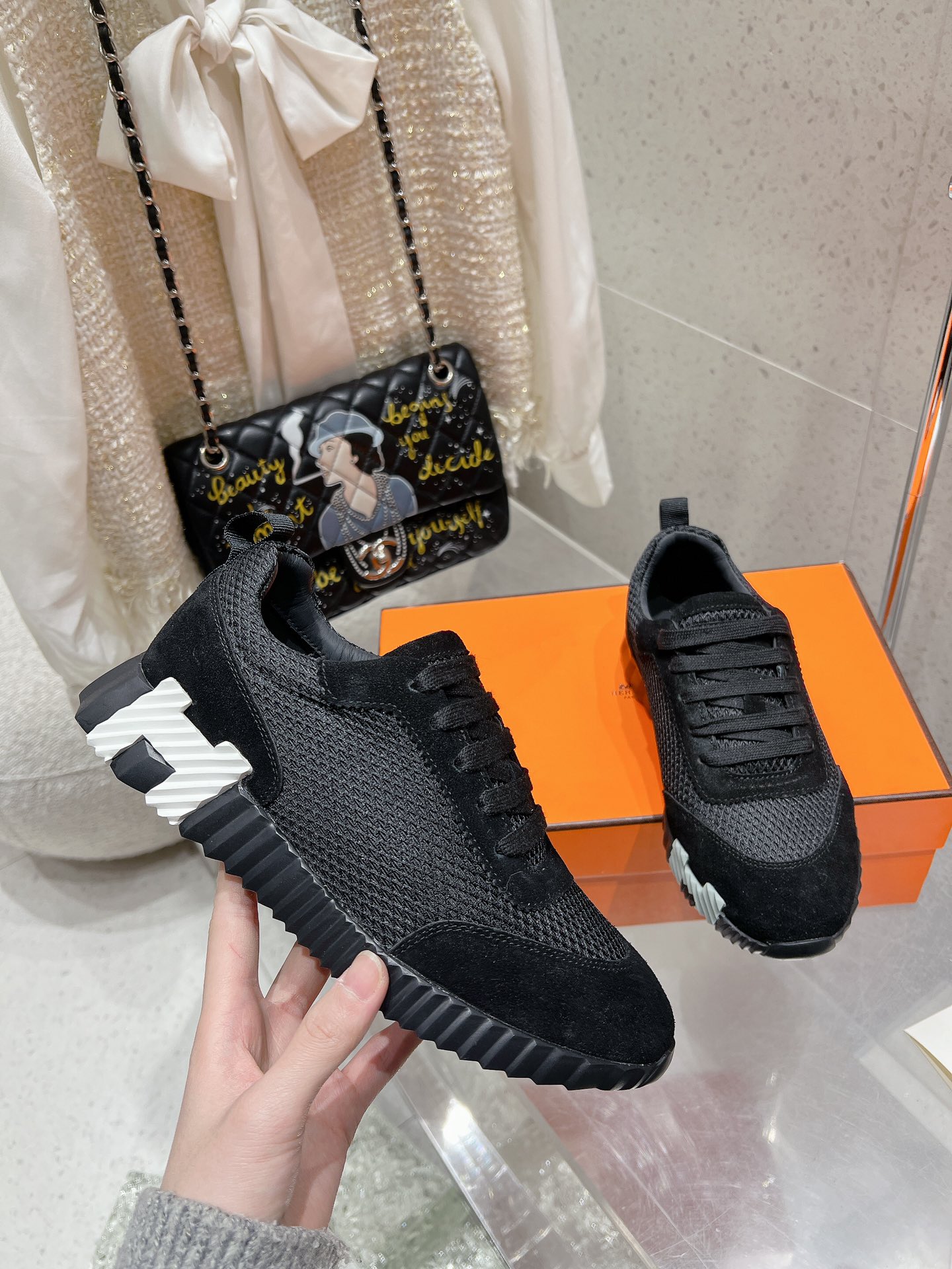 这款鞋子是AAAAA 1:1 质量 (非常棒). 使用了和原版一模一样的材料. 商标部分也保持了和爱马仕/Hermes一样. 图片拍摄是实物鞋子拍摄, 您所收到的实物保证和我们图片一模一样.