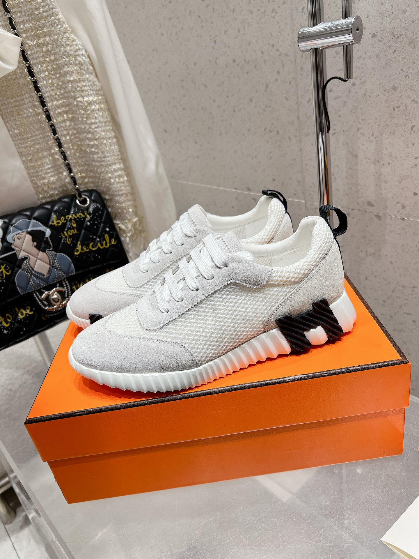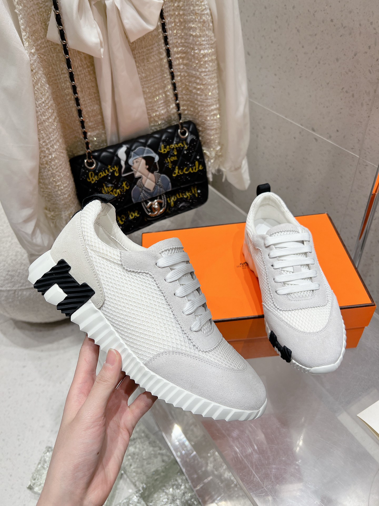 这款鞋子是AAAAA 1:1 质量 (非常棒). 使用了和原版一模一样的材料. 商标部分也保持了和爱马仕/Hermes一样. 图片拍摄是实物鞋子拍摄, 您所收到的实物保证和我们图片一模一样.