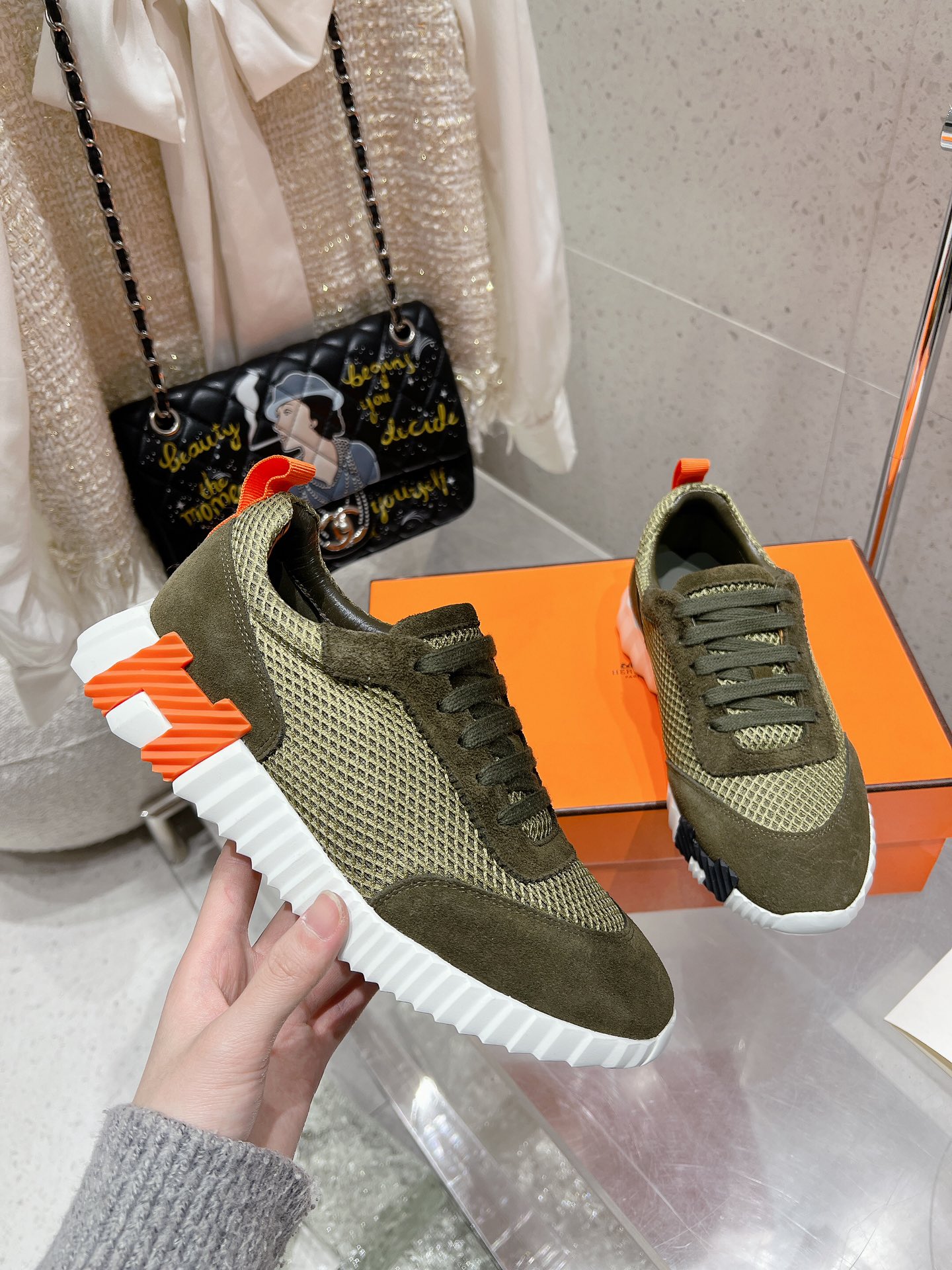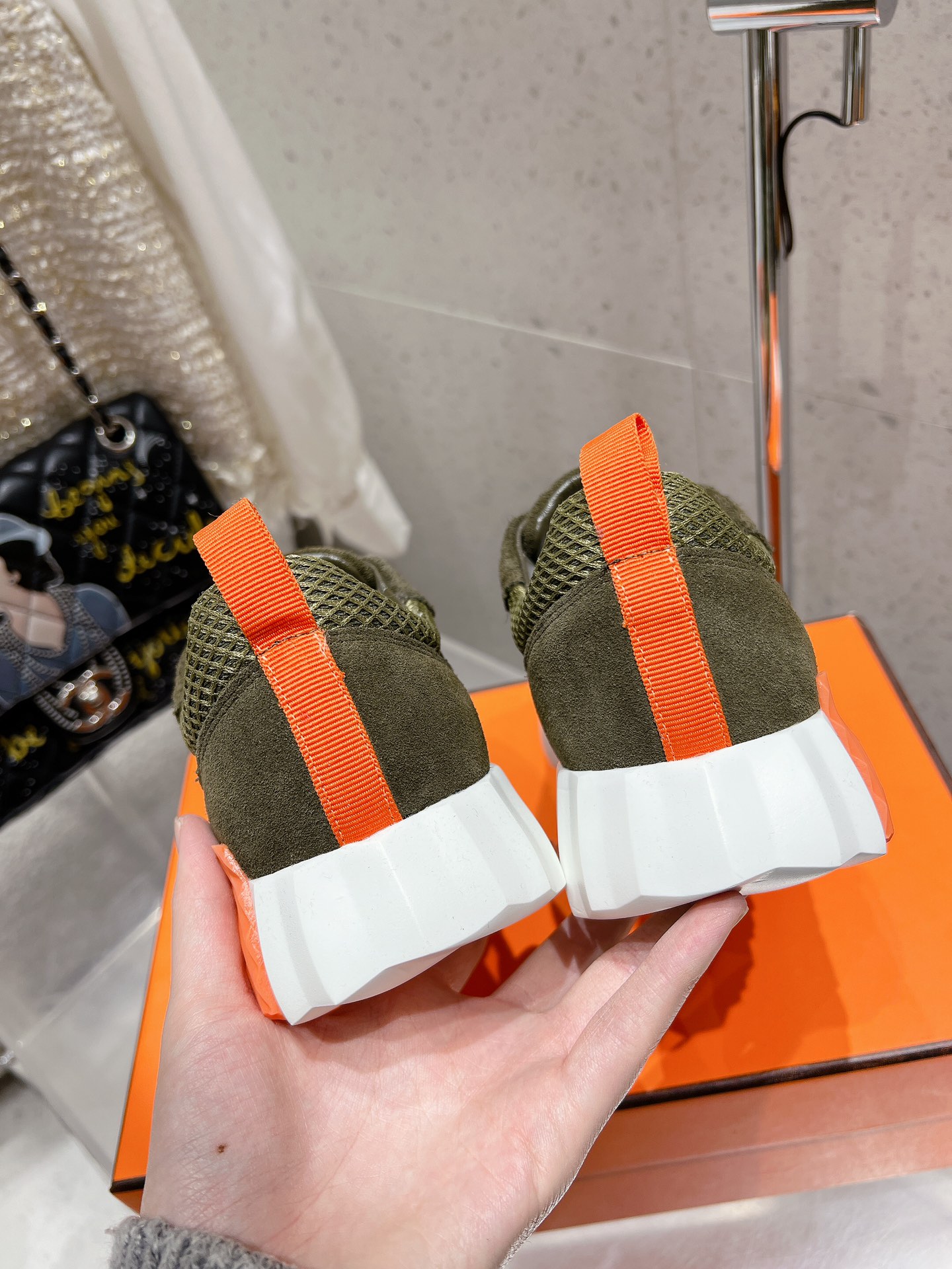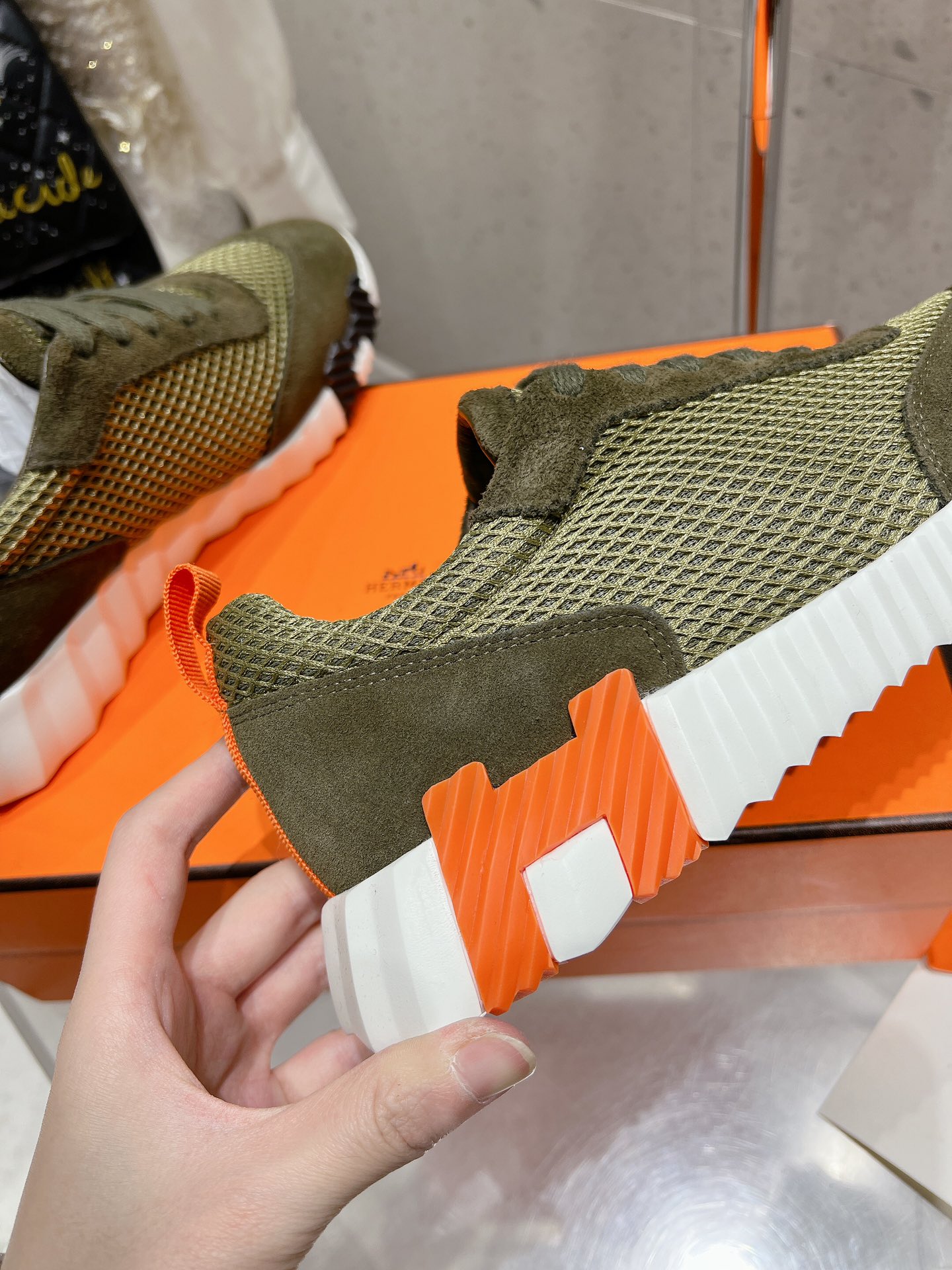 这款鞋子是AAAAA 1:1 质量 (非常棒). 使用了和原版一模一样的材料. 商标部分也保持了和爱马仕/Hermes一样. 图片拍摄是实物鞋子拍摄, 您所收到的实物保证和我们图片一模一样.