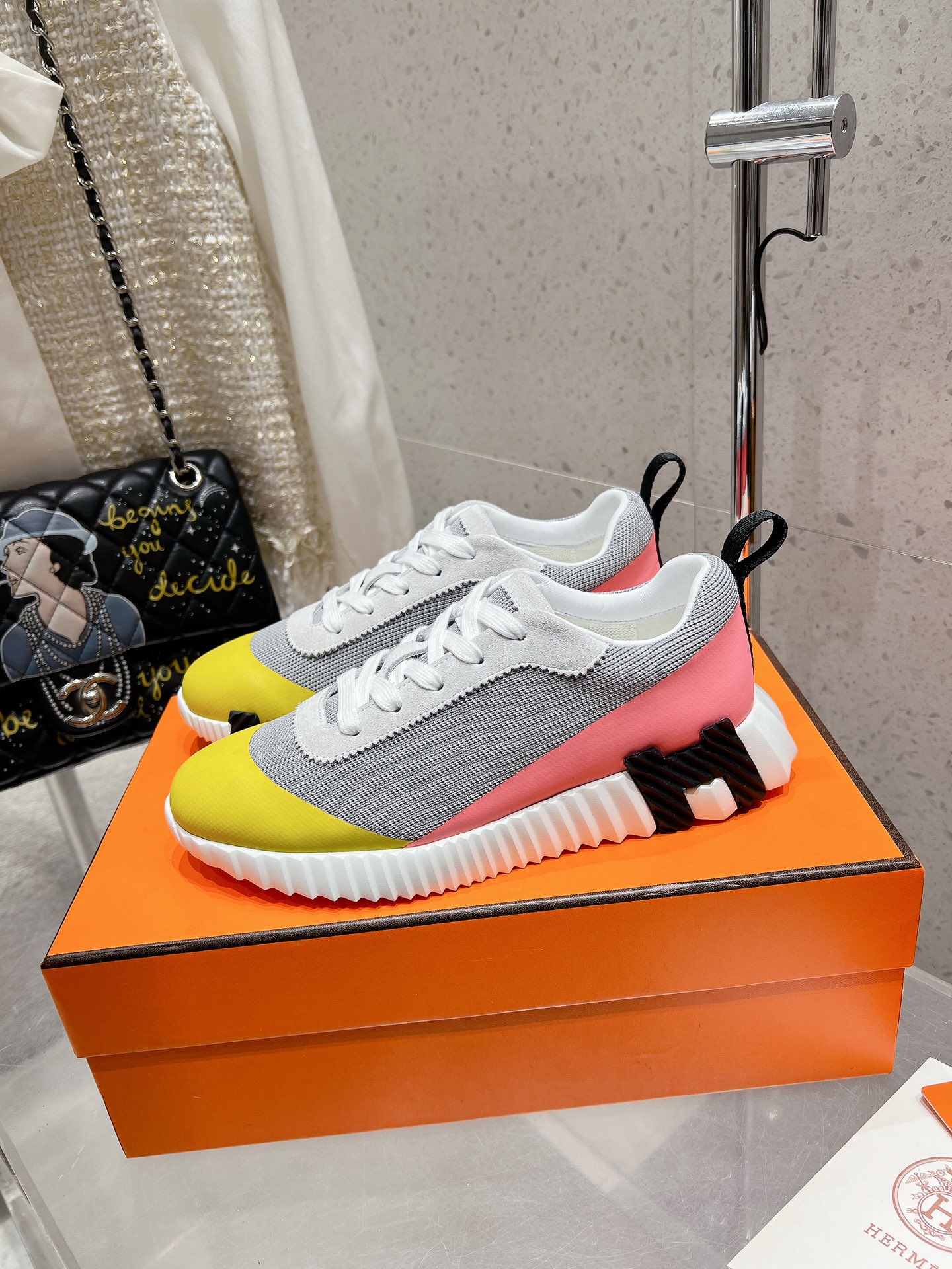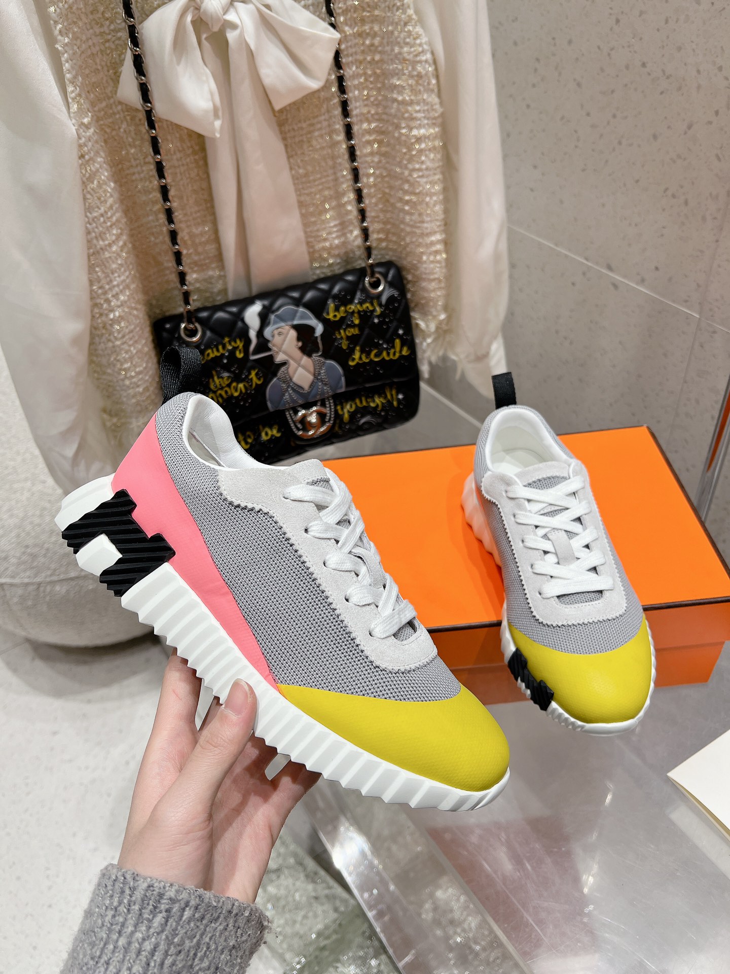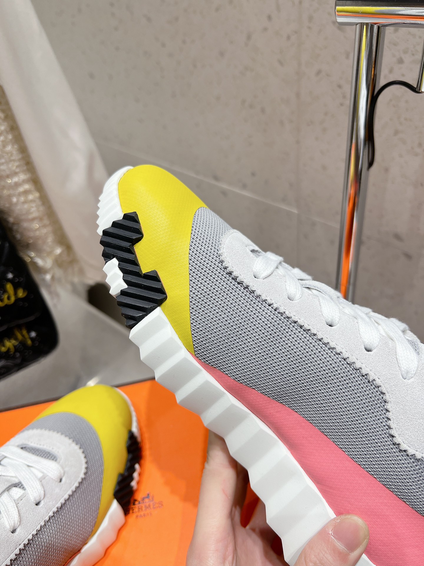 这款鞋子是AAAAA 1:1 质量 (非常棒). 使用了和原版一模一样的材料. 商标部分也保持了和爱马仕/Hermes一样. 图片拍摄是实物鞋子拍摄, 您所收到的实物保证和我们图片一模一样.