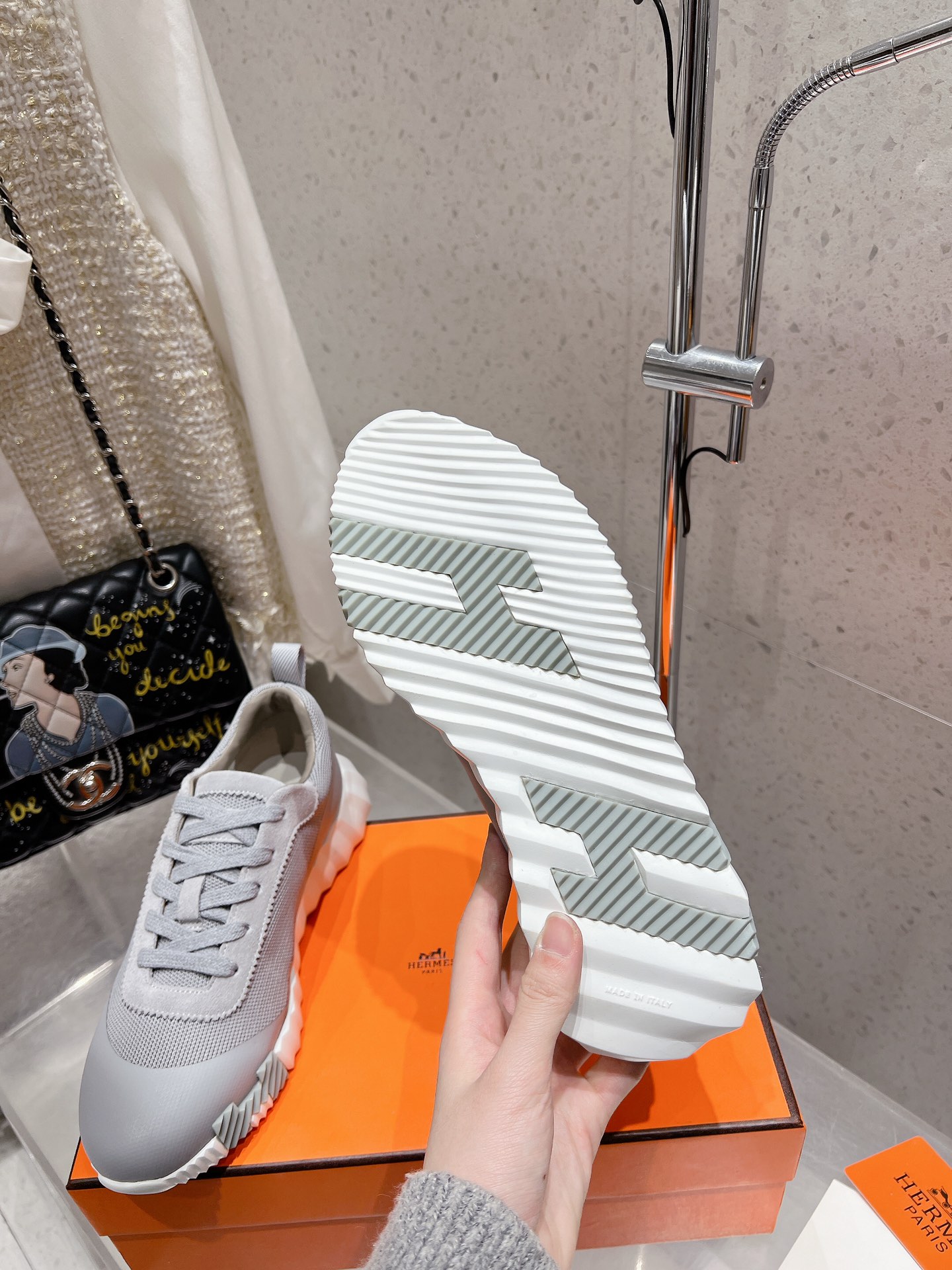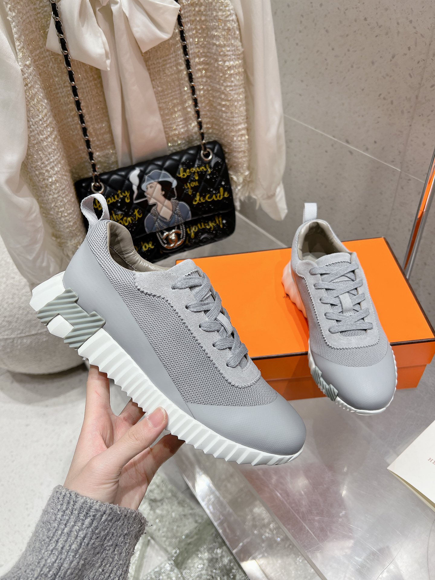 这款鞋子是AAAAA 1:1 质量 (非常棒). 使用了和原版一模一样的材料. 商标部分也保持了和爱马仕/Hermes一样. 图片拍摄是实物鞋子拍摄, 您所收到的实物保证和我们图片一模一样.