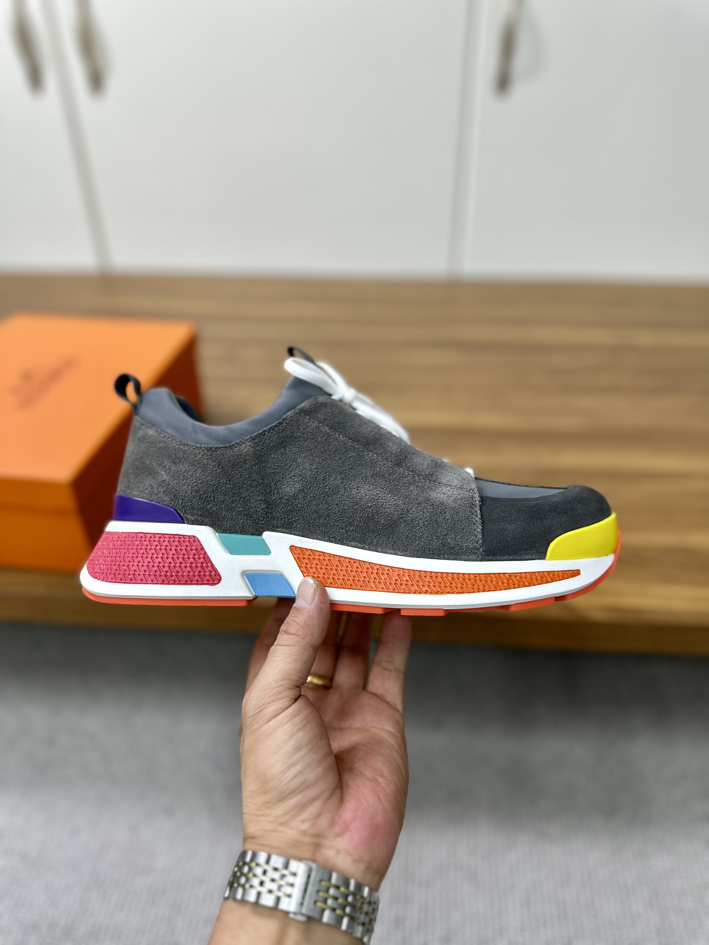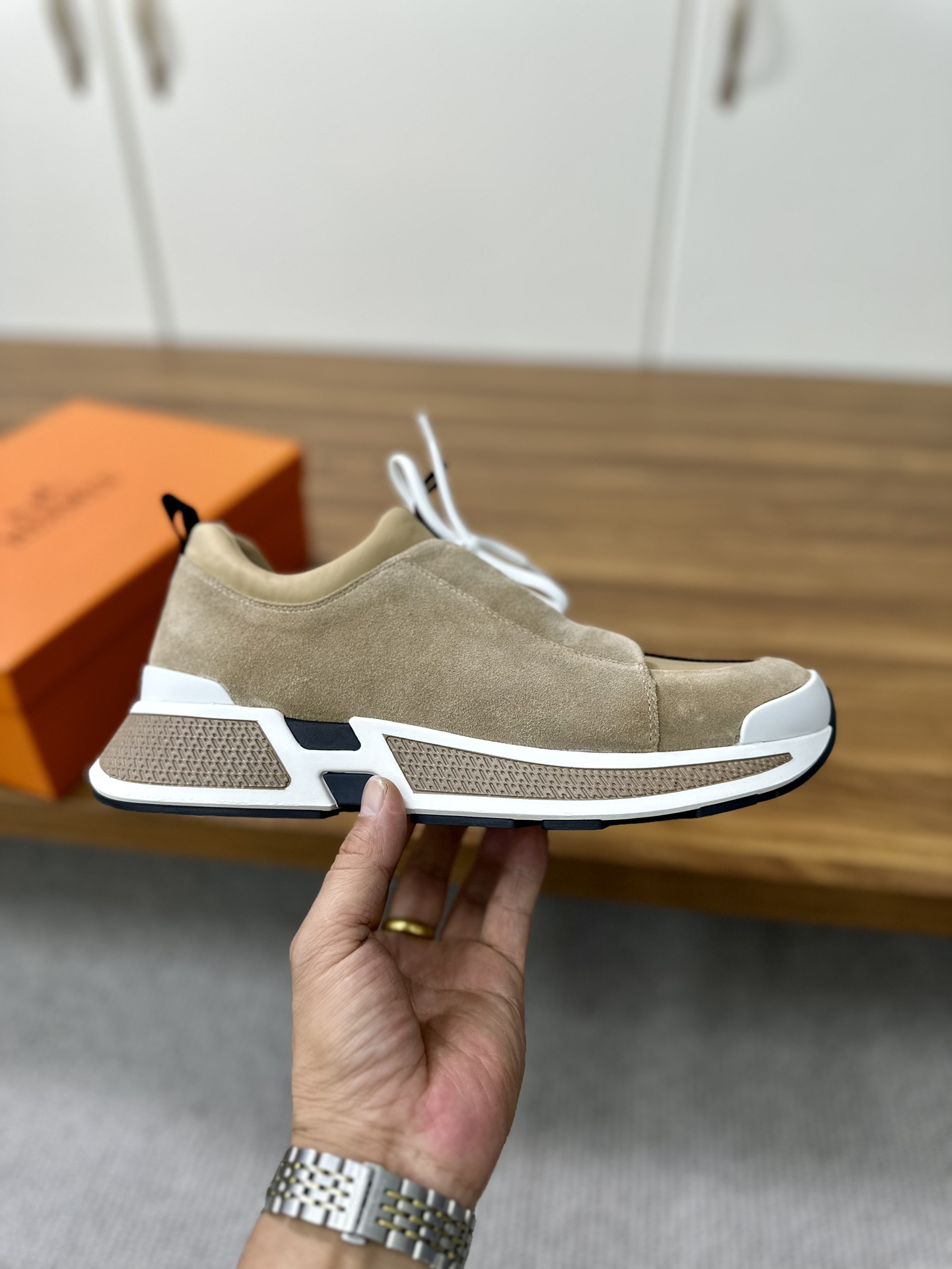 这款鞋子是AAAAA 1:1 质量 (非常棒). 使用了和原版一模一样的材料. 商标部分也保持了和爱马仕/Hermes一样. 图片拍摄是实物鞋子拍摄, 您所收到的实物保证和我们图片一模一样.